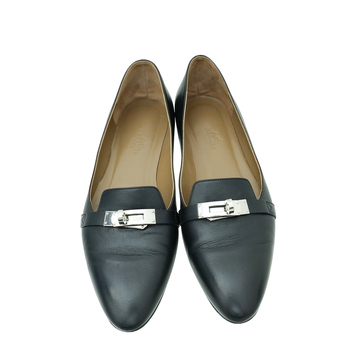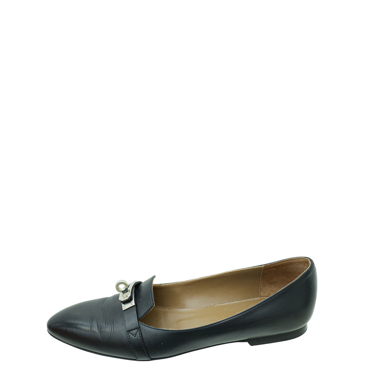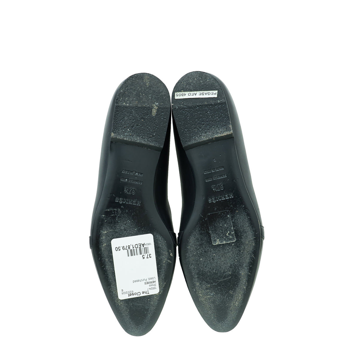 Hermes Noir Pegase Kelly Flat Ballerina 37.5