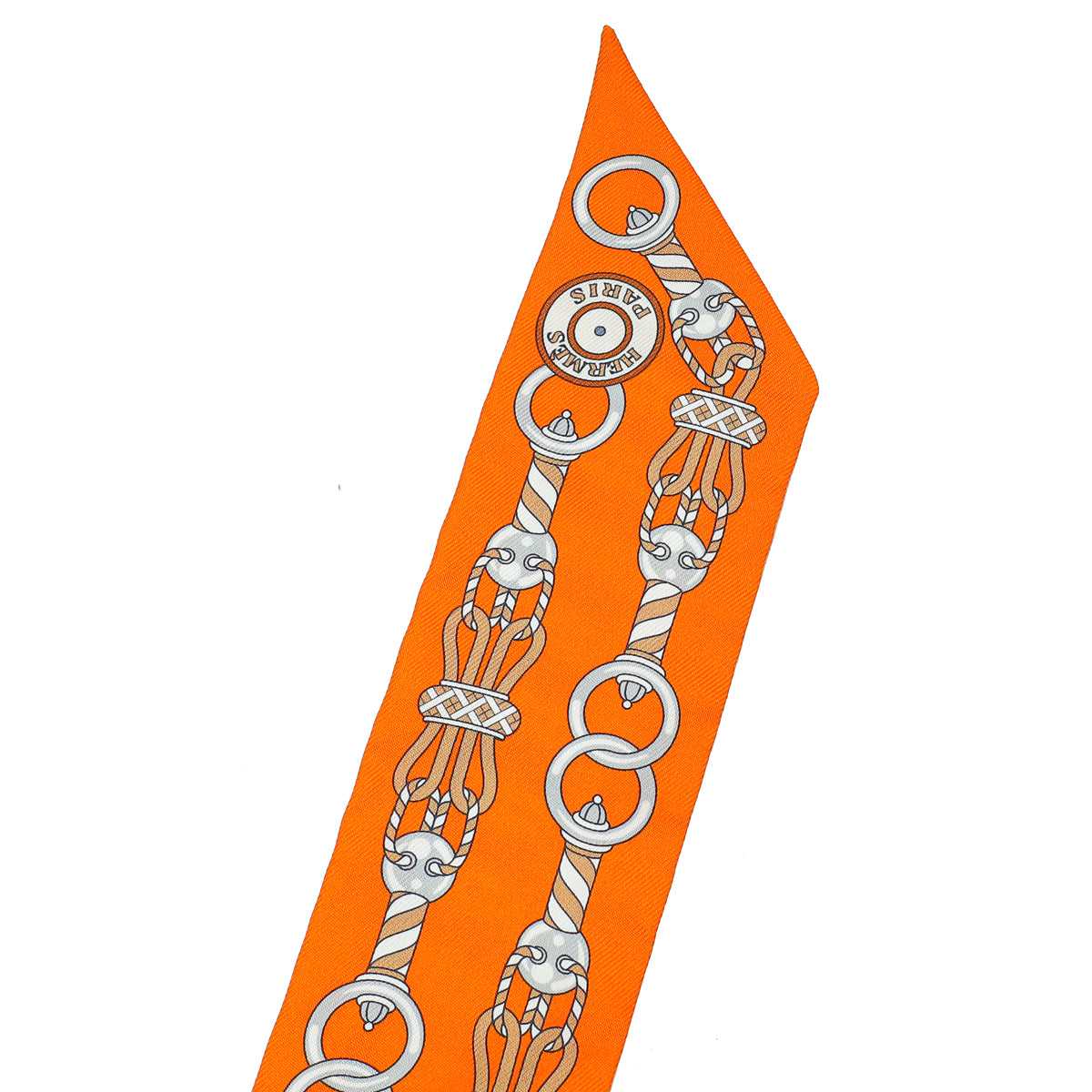 Hermes Orange Multicolor Harnais en Rosace Silk Twilly-Hermes-THE CLOSET