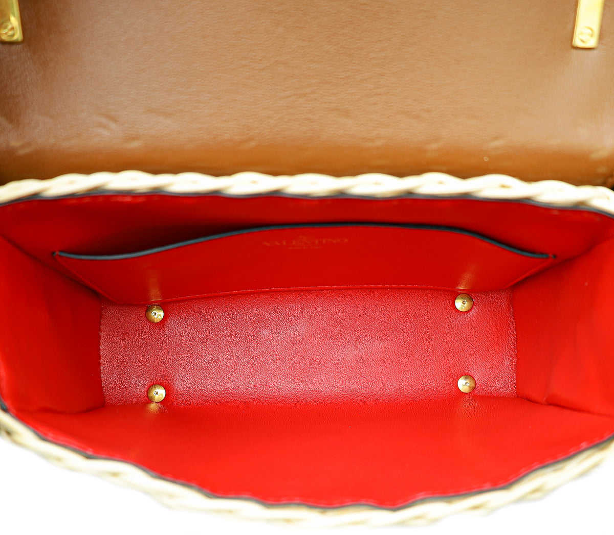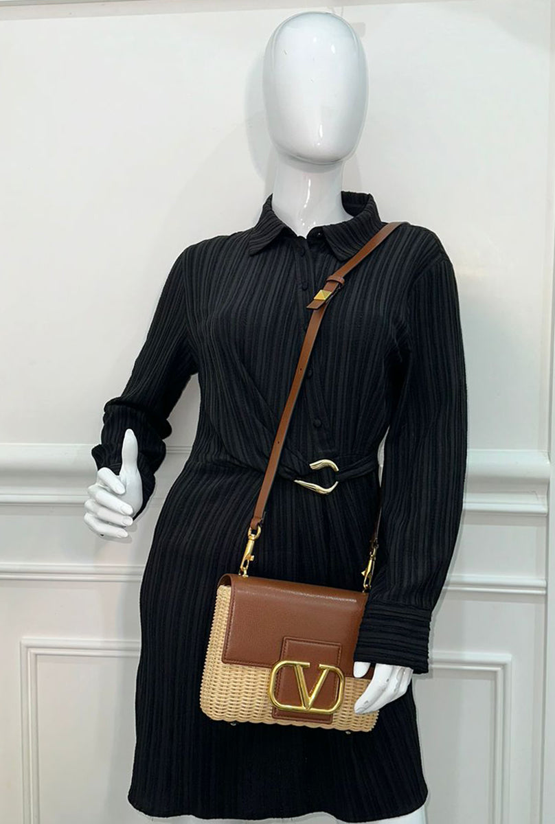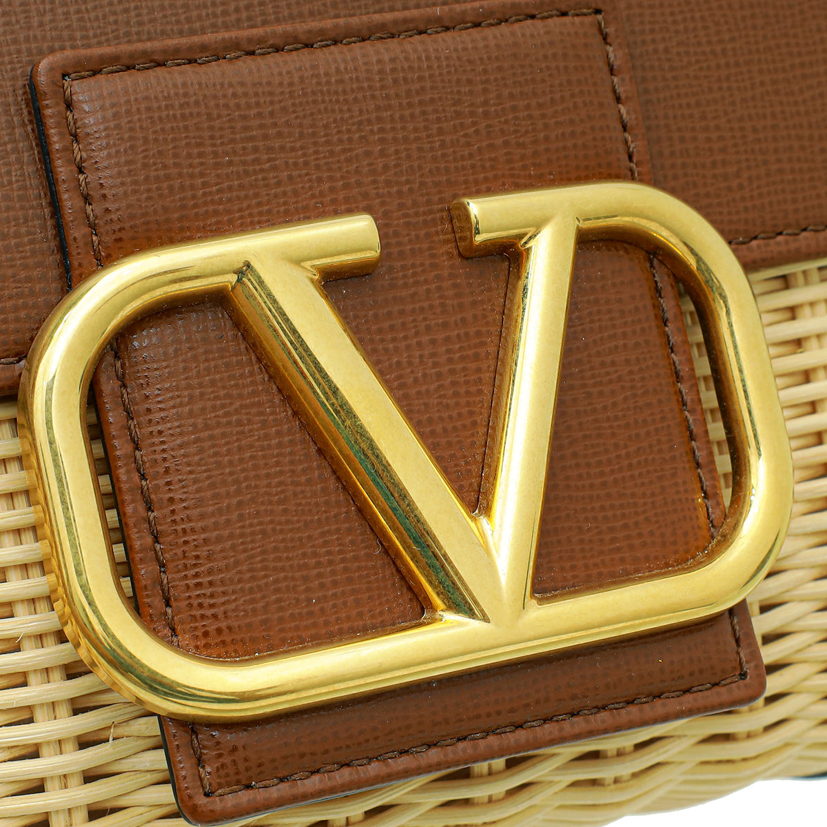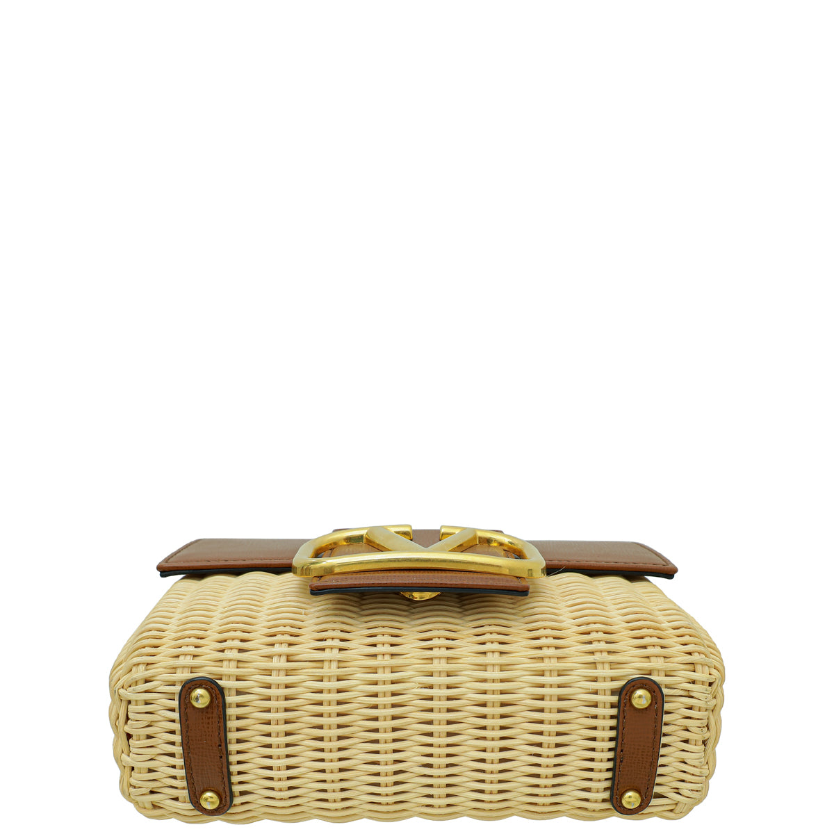 Valentino Bicolor Vlogo Embellished Trimmed Raffia Bag