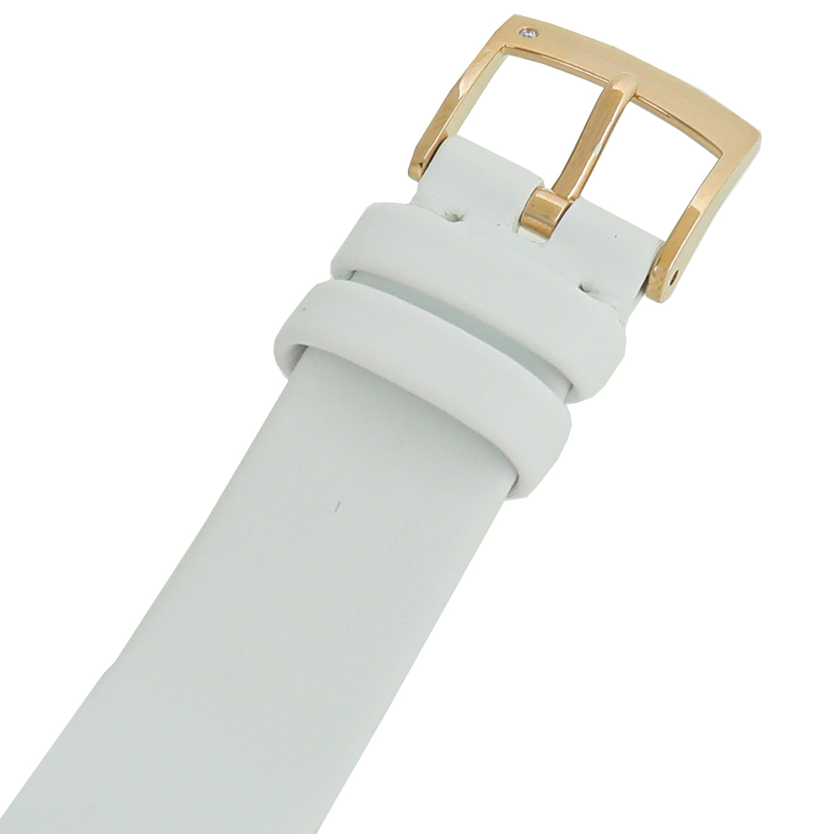 Material: 18K Rose Gold and 62 Diamonds (2.8 Carats) with White Dial and White Satin Strap with Buckle set with 1 Diamond (0.01 Carats)