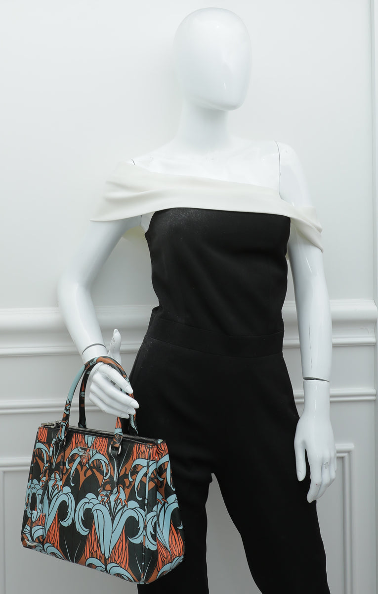 Prada Forest Green Multicolor Lily Printed Galleria Medium Bag