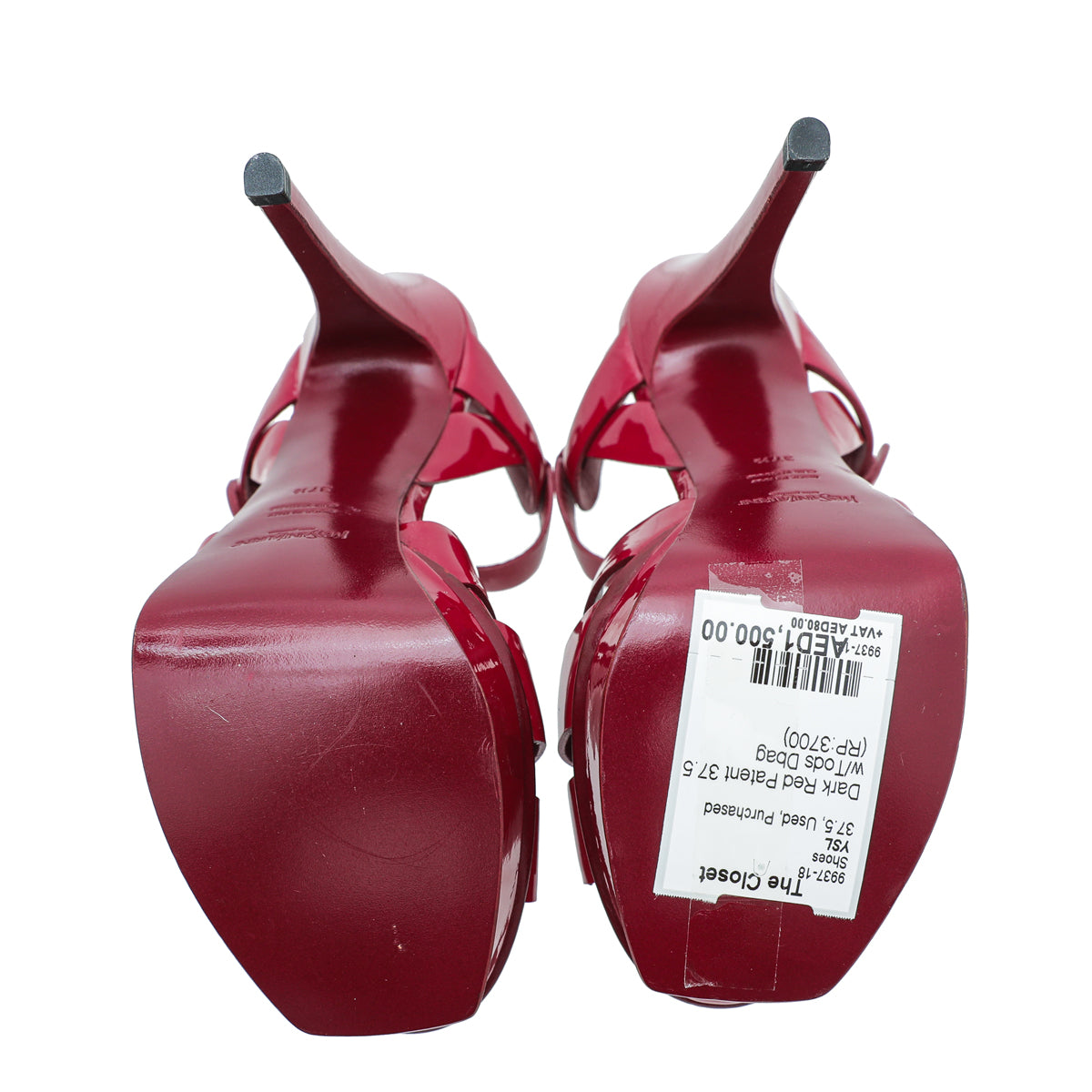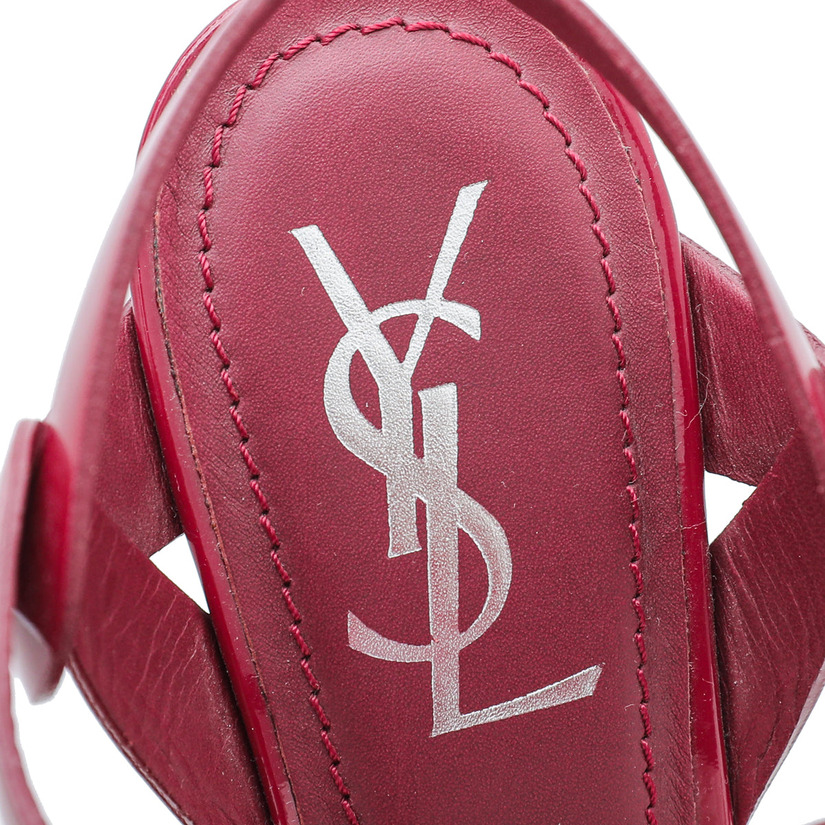 YSL Dark Red Tribute High Heel Sandals 37.5