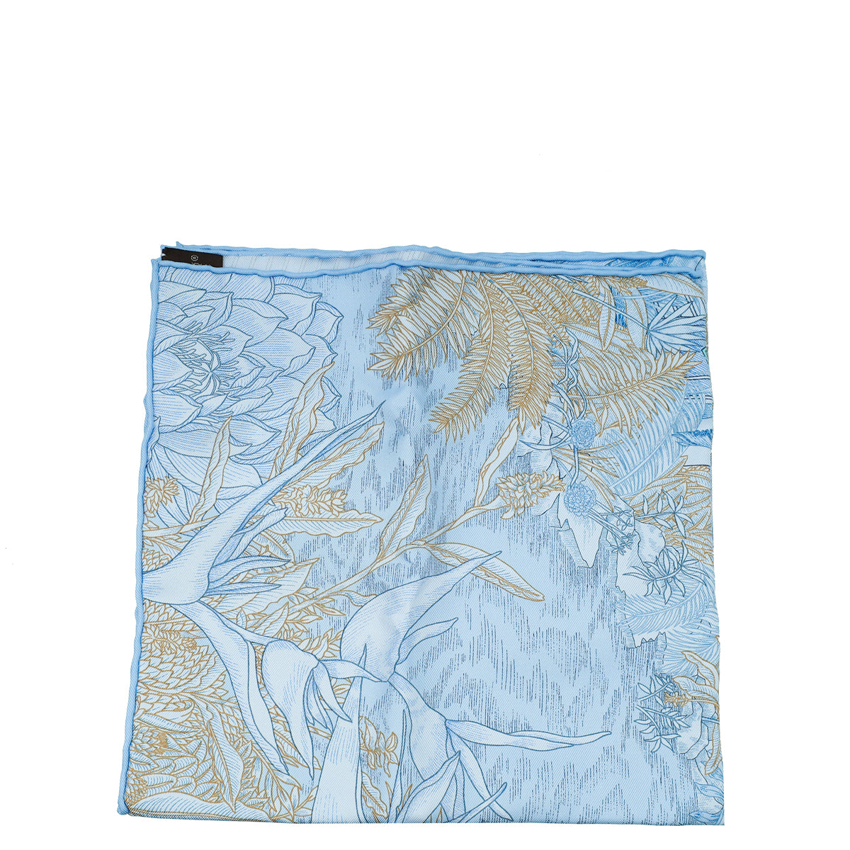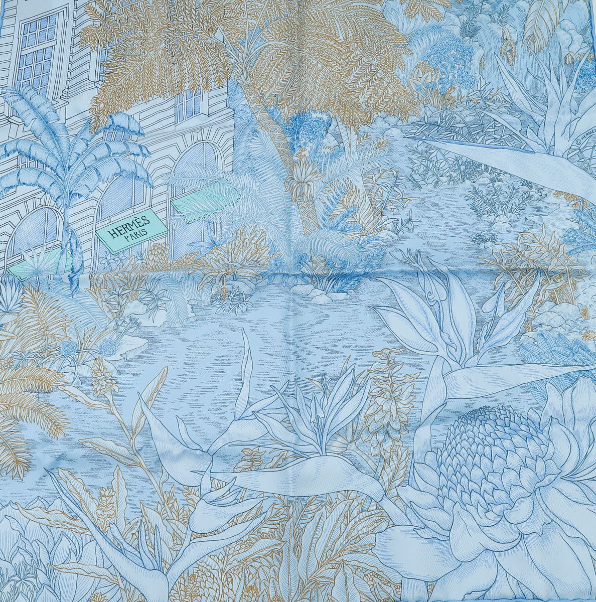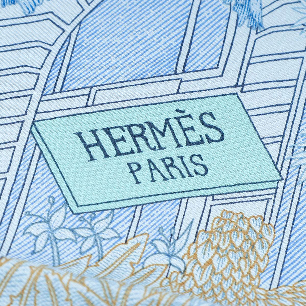 Hermes Bleu Azure Carré Faubourg Tropical Silk Twill Scarf