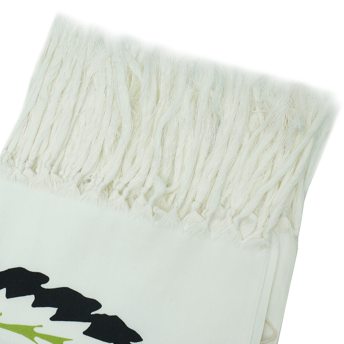 Valentino White Multicolor Fringed Floral Print Cotton-Twill Stole Scarf