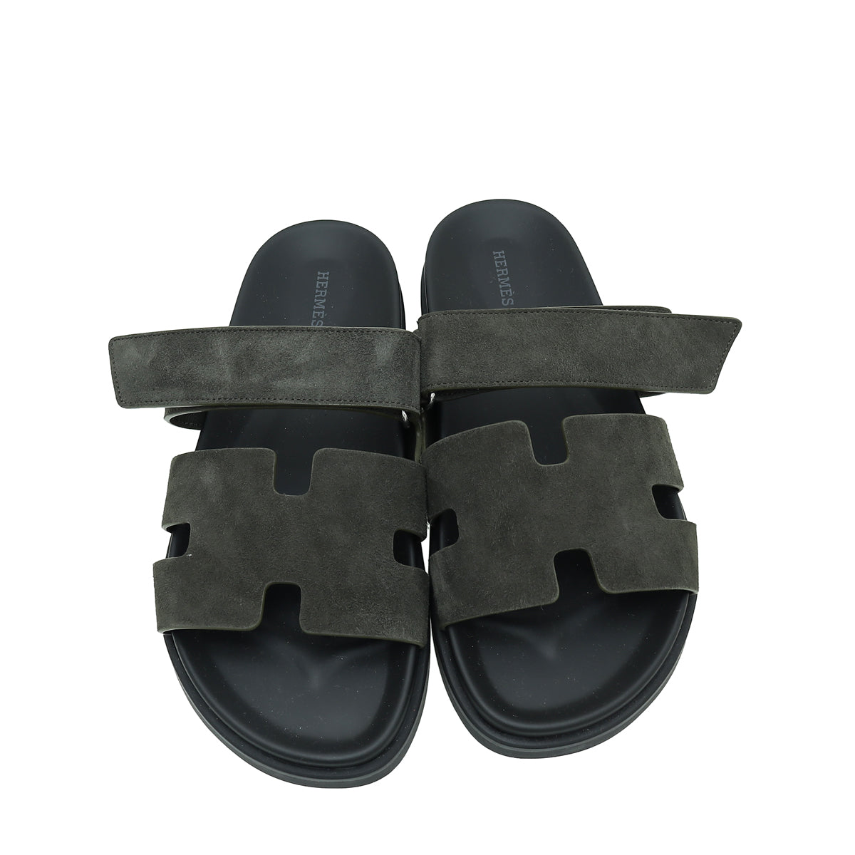 Hermes Vert Foret Suede Goatskin Chypre Sandal 42