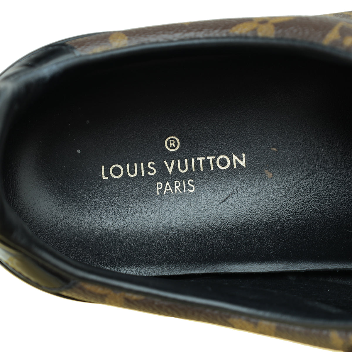 - Material: Brown Monogram Canvas and Black Patent Leather