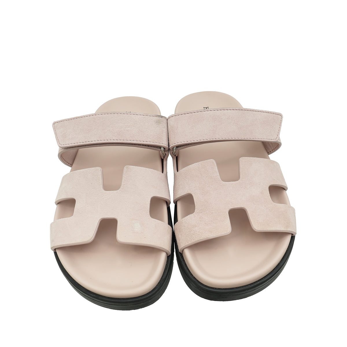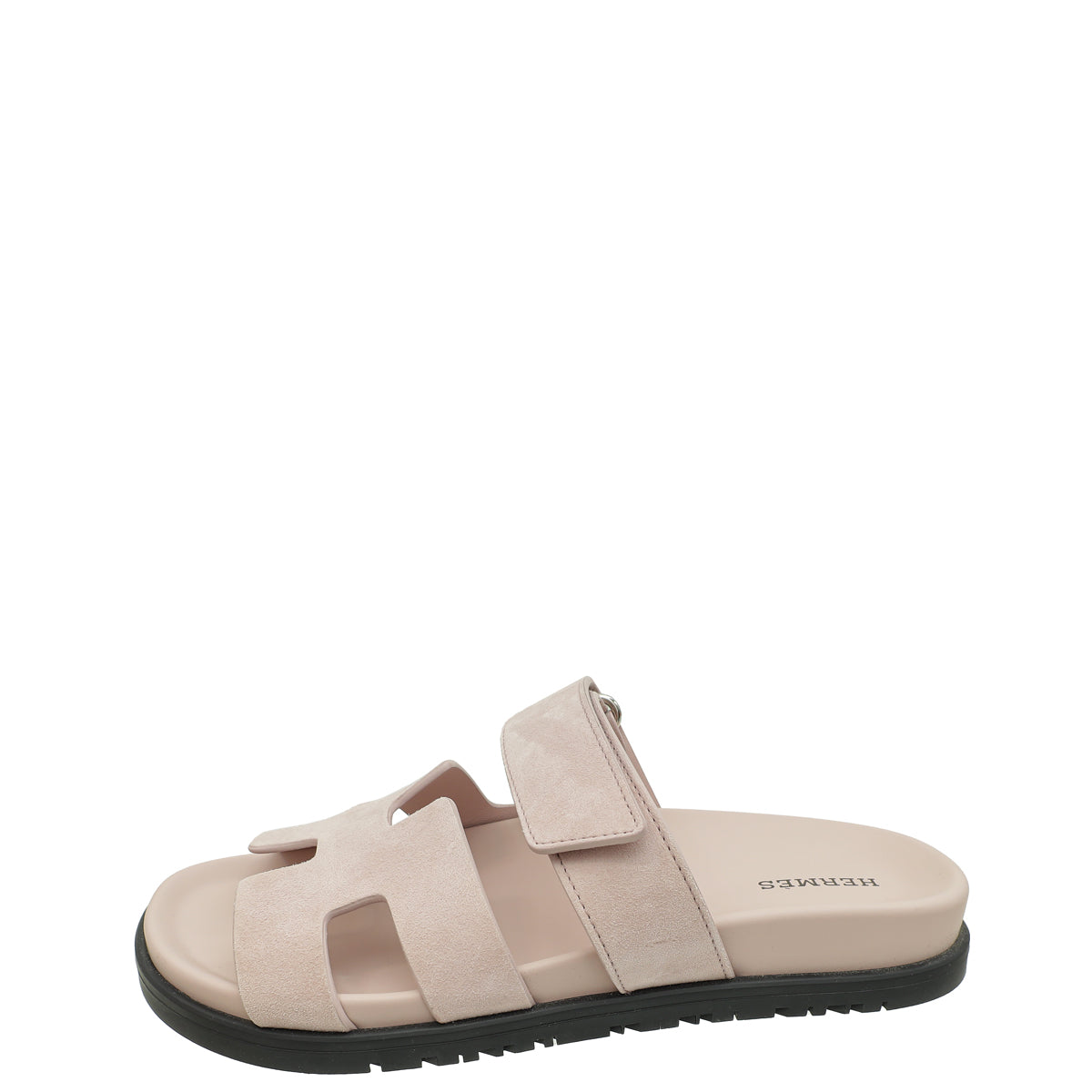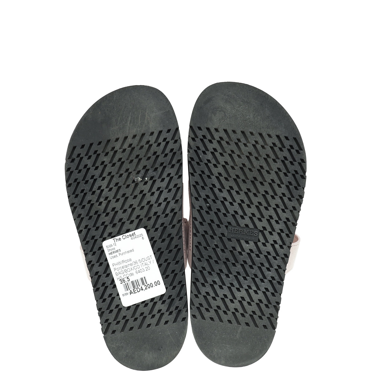 Hermes Rose Porcelaine Chypre Suede Goatskin Sandal 36.5