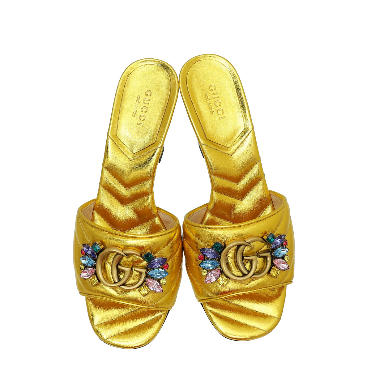 Gucci Gold GG Crystal Marmont Slide Mules Sandal 36