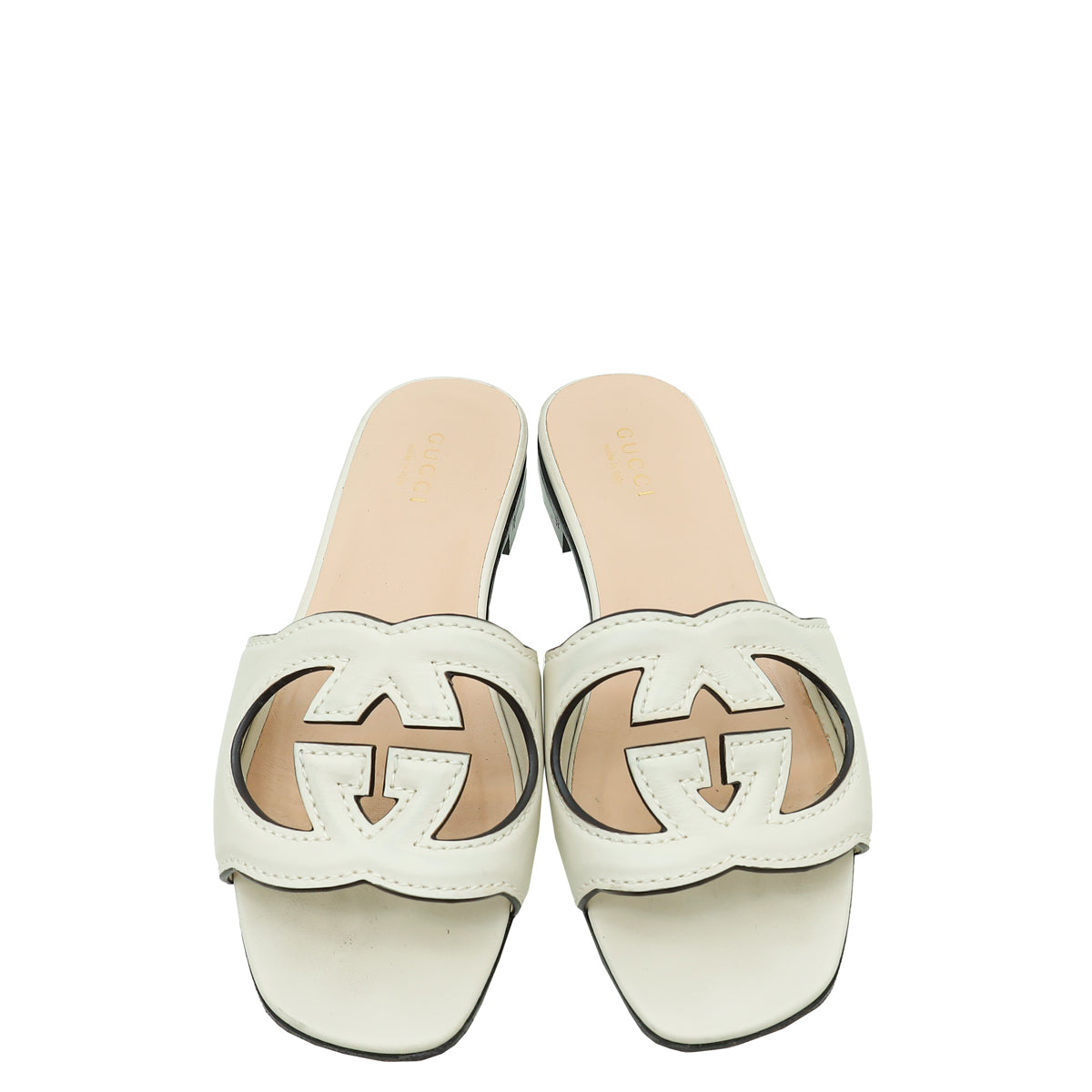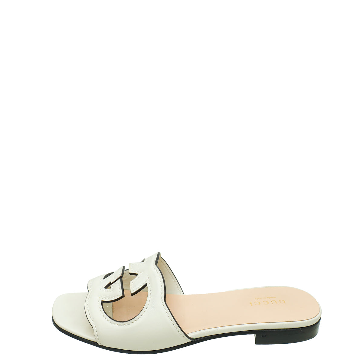 Gucci Off White Interlocking G Cut Out Slide Sandal 35