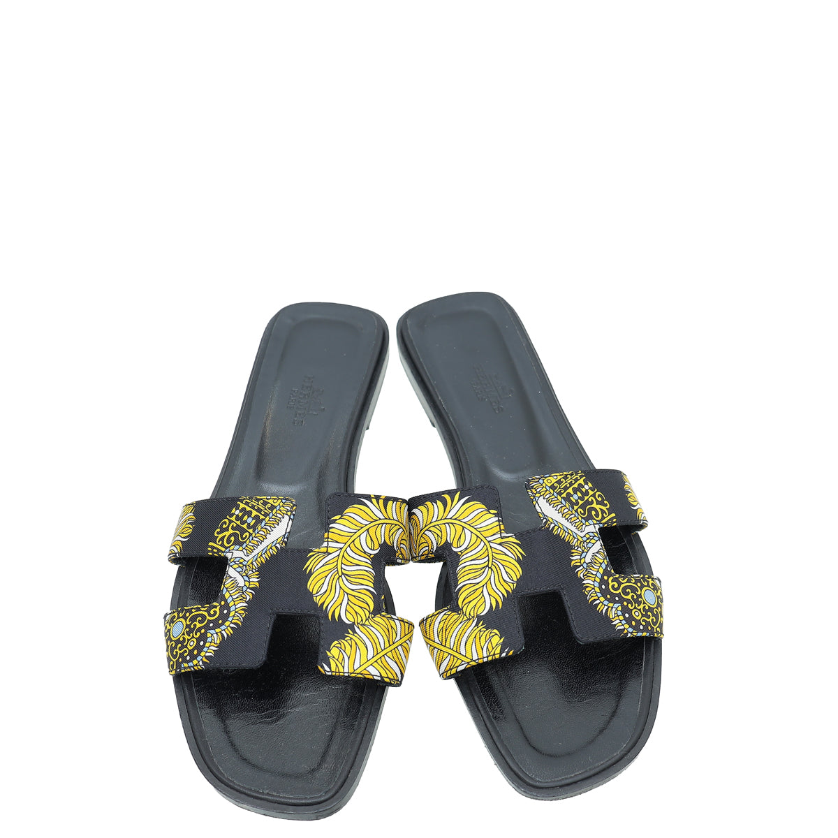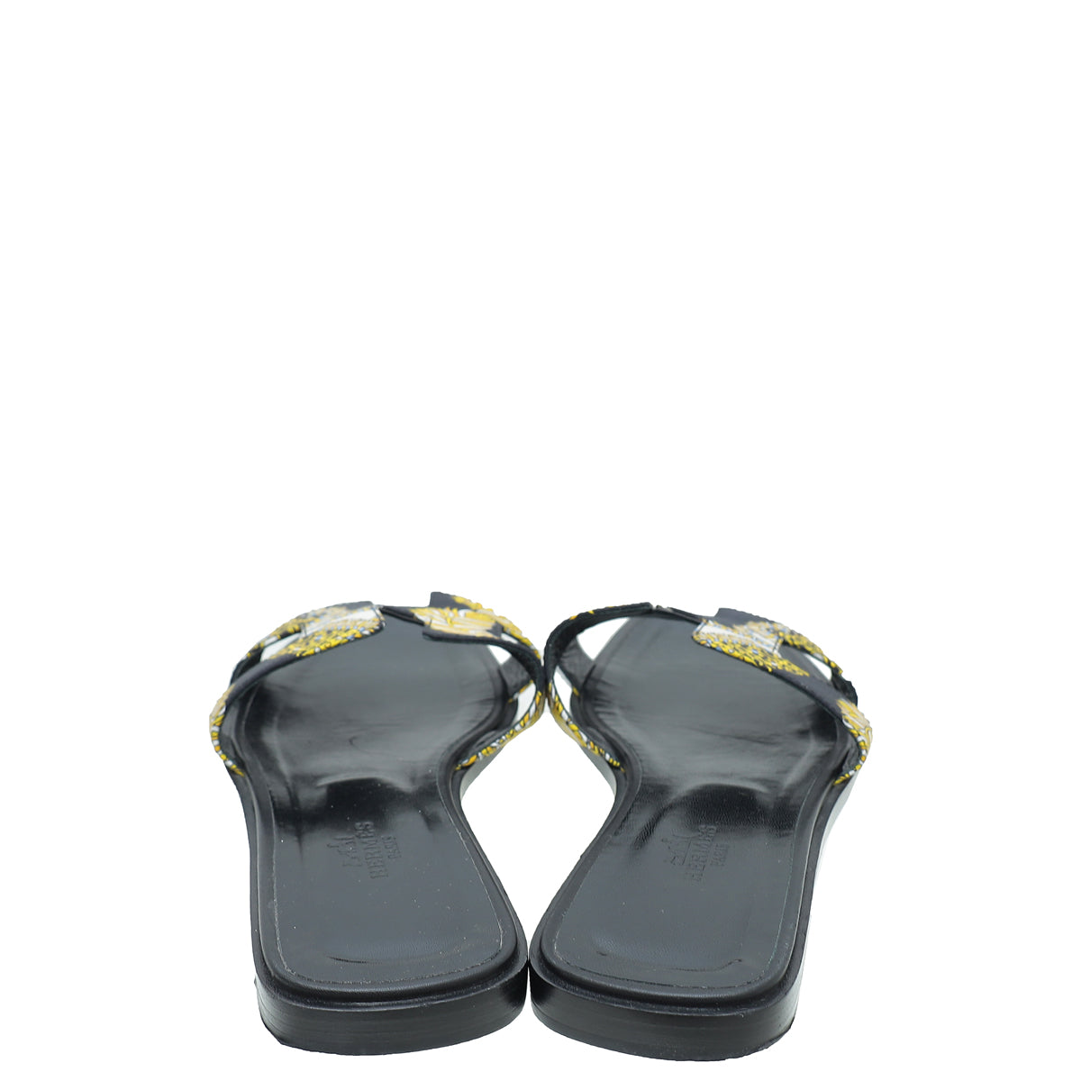Hermes Noir Multicolor Sous L'egide De Mars Silk Oran Sandals 38