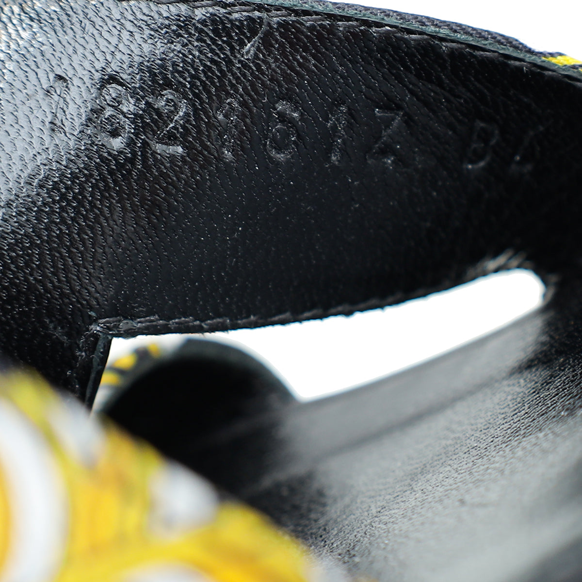 - Material: Noir Calf Leather and Multicolor Silk Print