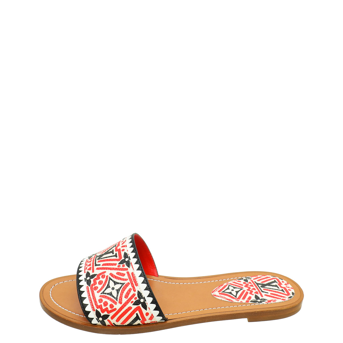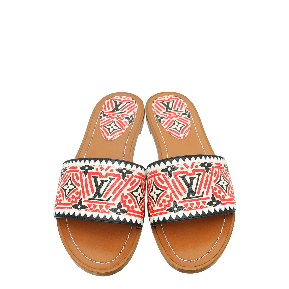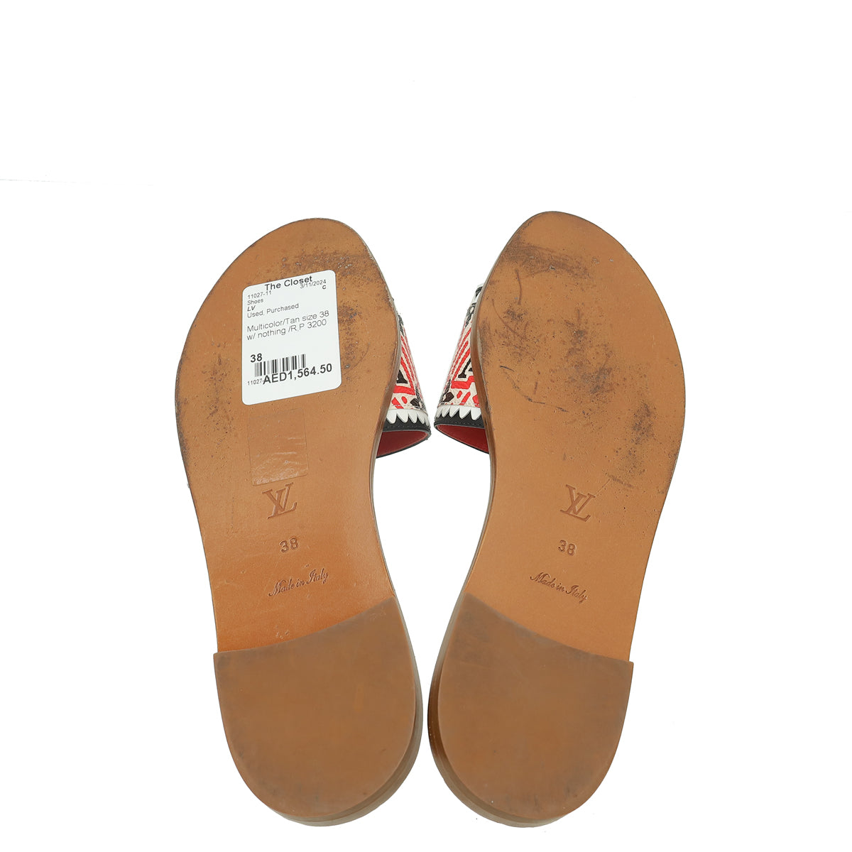 Louis Vuitton Multicolor/Tan Crafty Lock It Flat Mule 38
