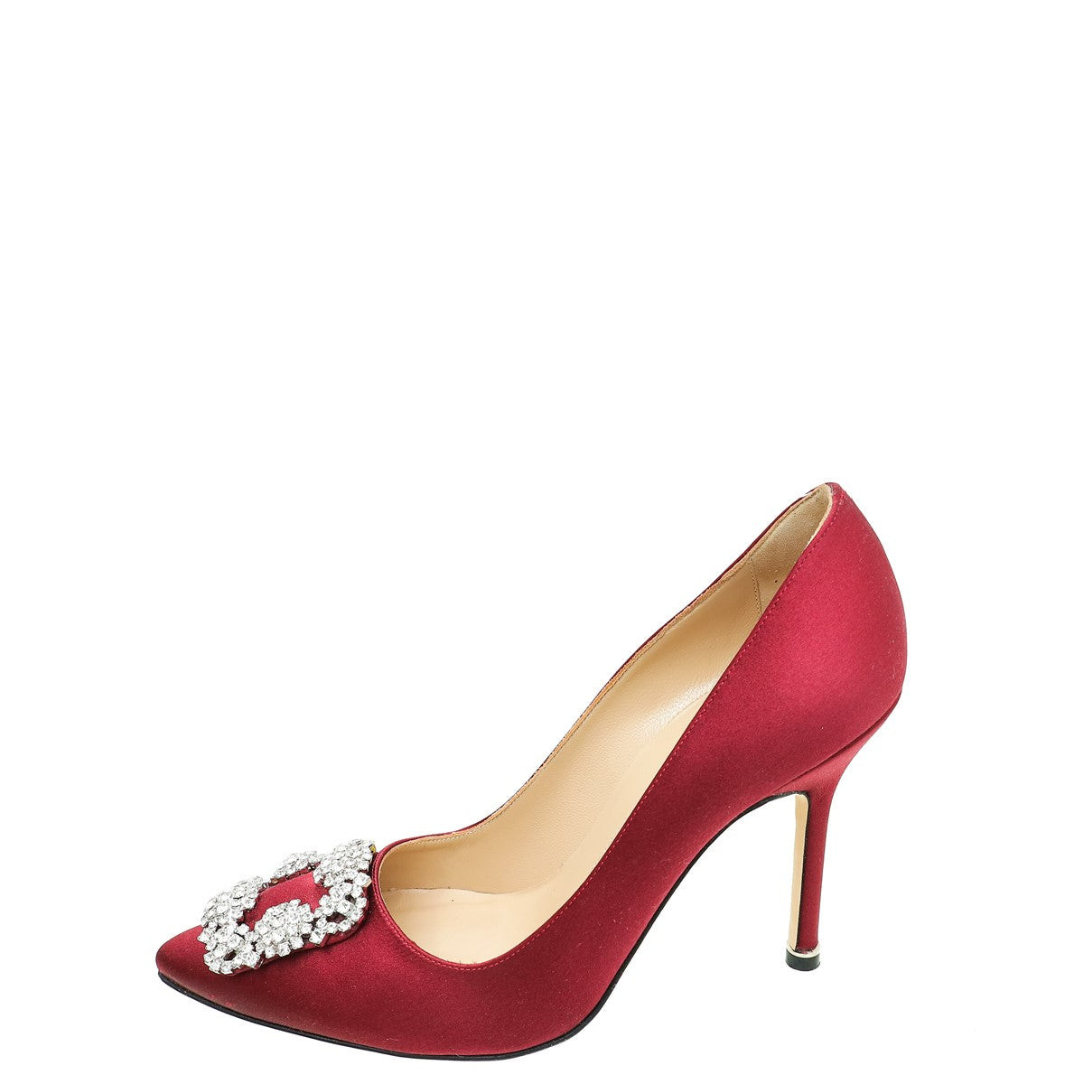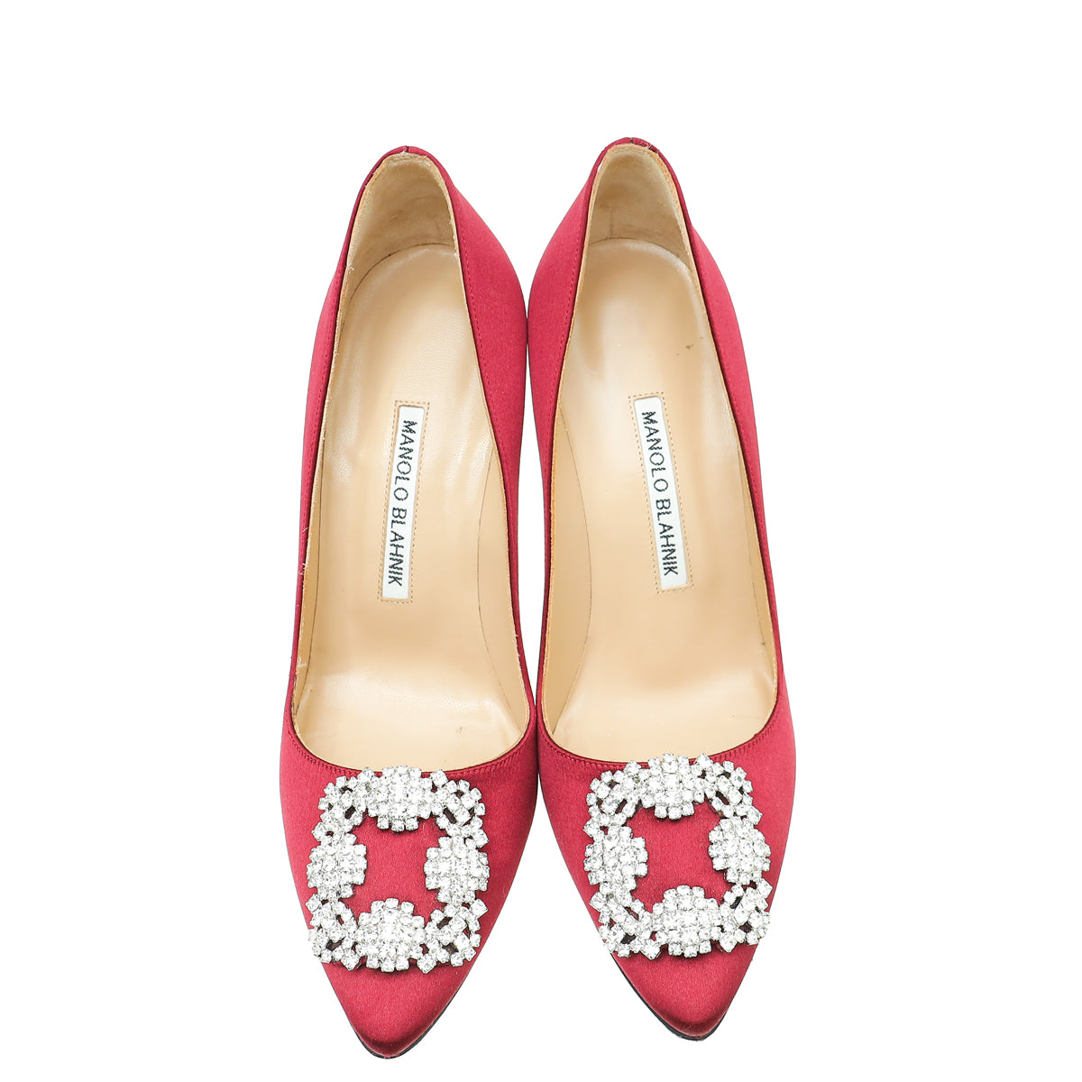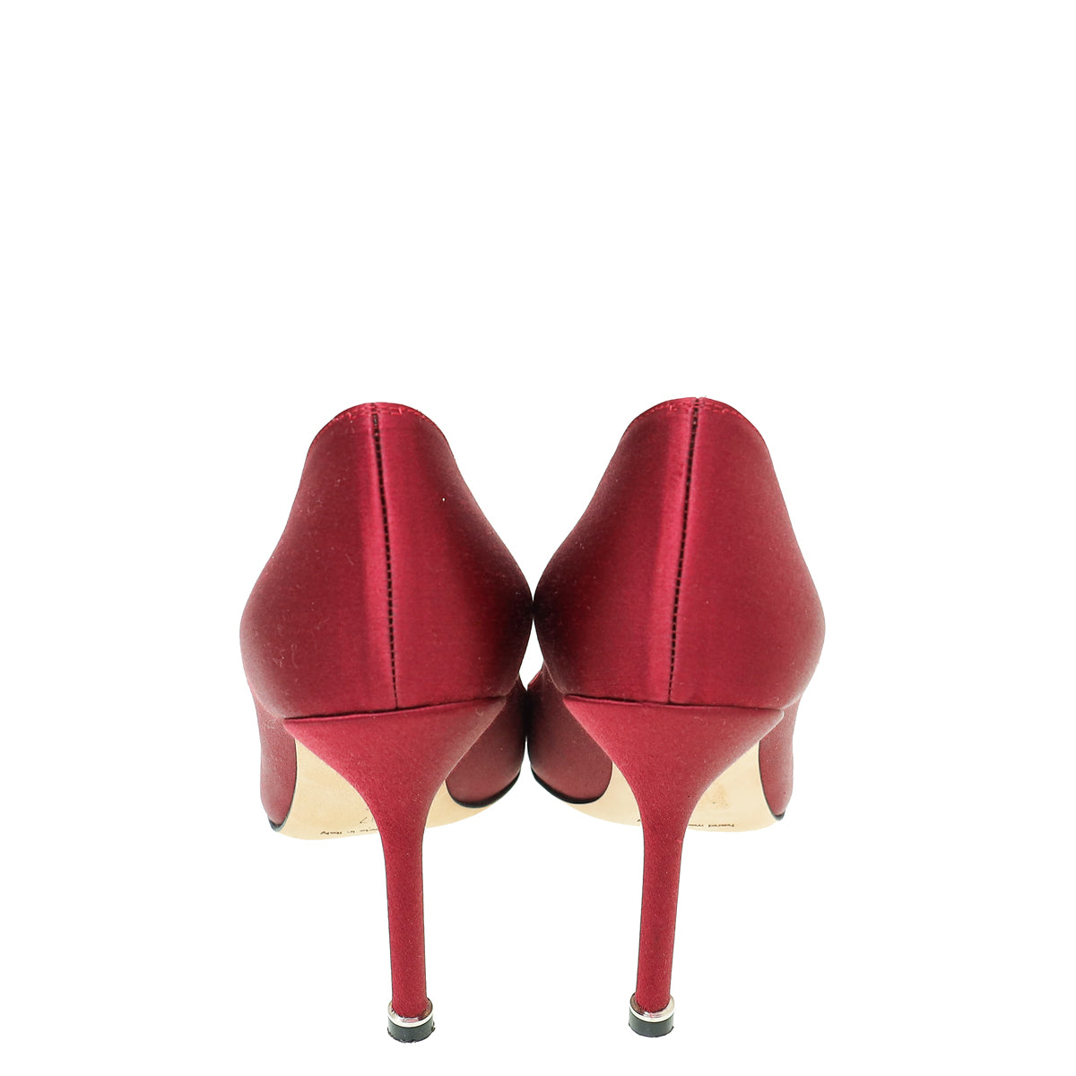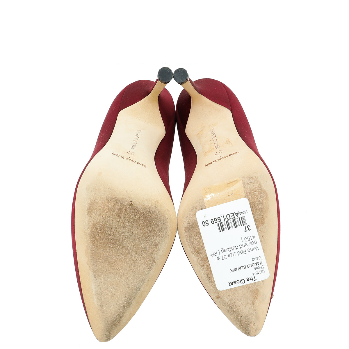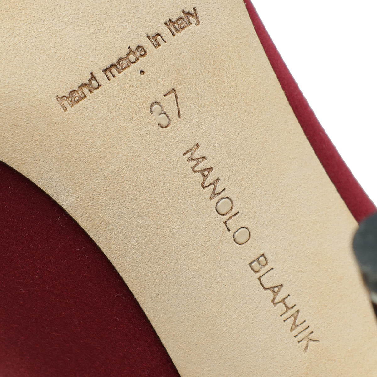 Manolo Blahnik Wine Red Satin Hangisi Pump 37