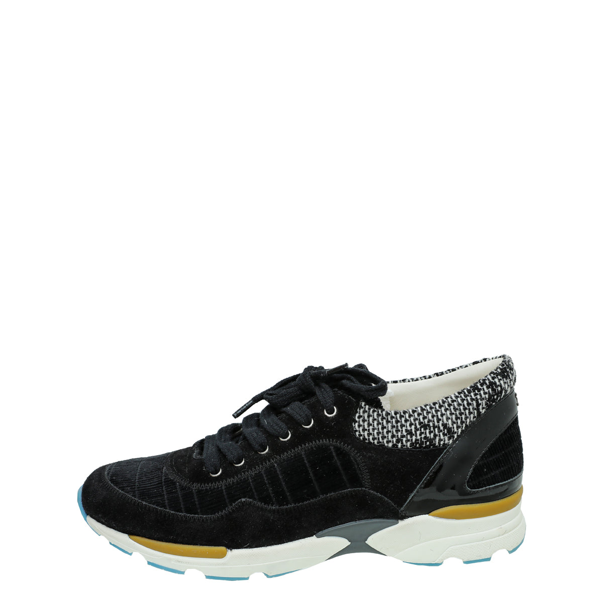 Chanel Black Velvet Tweed CC Runway Sneaker 38.5