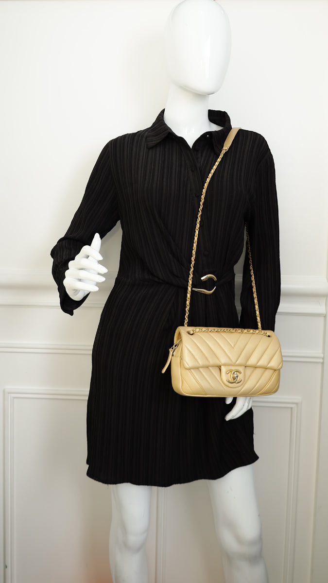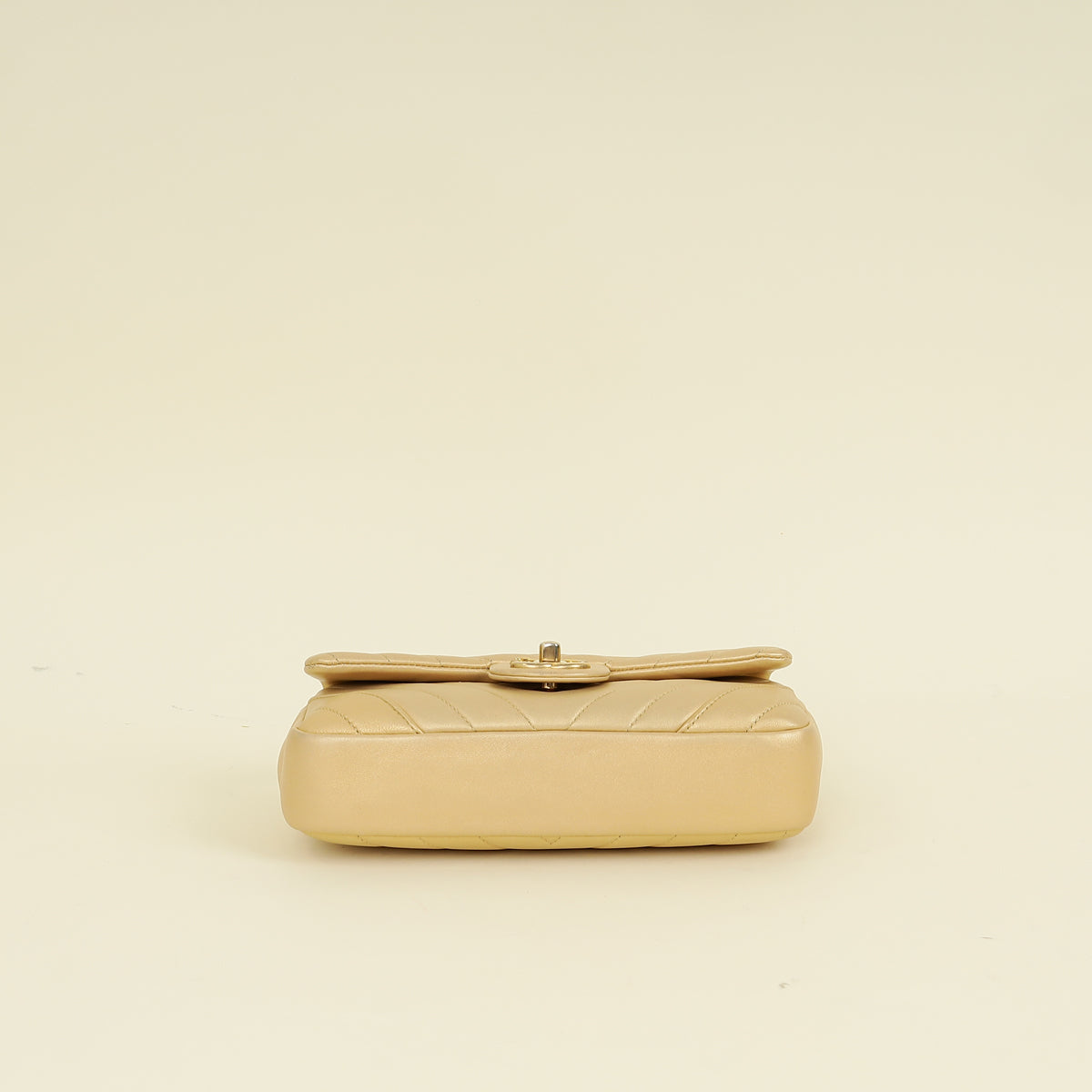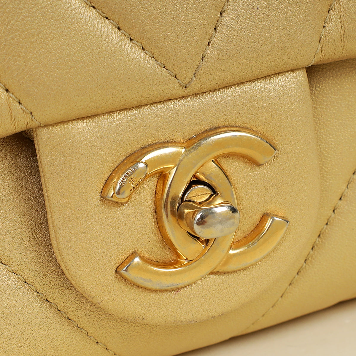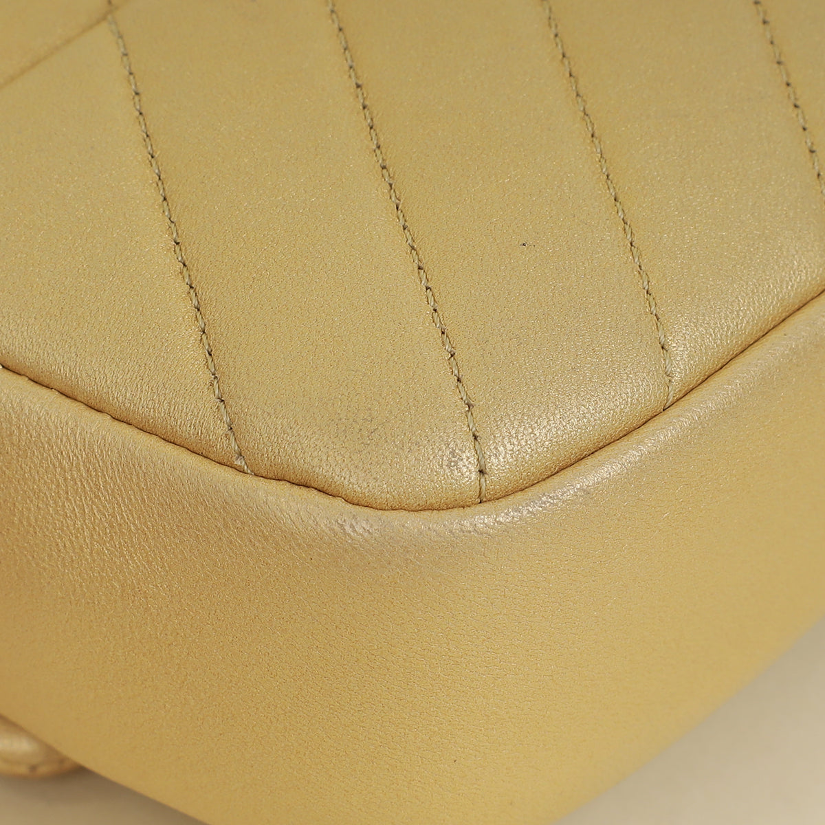Chanel Light Metallic Gold CC Chevron Camera Case Small Flap Bag