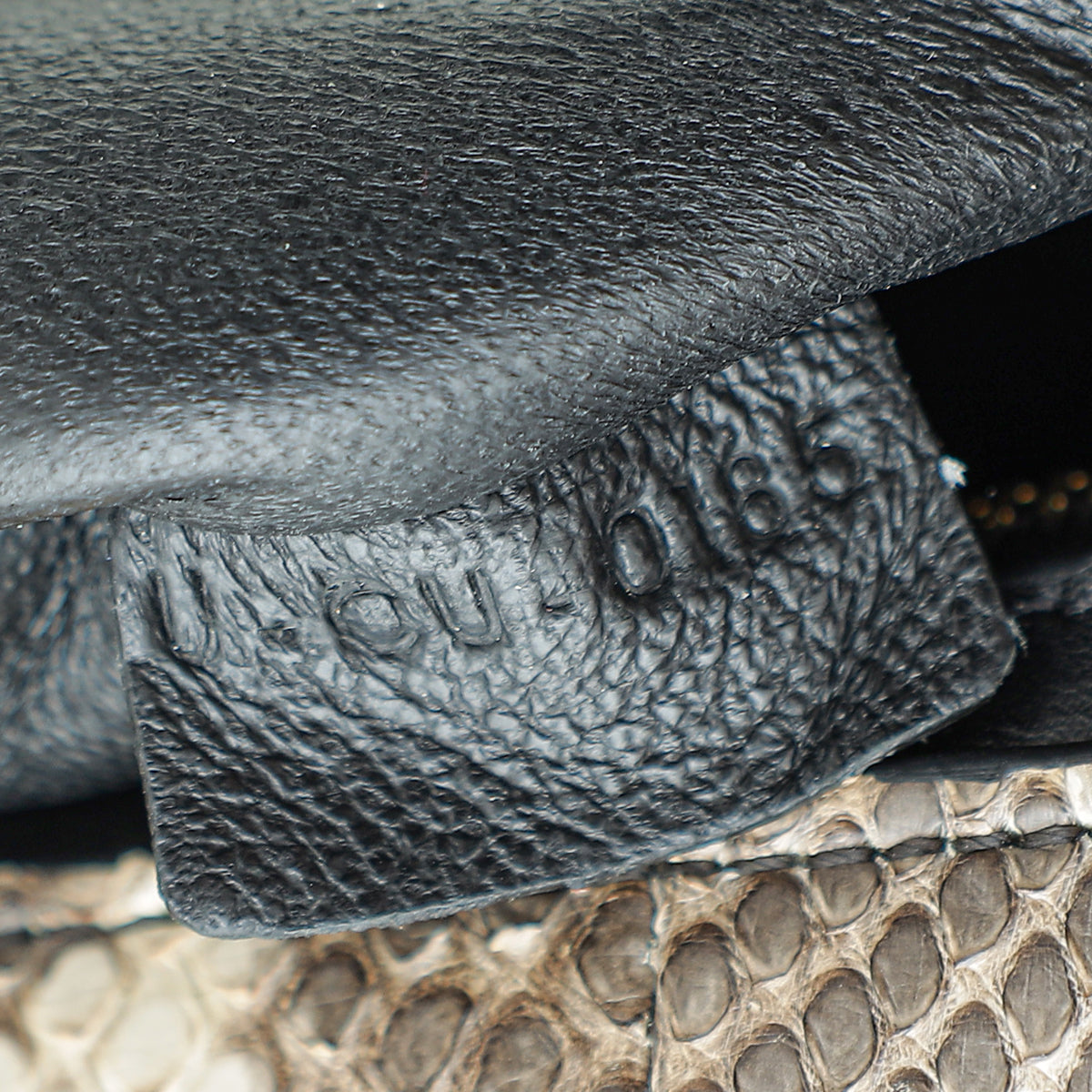 Material: Natural Python Leather, Black Smooth Leather and Blue Suede Trim
