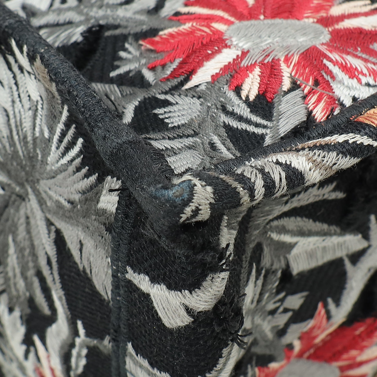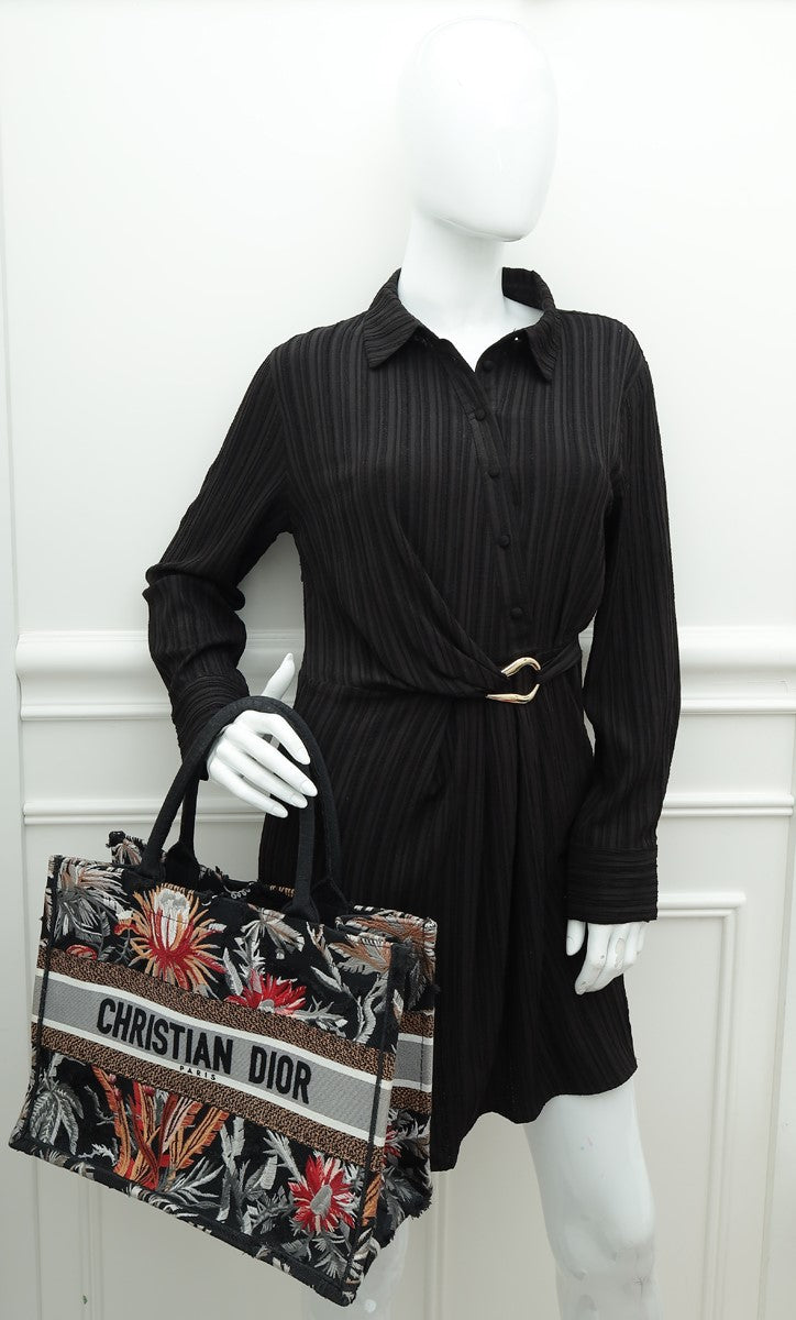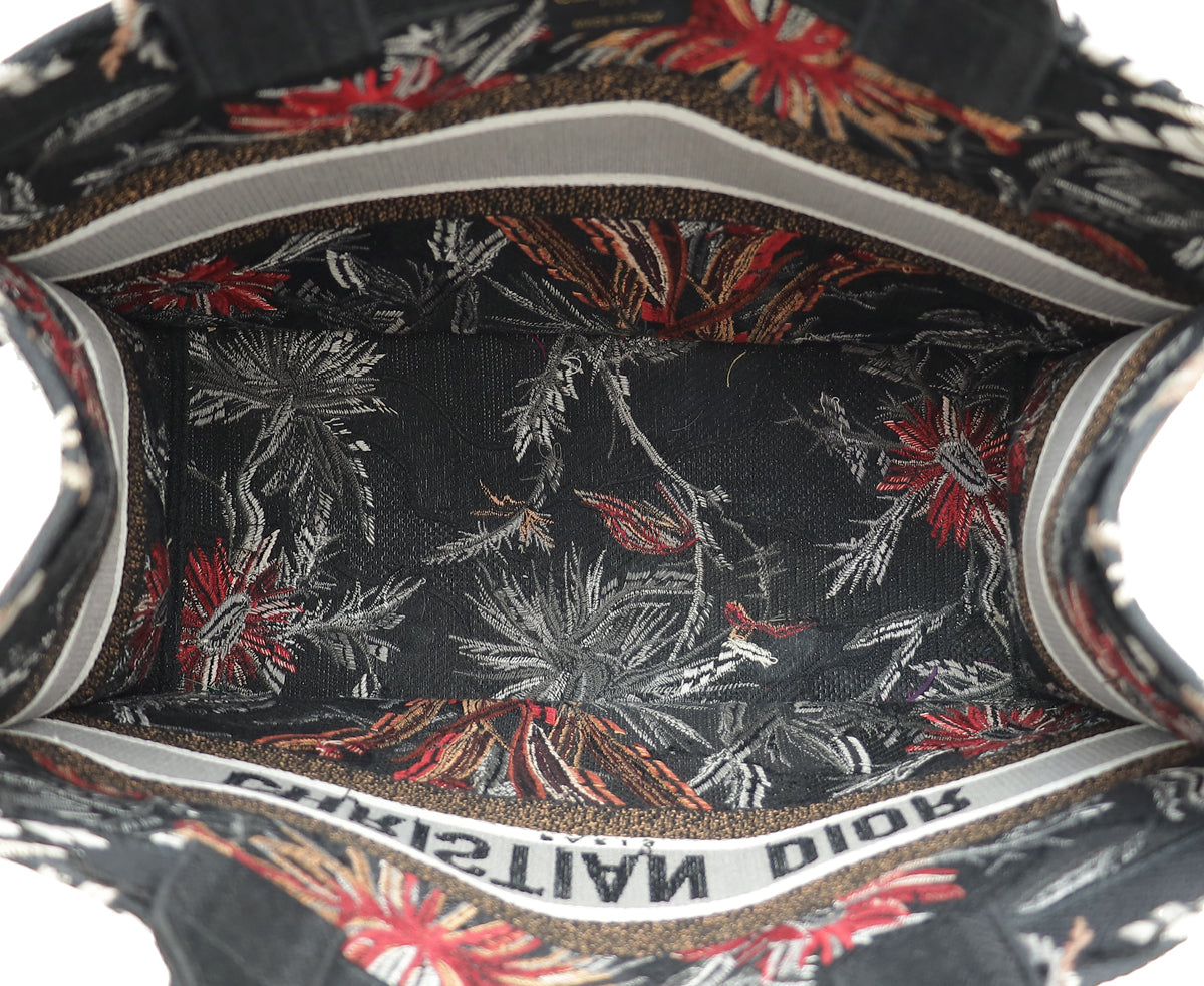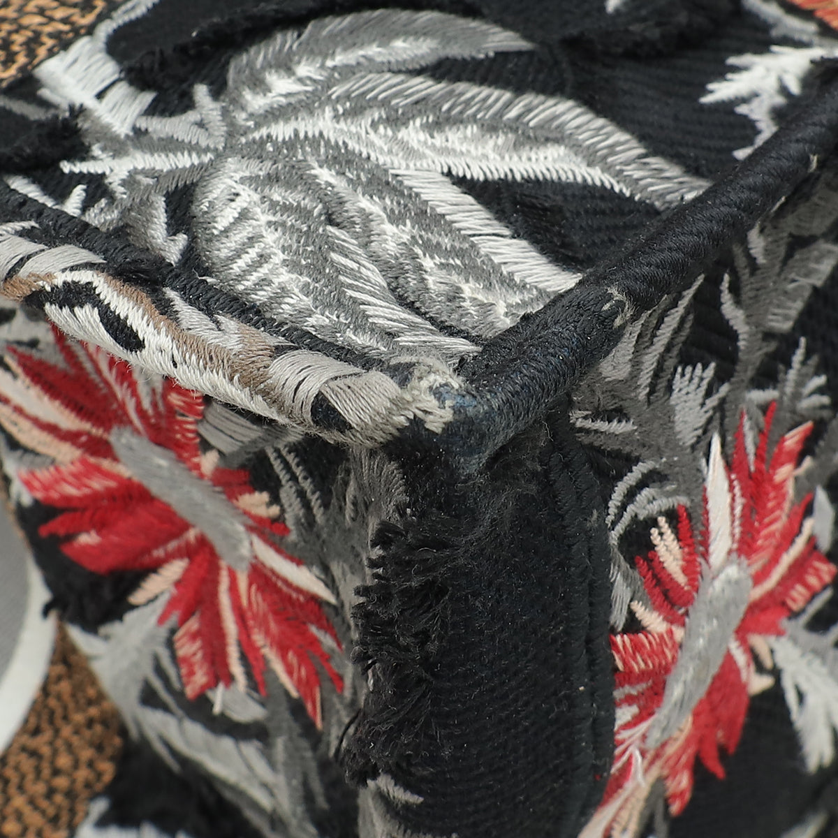 Christian Dior Black Multicolor Camouflage Flowers Embroidered Book Tote Medium Bag