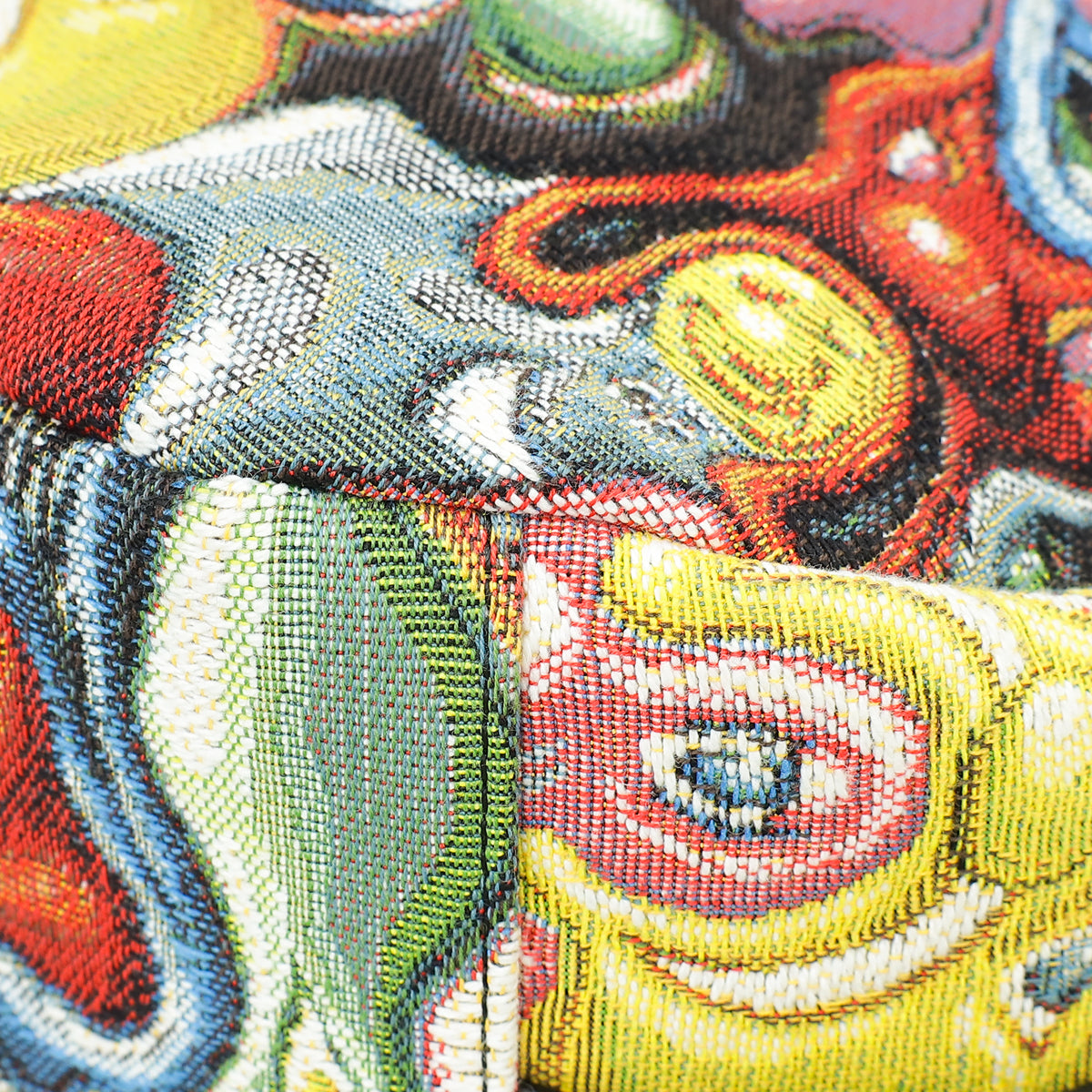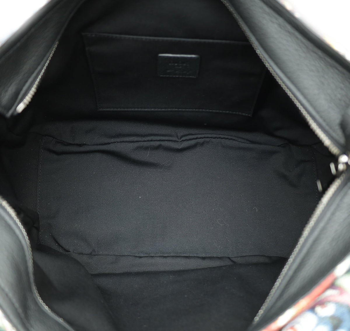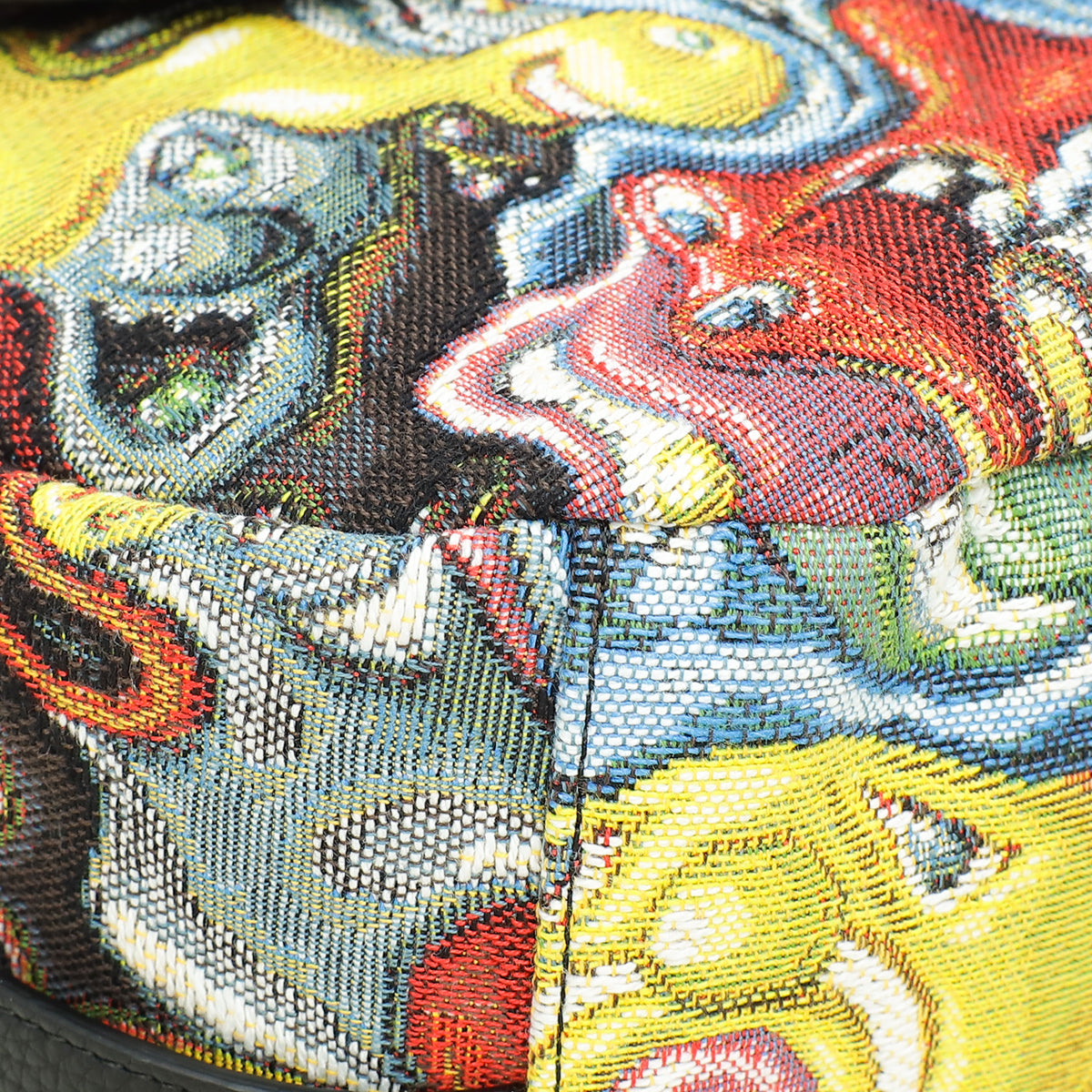 - Material: Multicolor Jacquard Printed Canvas with Black Leather Trim