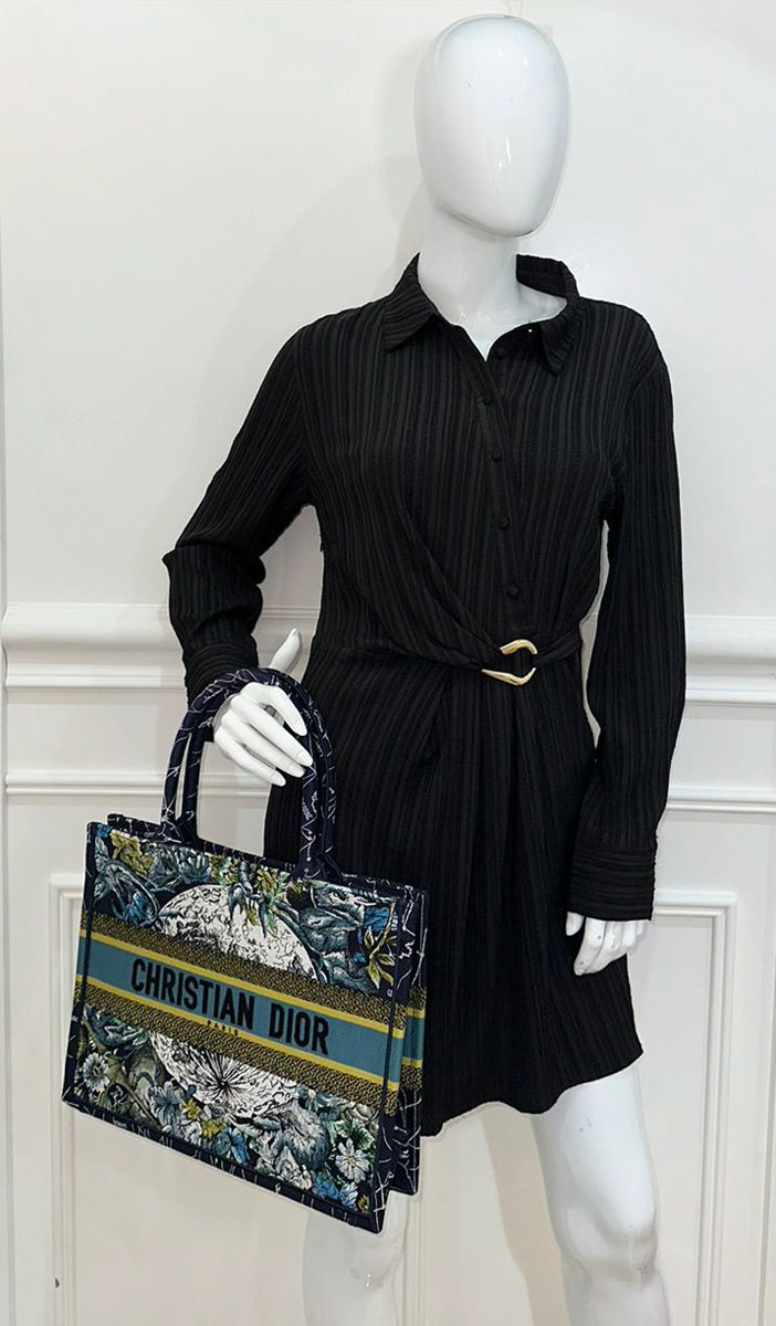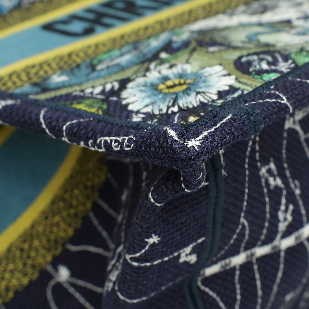 - Material: Navy Blue Multicolor Zodiac Embroidered Canvas with "CHRISTIAN DIOR" Signature.
