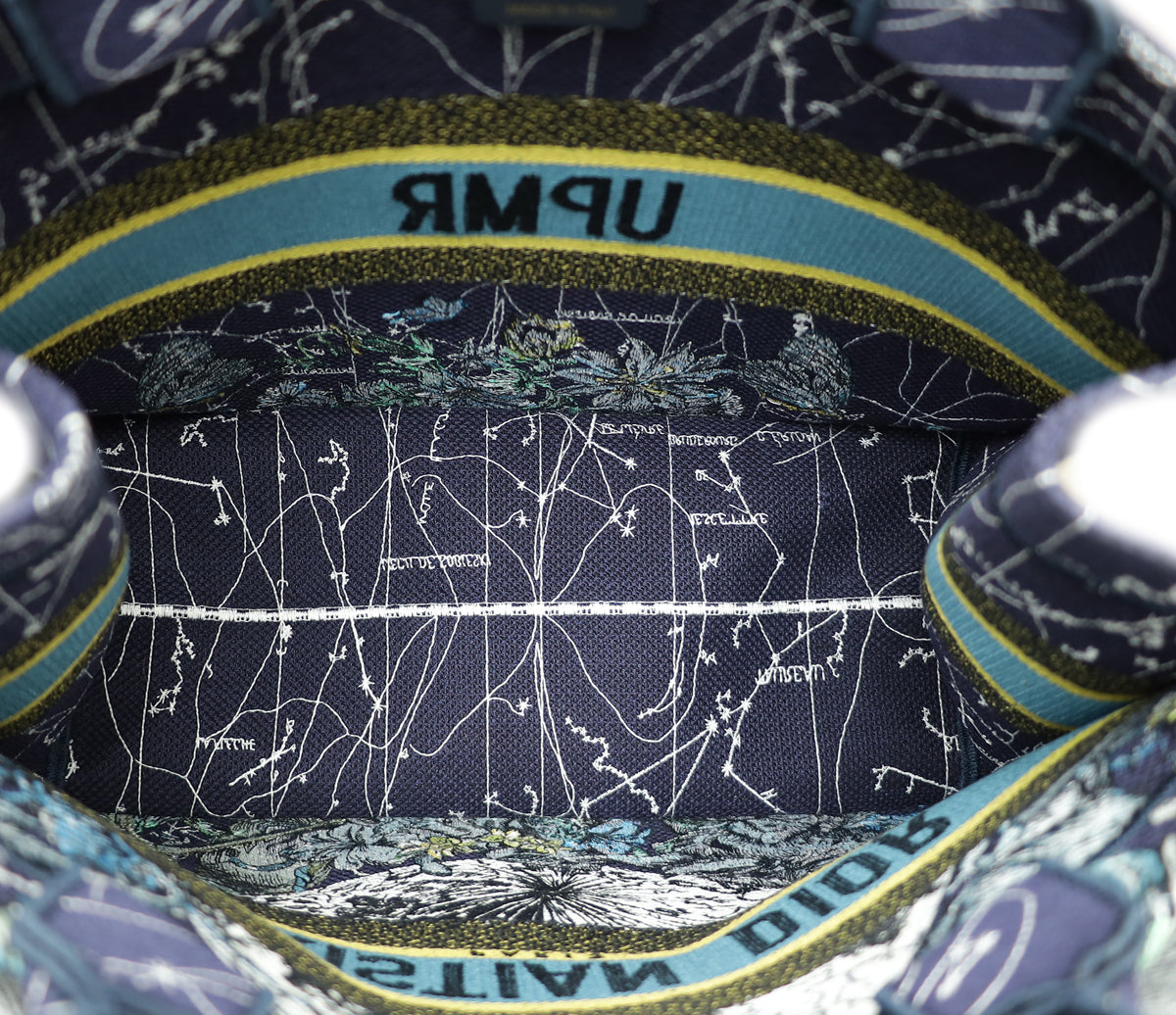Christian Dior Navy Blue Multicolor Zodiac Embroidery Book Tote Medium Bag W/ "UPMR" Initials