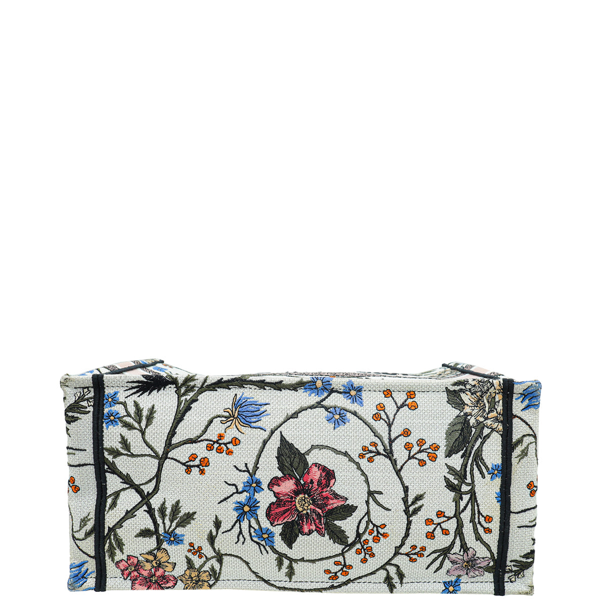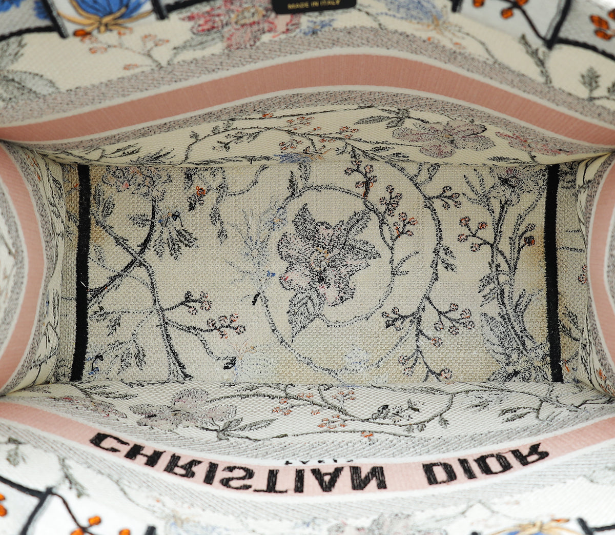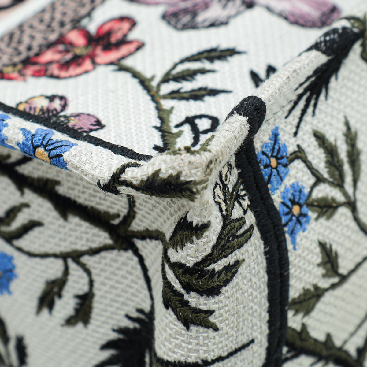 Christian Dior White Multicolor Book Tote Jardin Botanique Embroidery Medium Bag