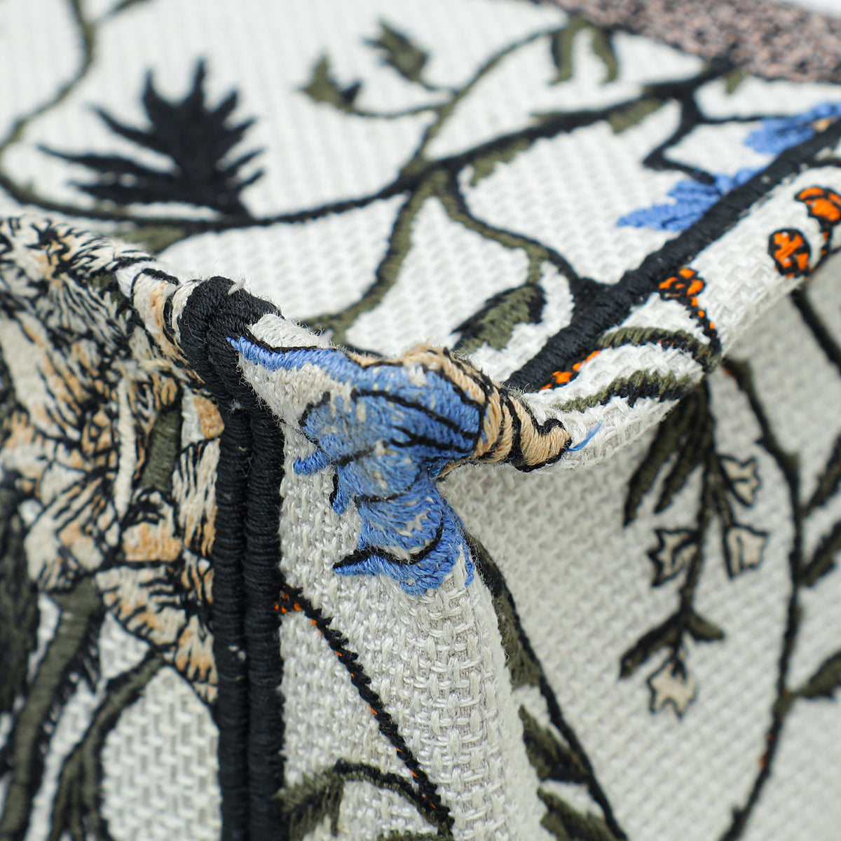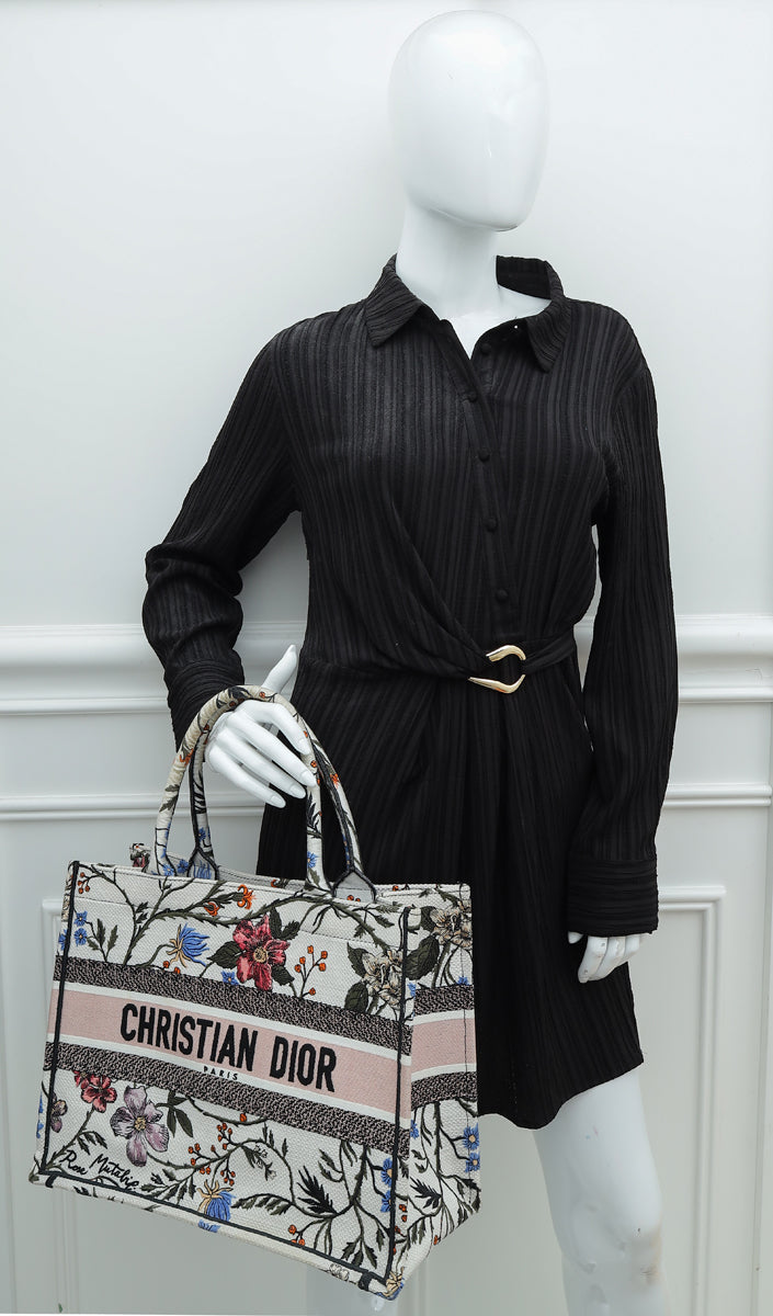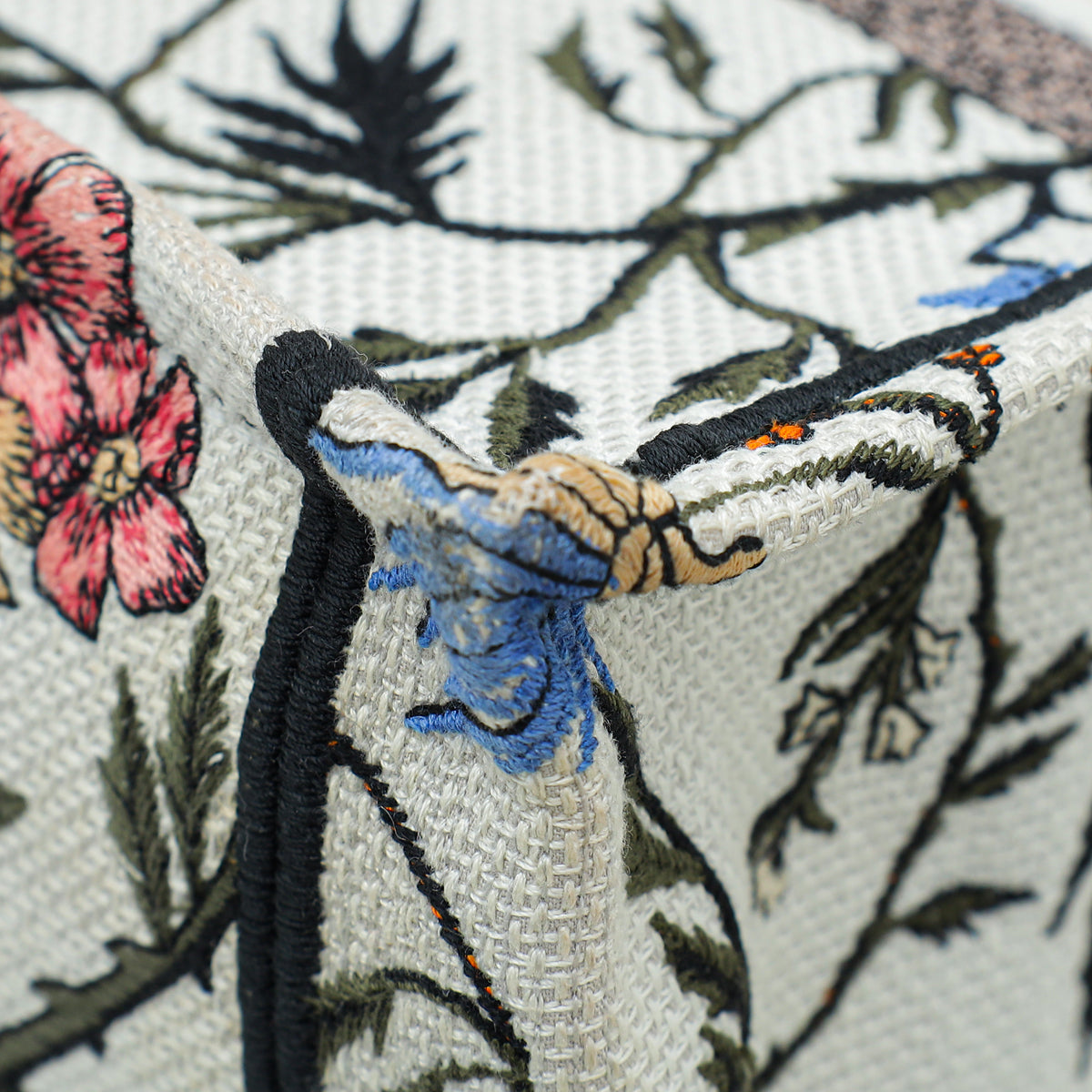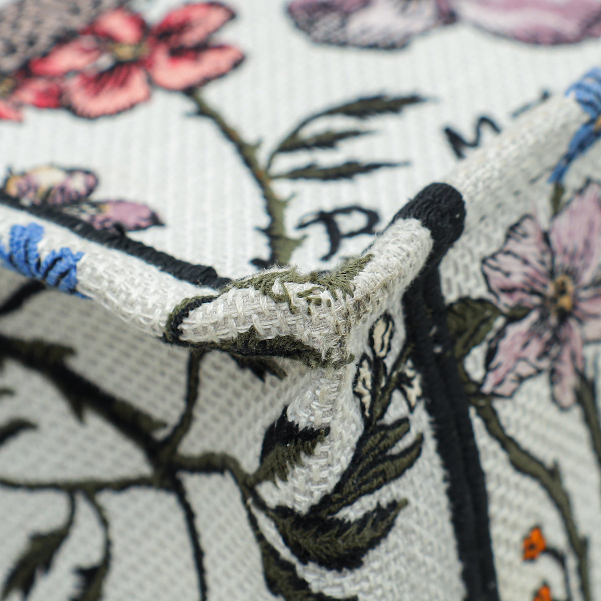 Christian Dior White Multicolor Book Tote Jardin Botanique Embroidery Medium Bag