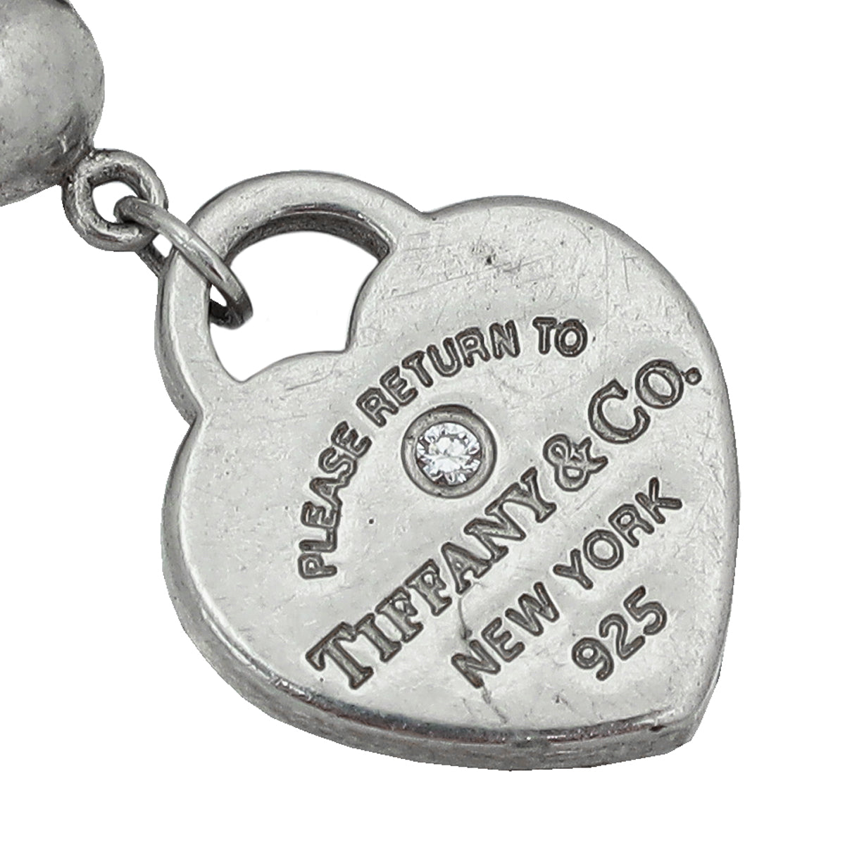 Tiffany & Co Silver Mini Heart Tag 1 Diamond Bead Bracelet