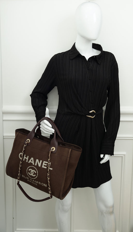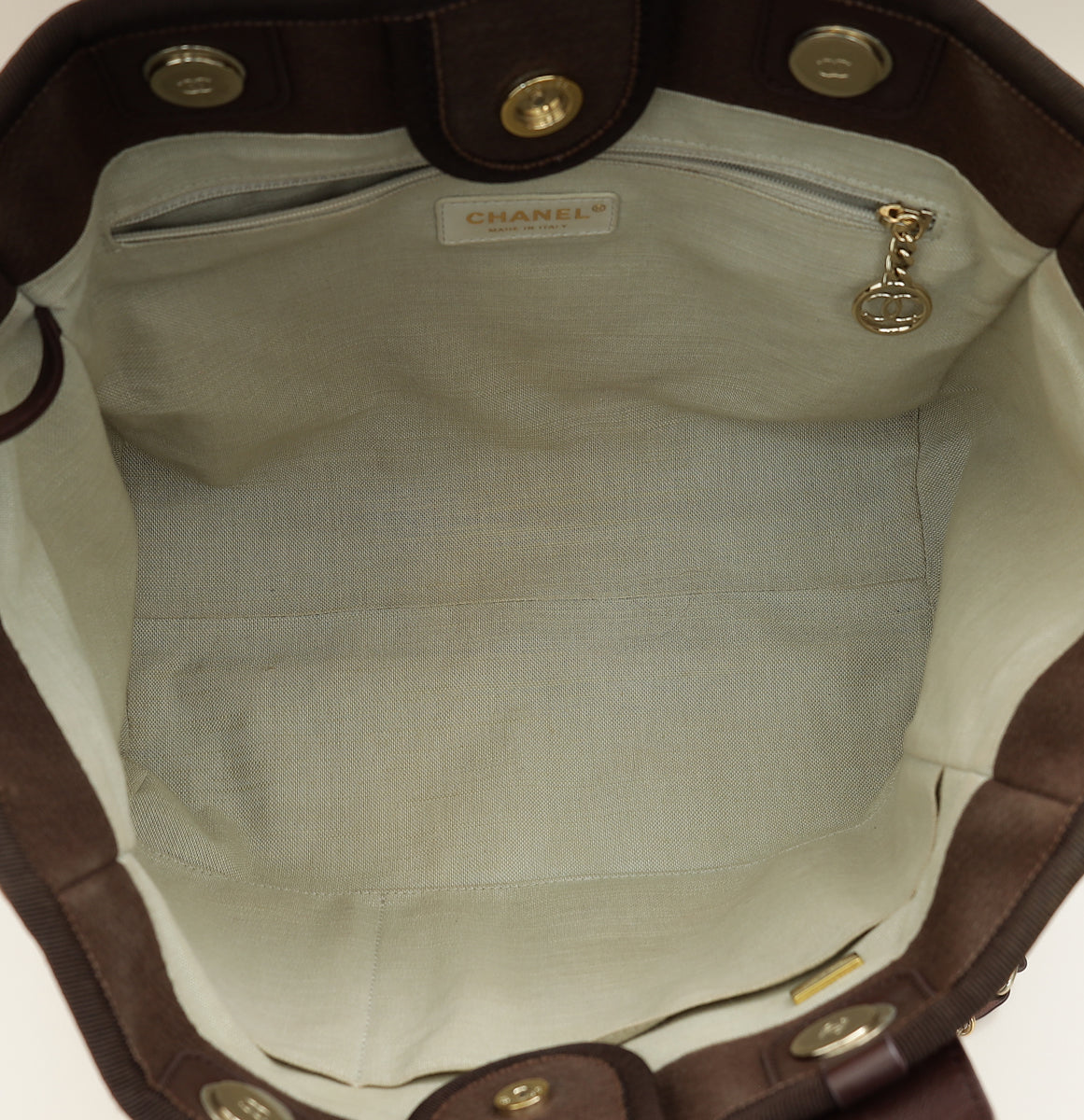 Chanel Brown CC Deauville Mixed Fabric Medium Tote Bag