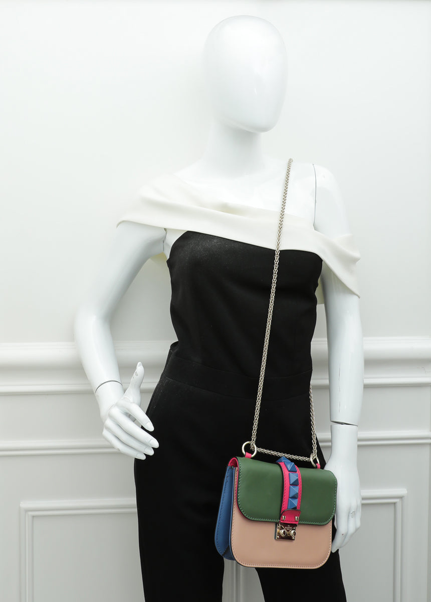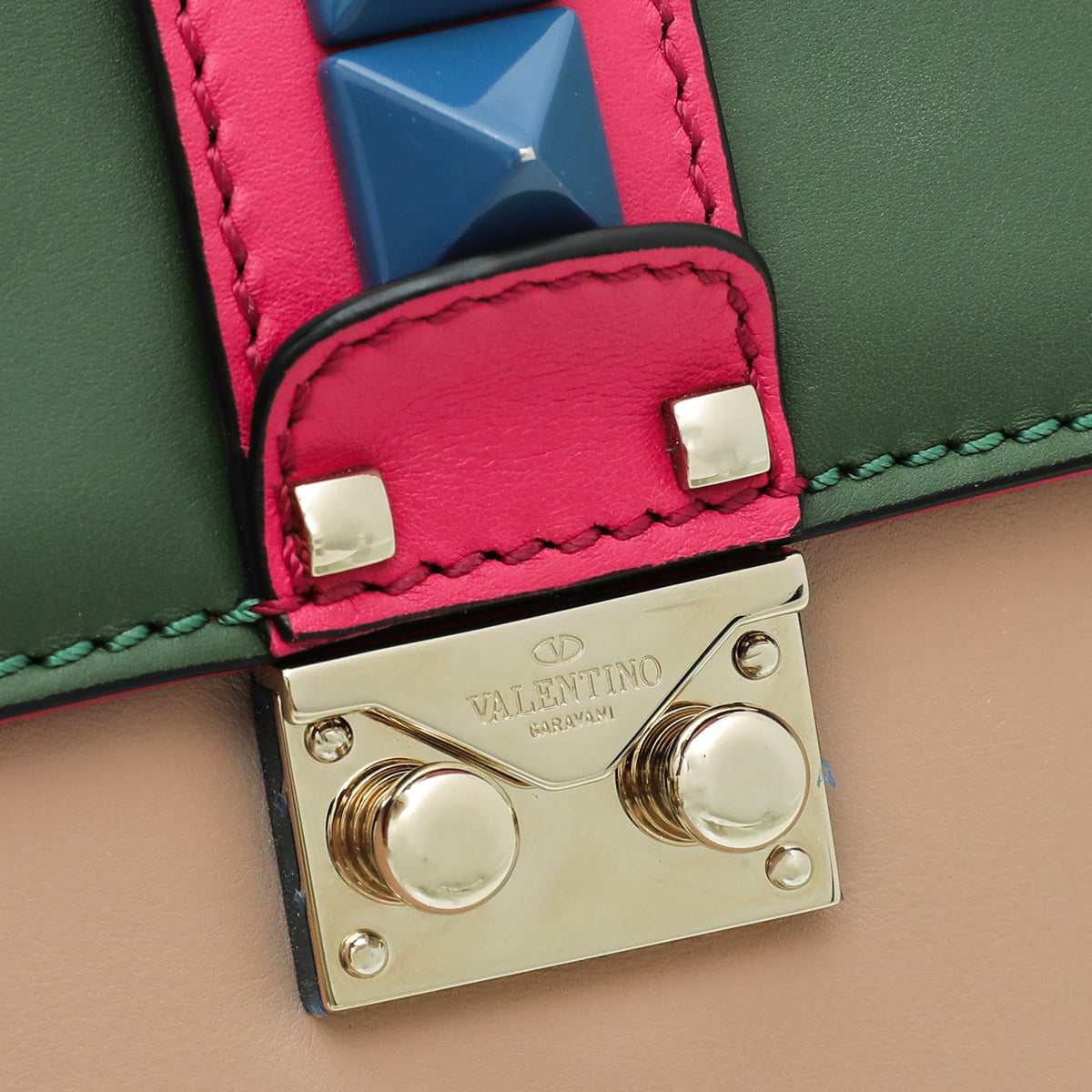 Valentino Multicolor Colorblock Rockstud Glam Lock Flap Bag