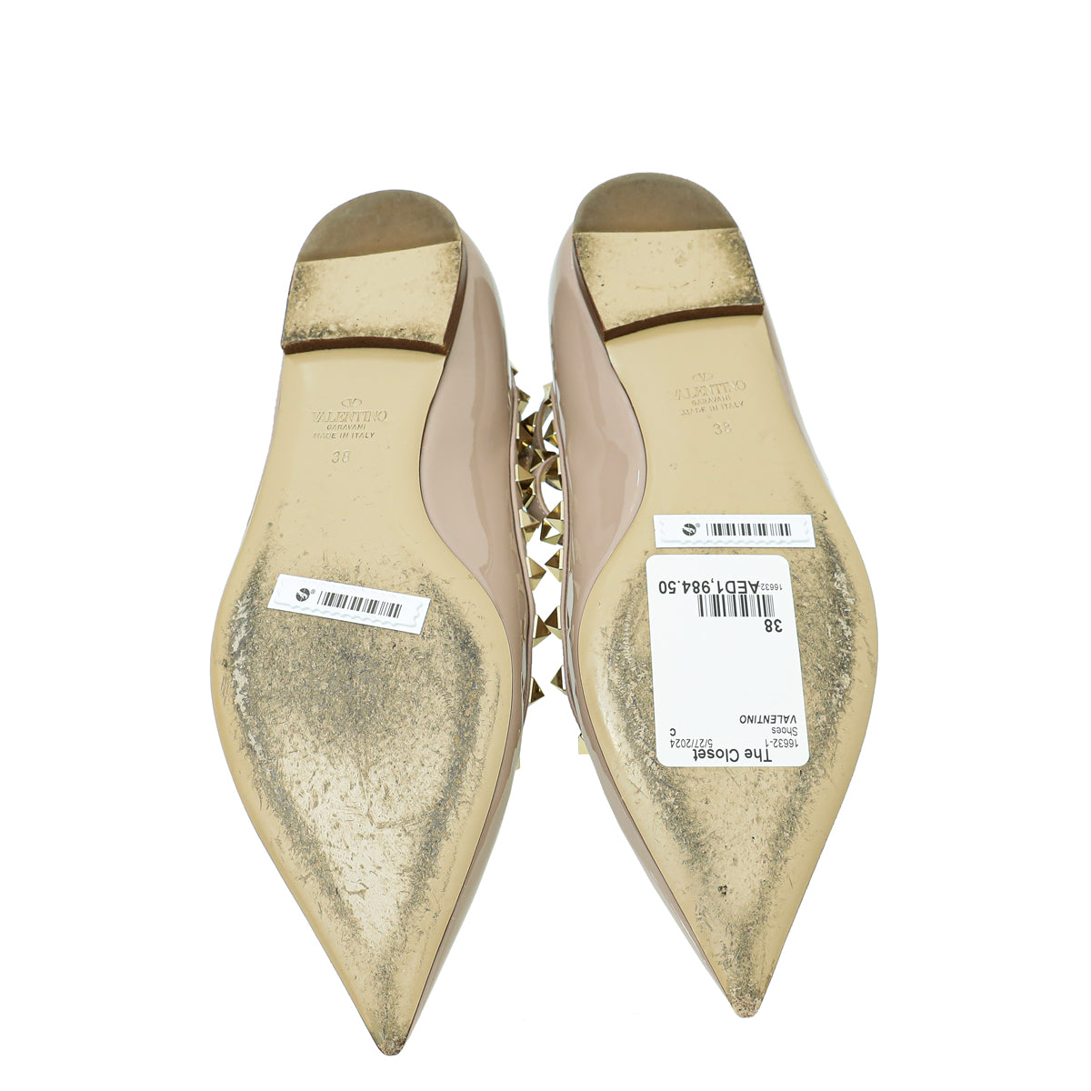 Valentino Poudre Rockstud Flat Ballerina 38-Valentino-THE CLOSET