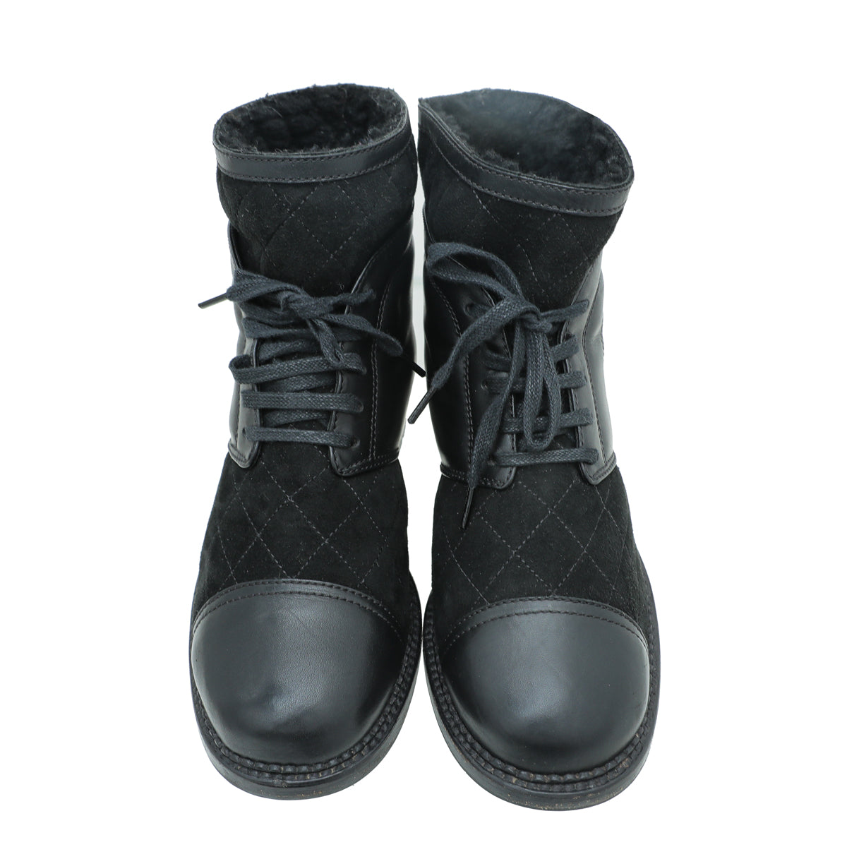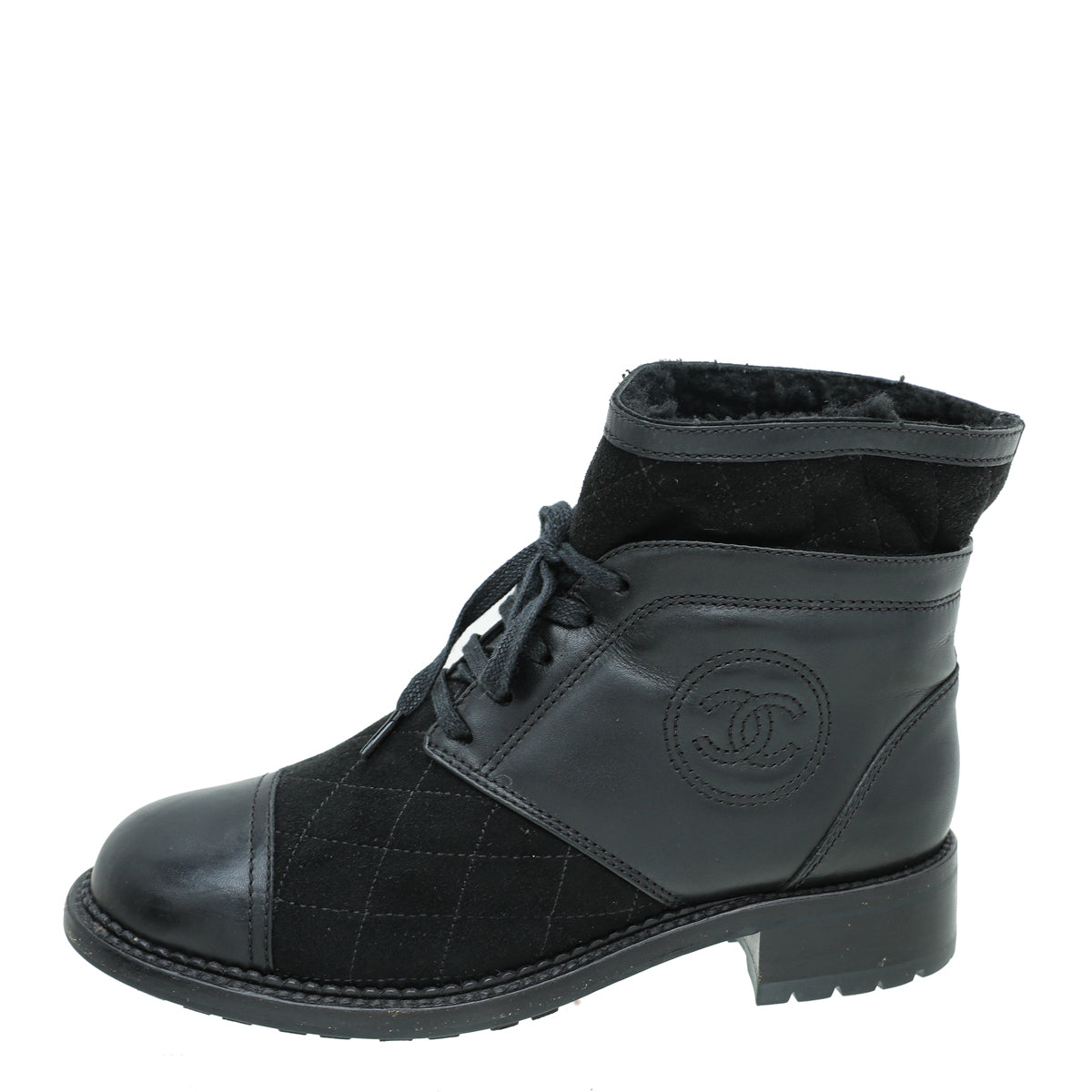Chanel Black CC Suede Combat Boots 37.5-Chanel-THE CLOSET