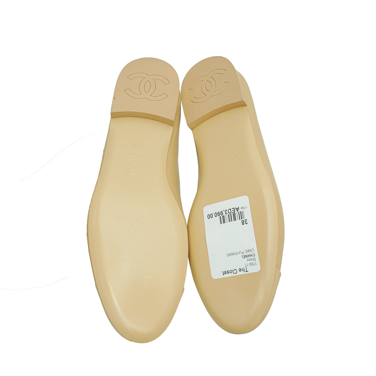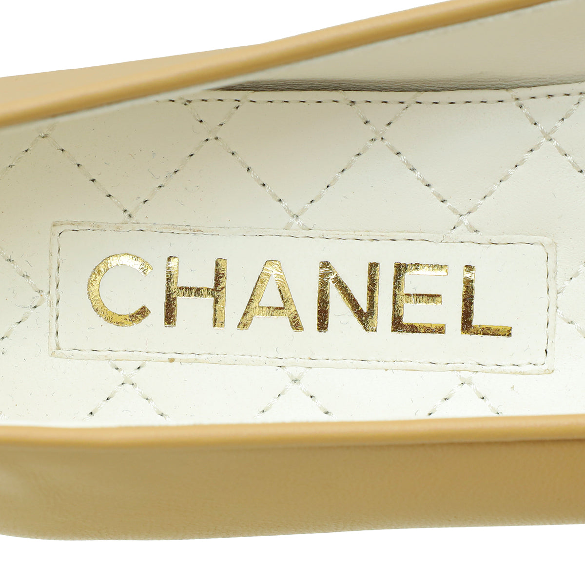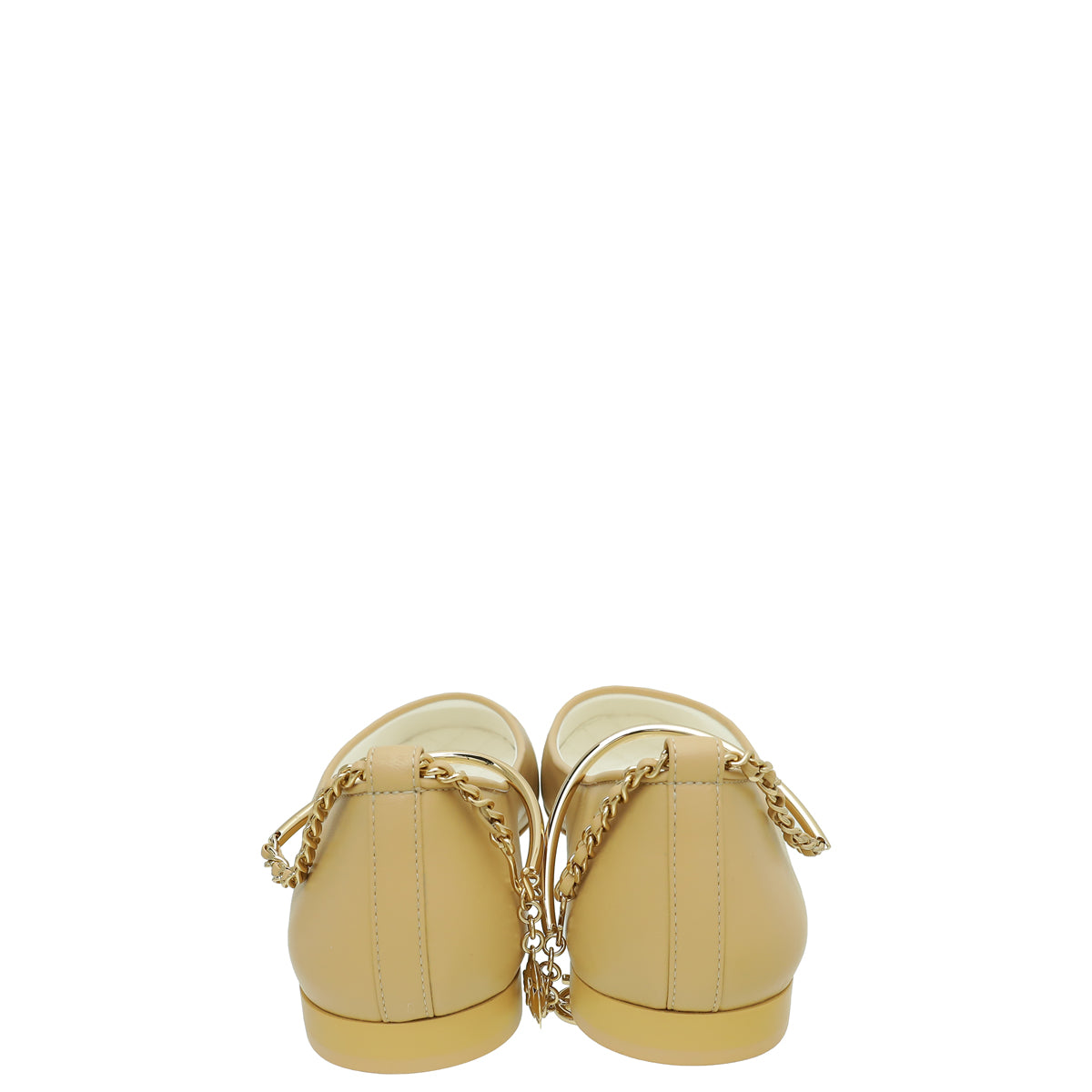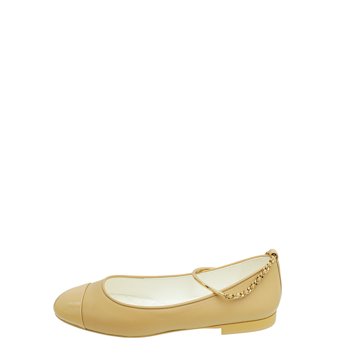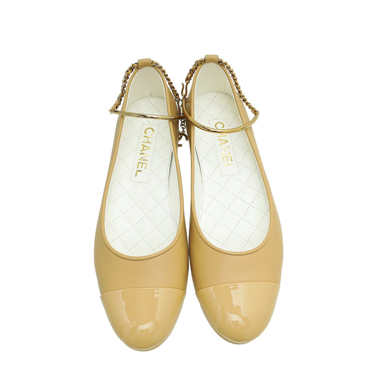 Chanel Beige CC Cap Toe Ankle Chain Ballerina Flats 38
