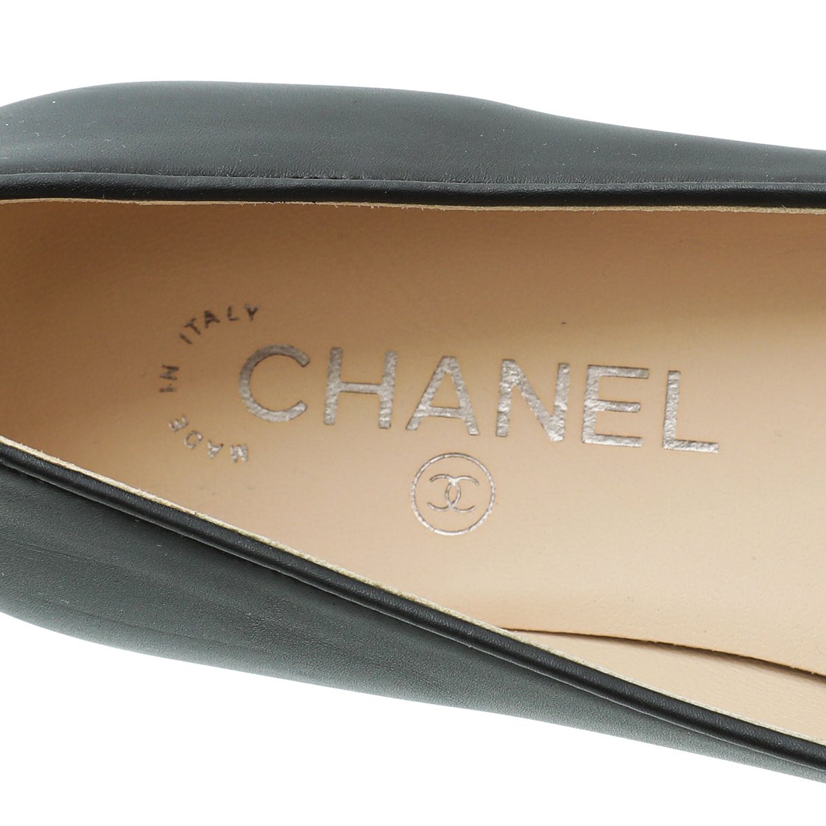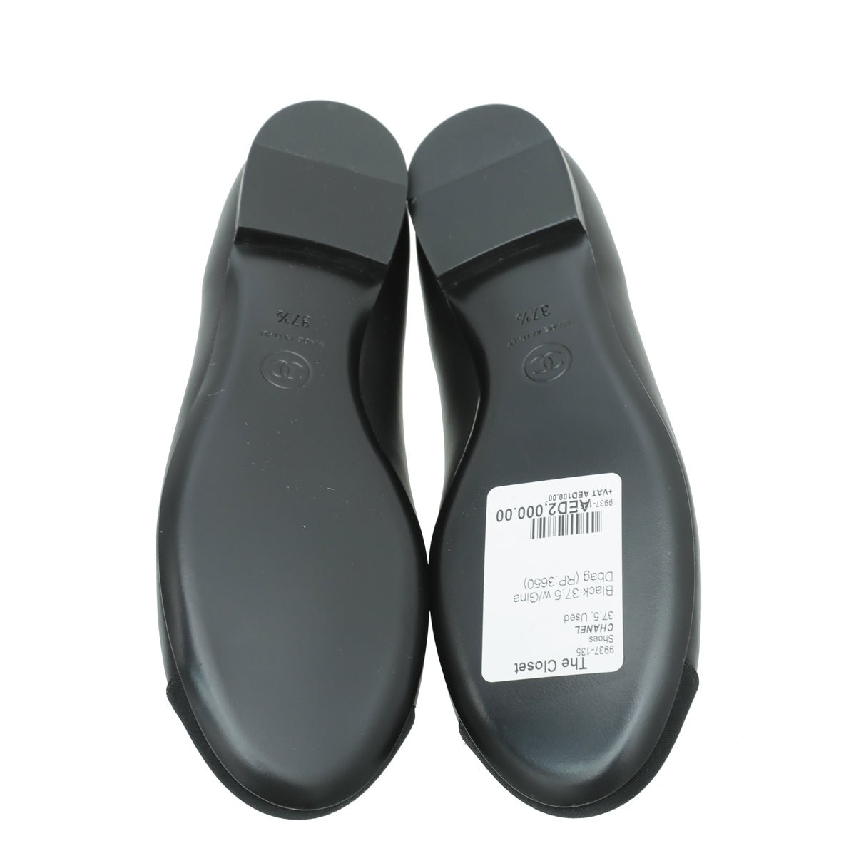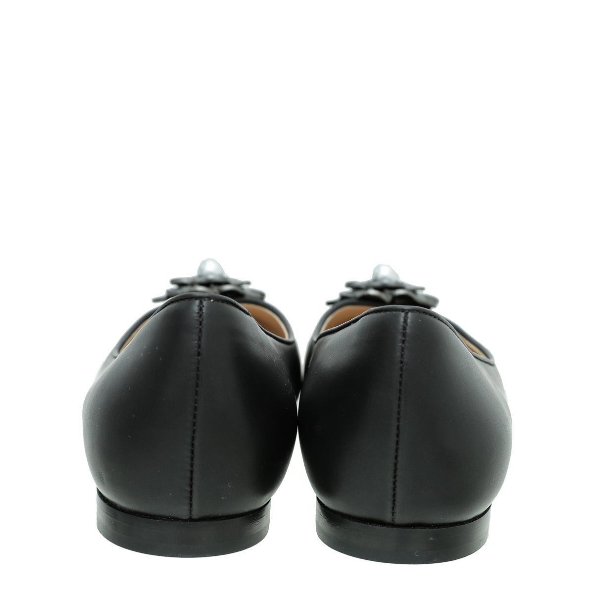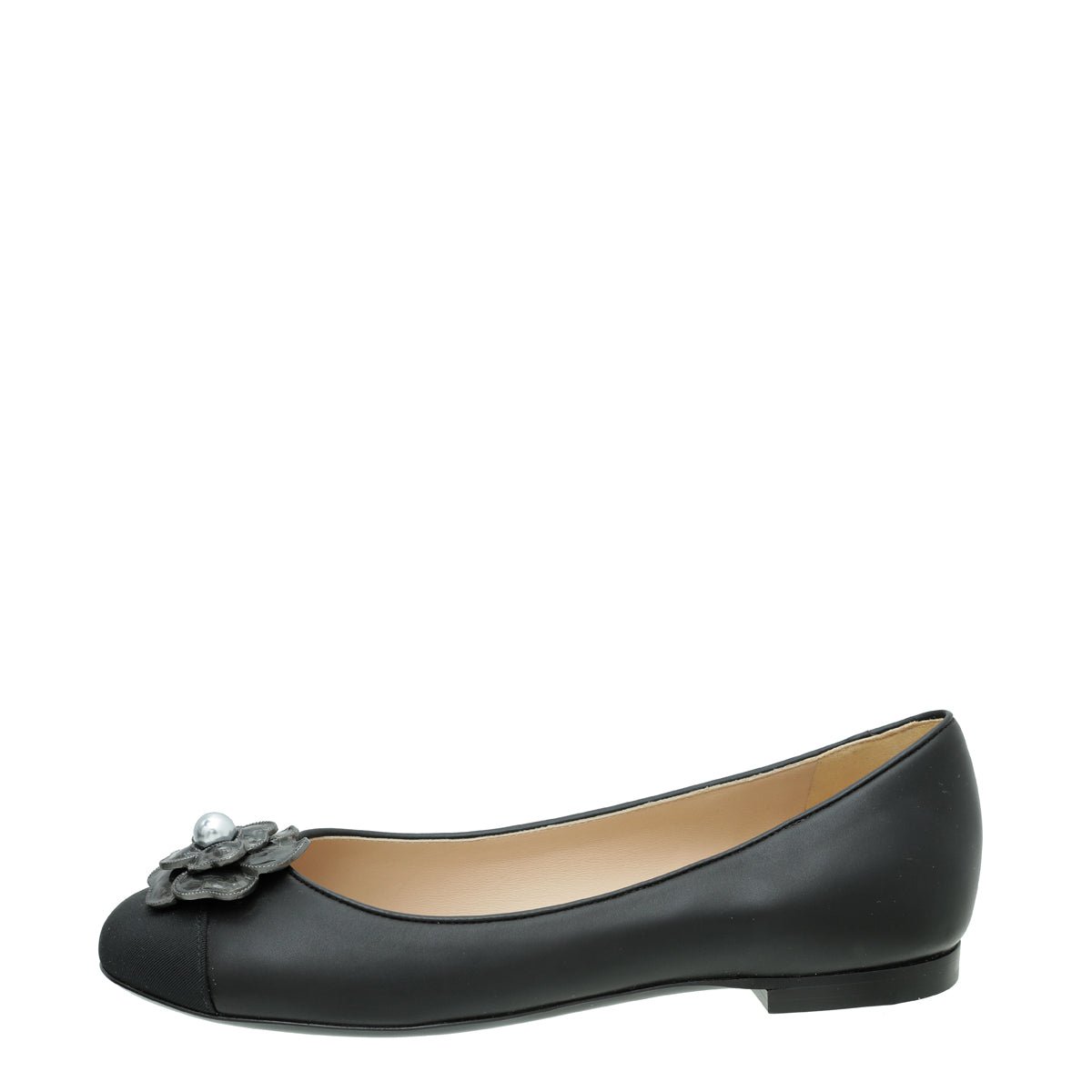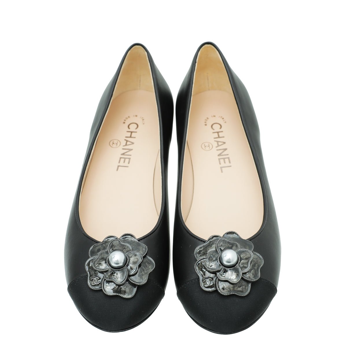 Chanel Black Camellia Pearl Ballet Flats 37.5