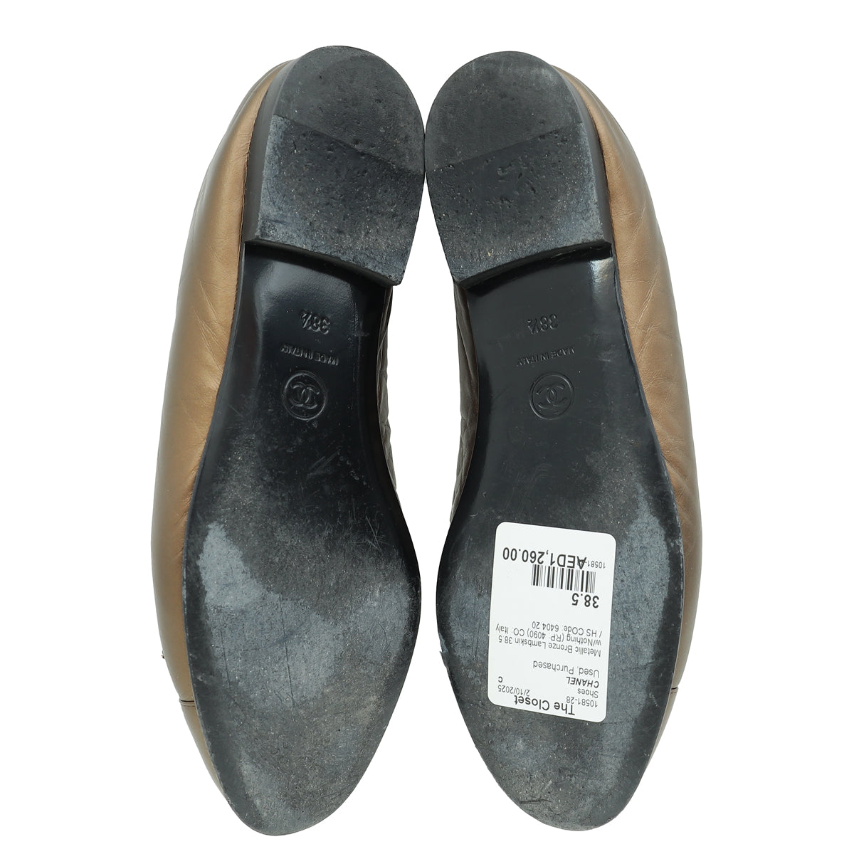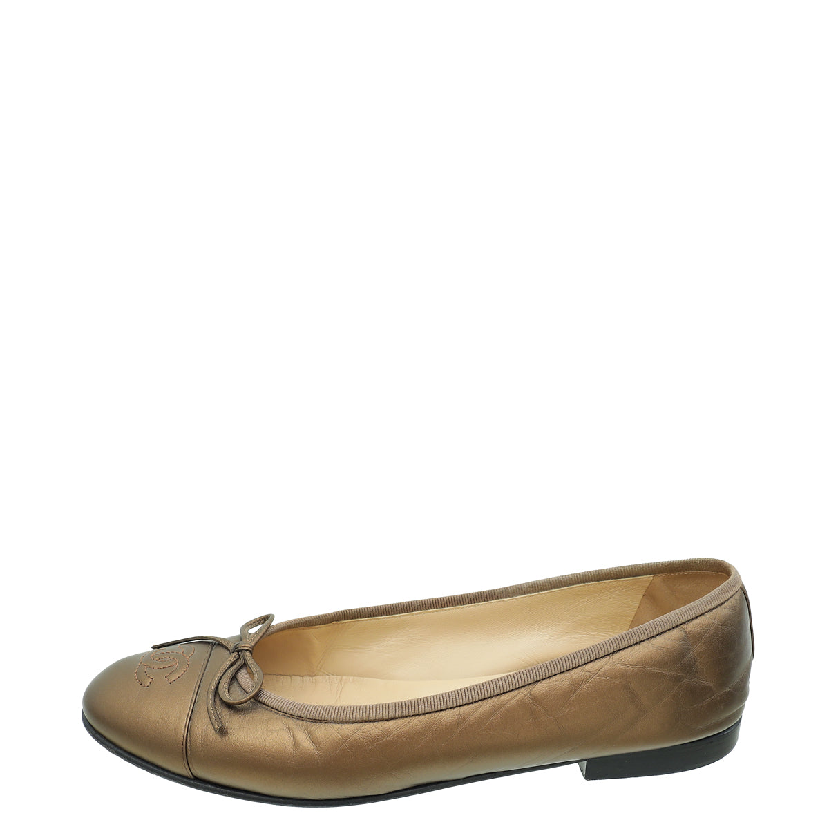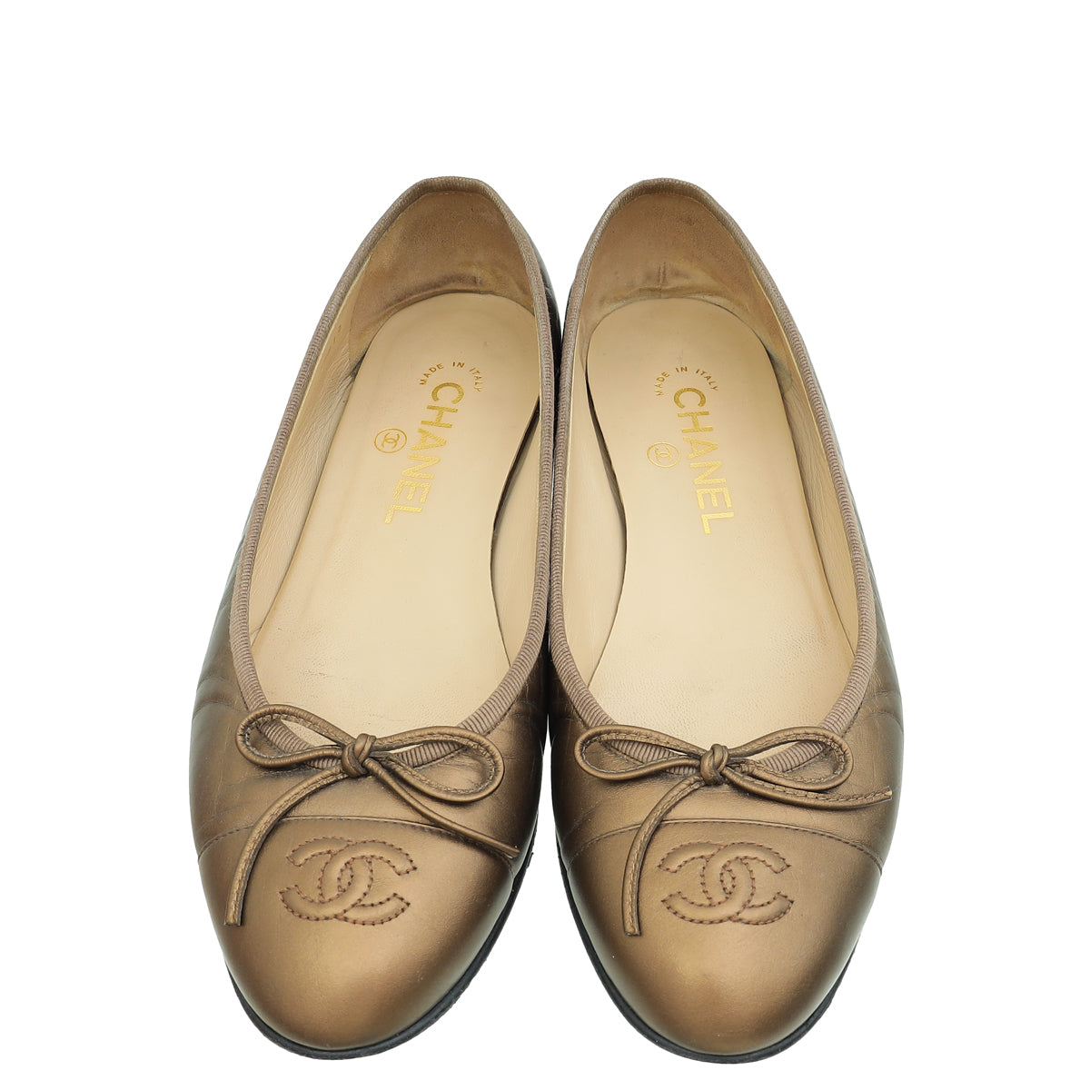 Chanel Metallic Bronze Cap Toe Ballerina Flats 38.5