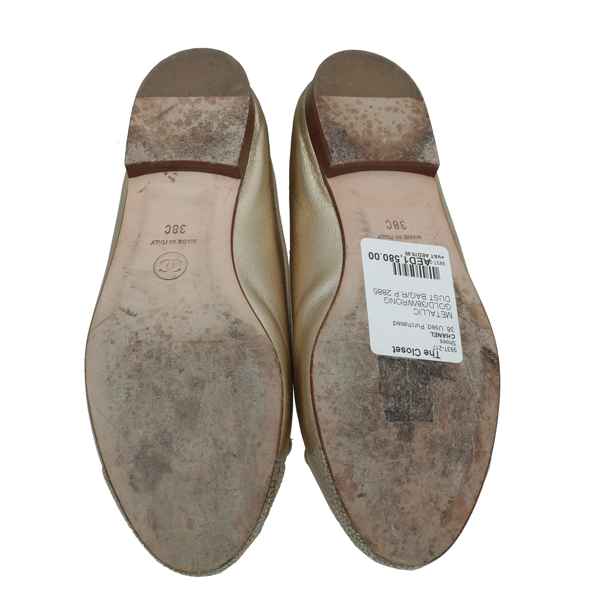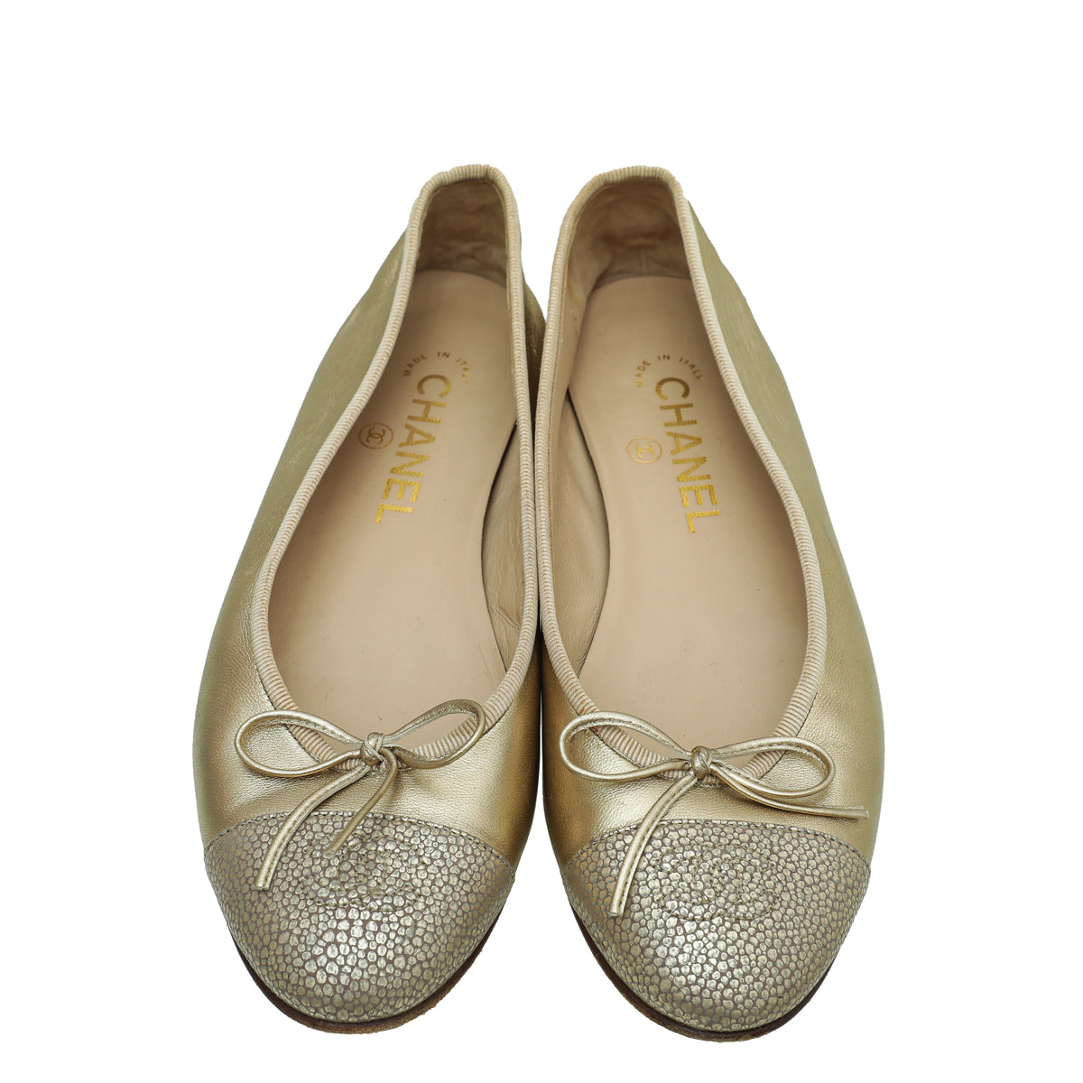 Chanel Metallic Gold CC Cap Toe Ballet Flats 38