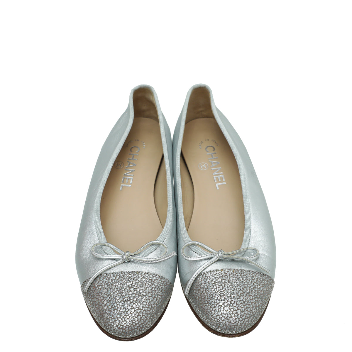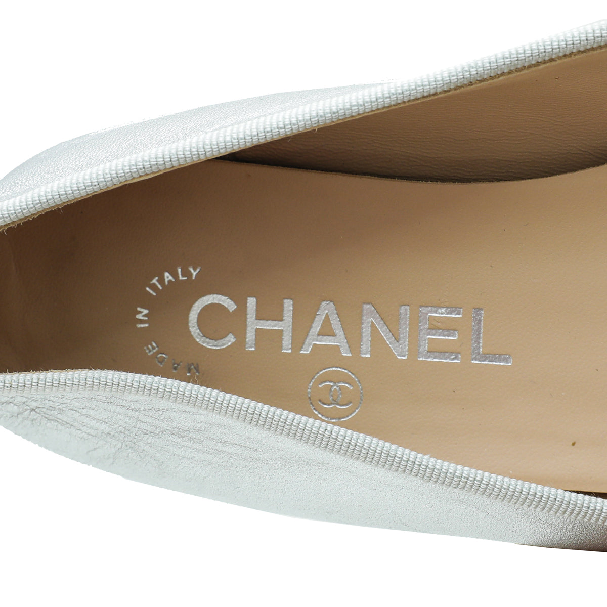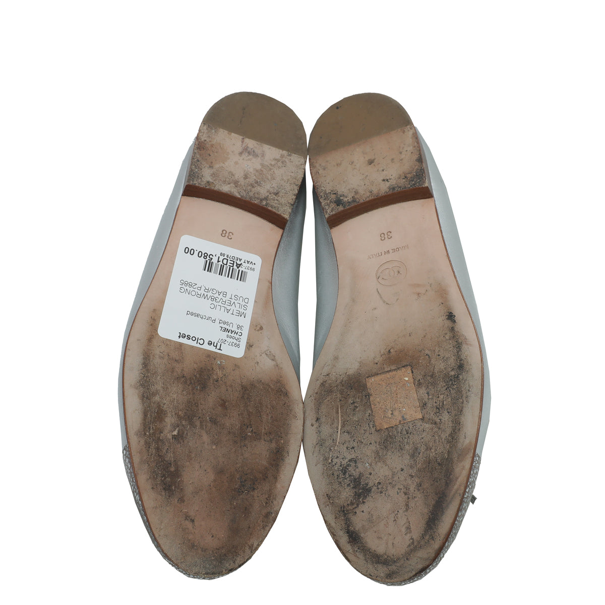 Chanel Metallic Silver CC Cap Toe Ballet Flats 38