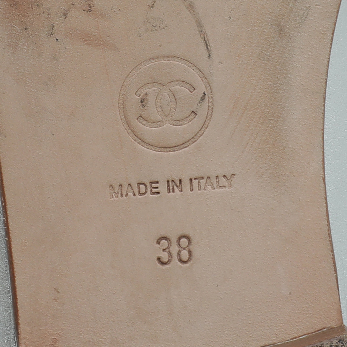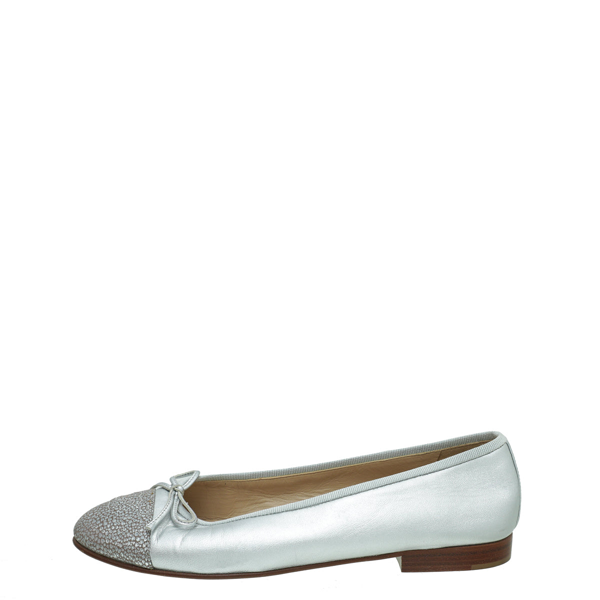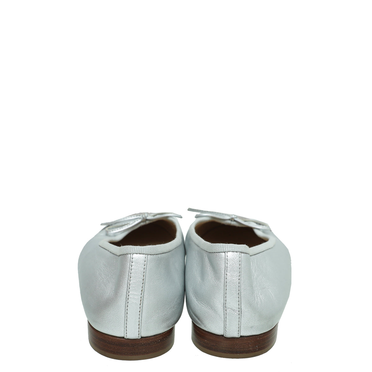 Chanel Metallic Silver CC Cap Toe Ballet Flats 38