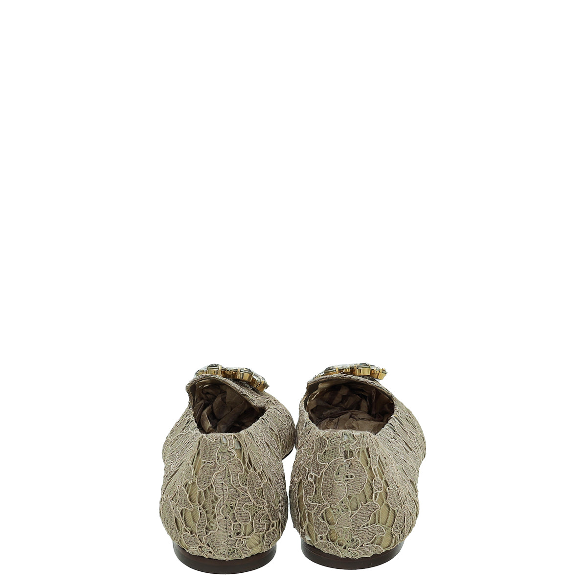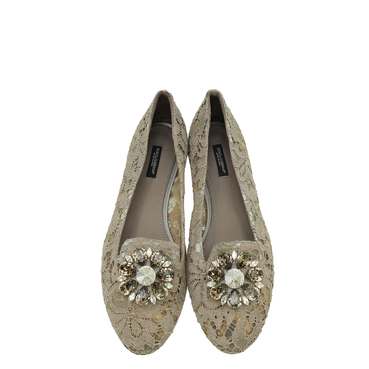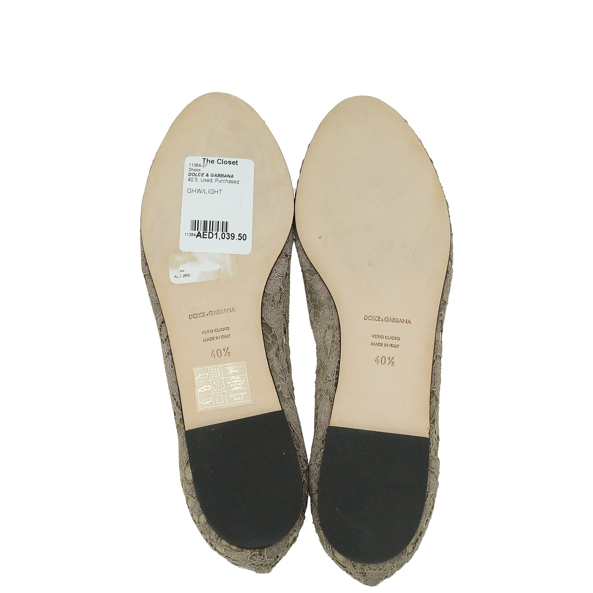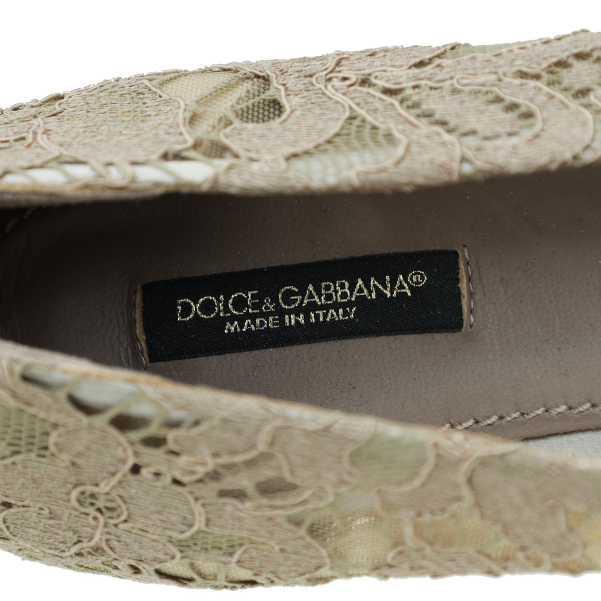 Dolce & Gabbana Light Brown Lace Bellucci Flats 40.5