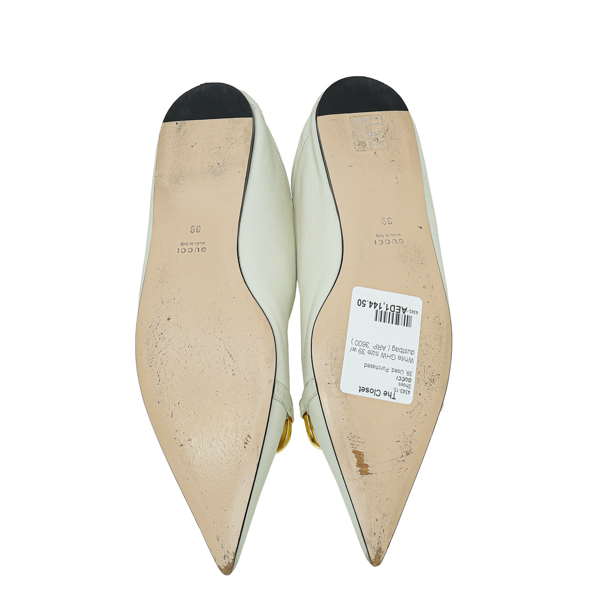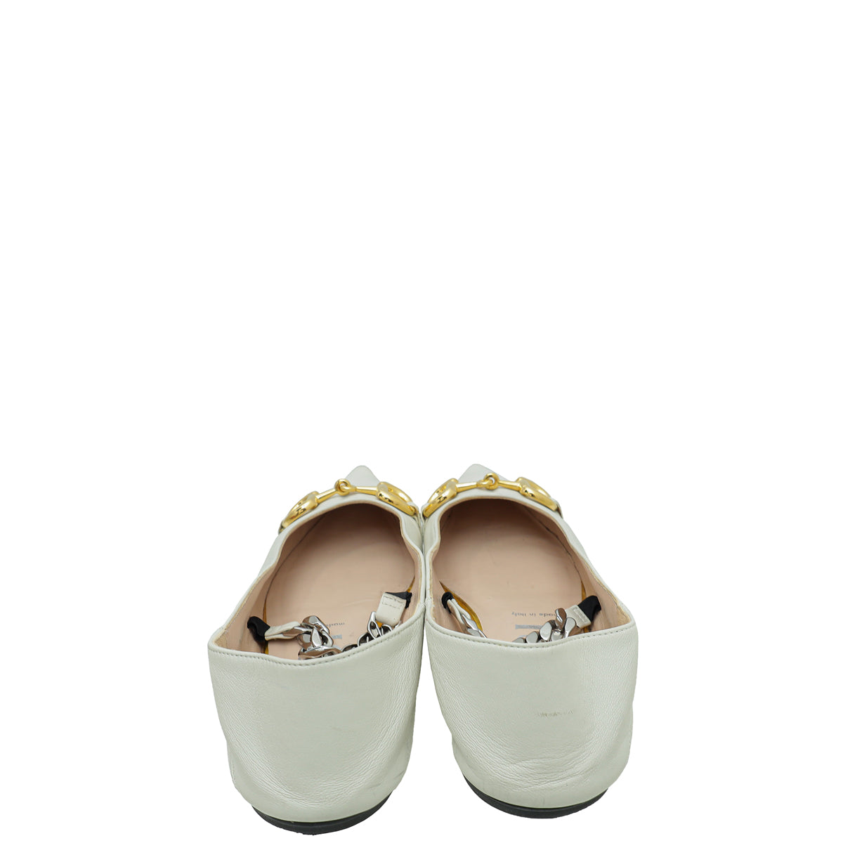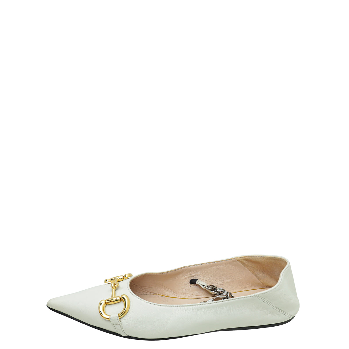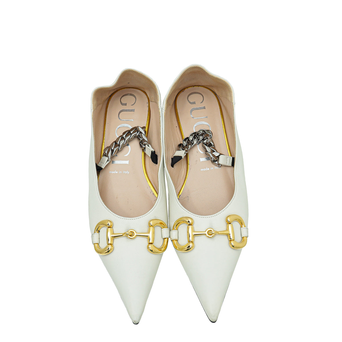 Gucci White Horsebit and Chain Accent Leather Flats 39