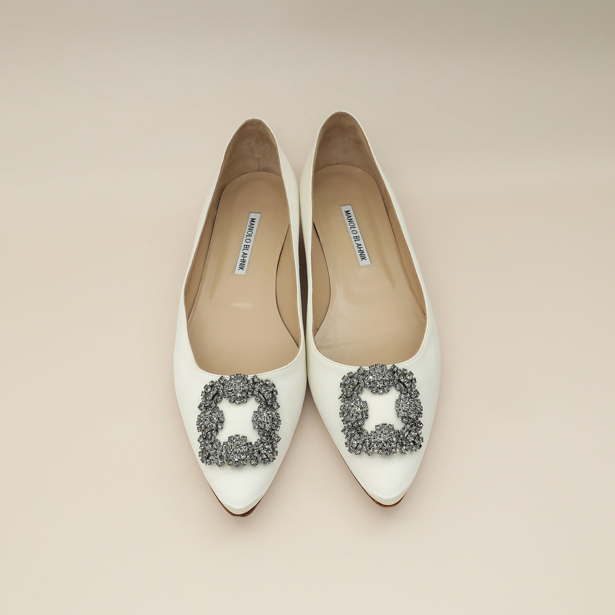 Manolo Blahnik Cream Hangisi Flats 41.5