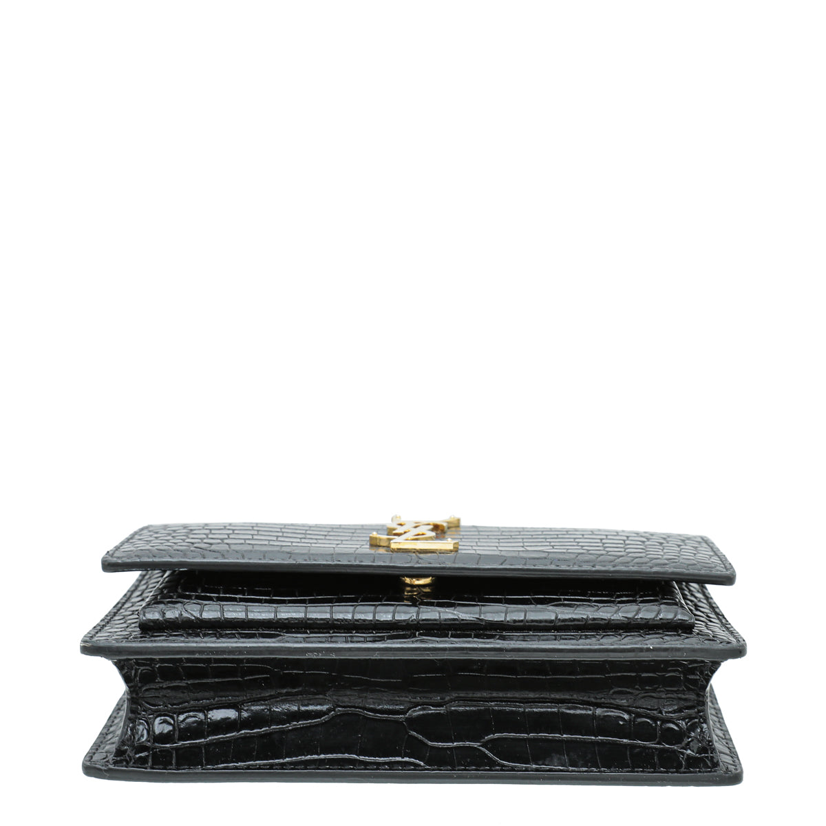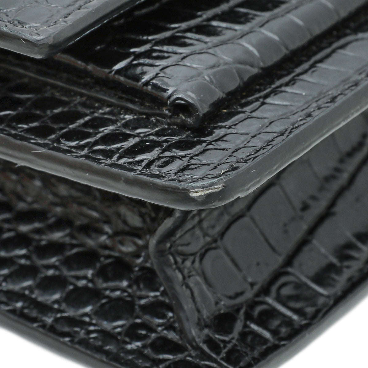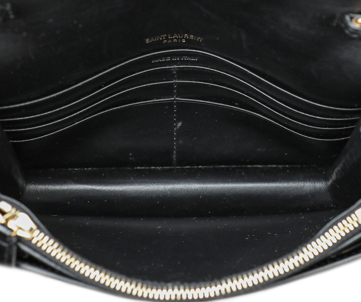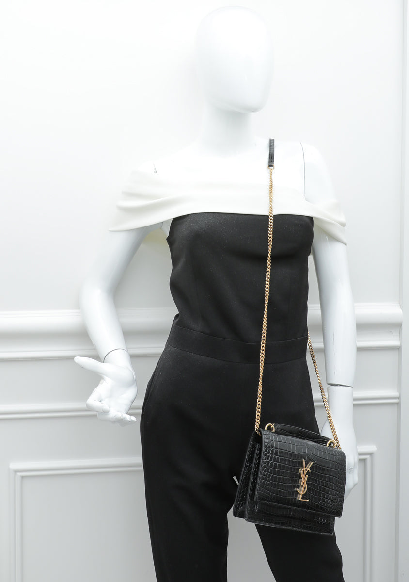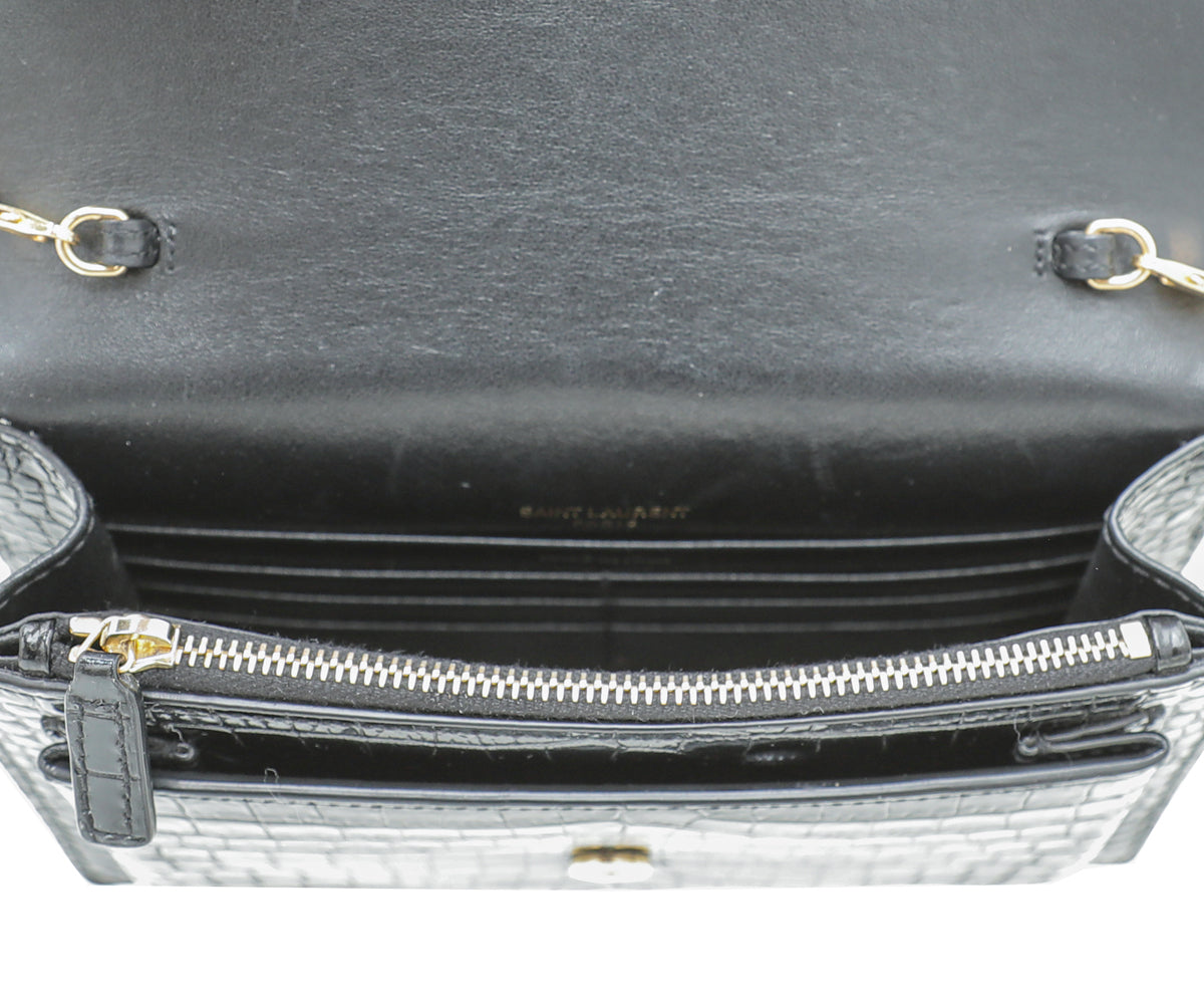 YSL Black Croco Embossed Sunset Chain Wallet
