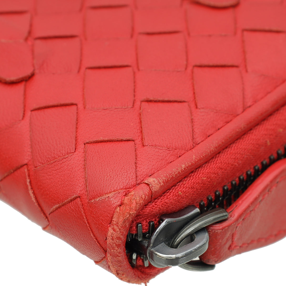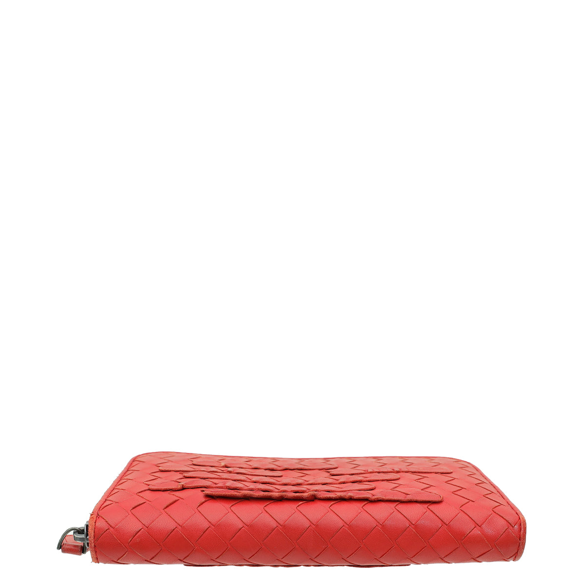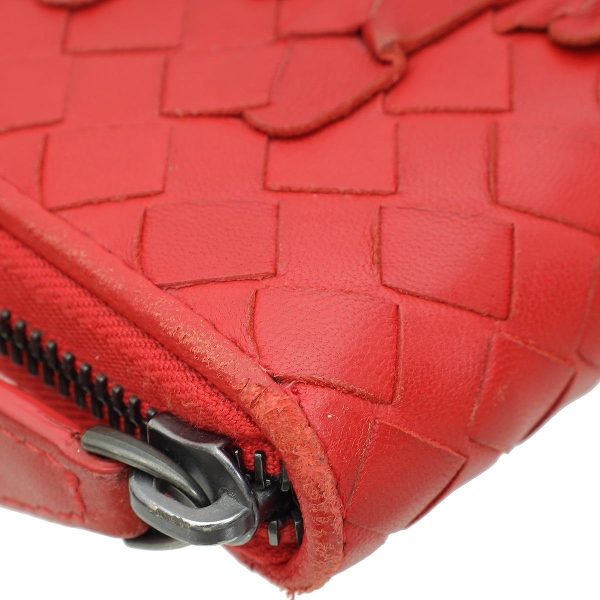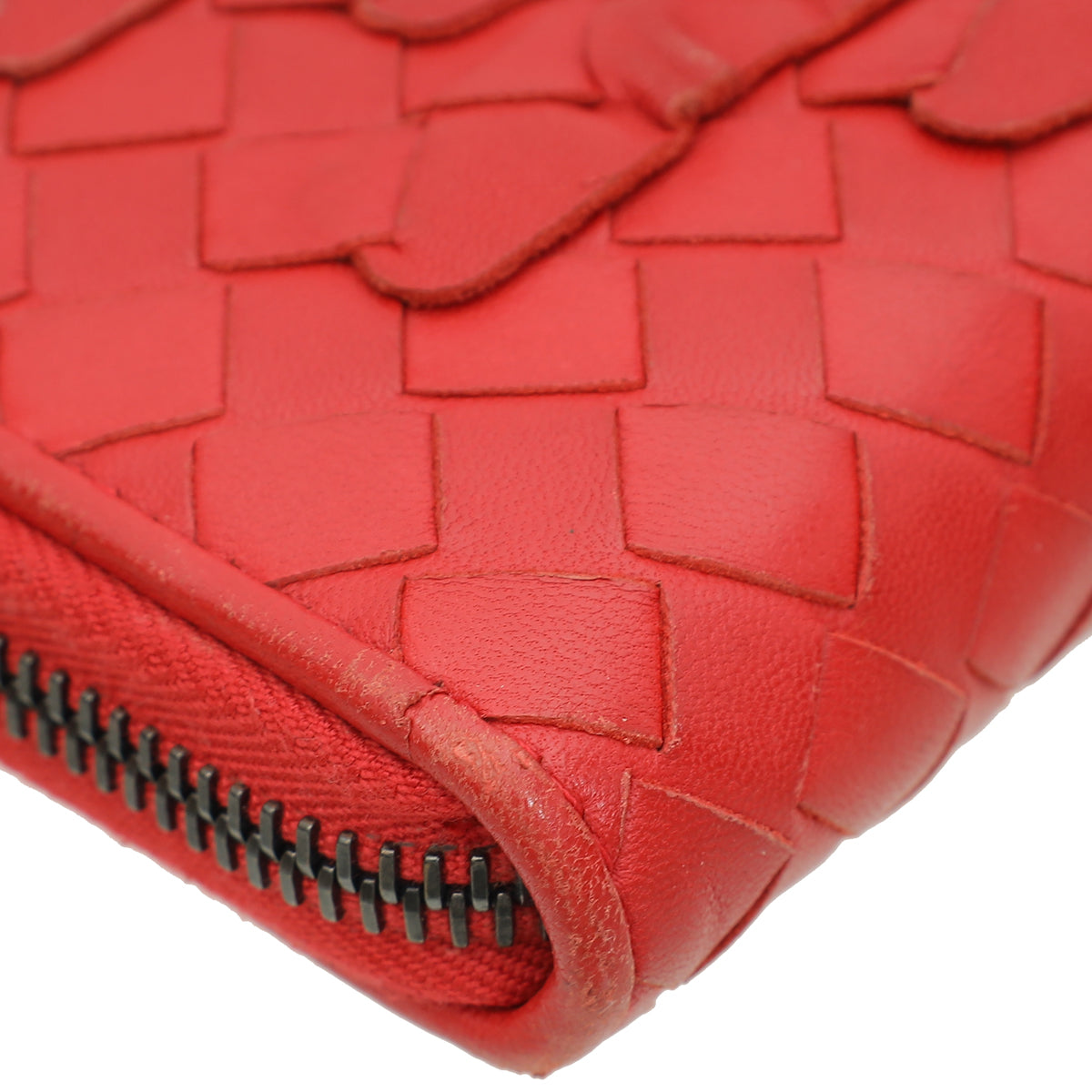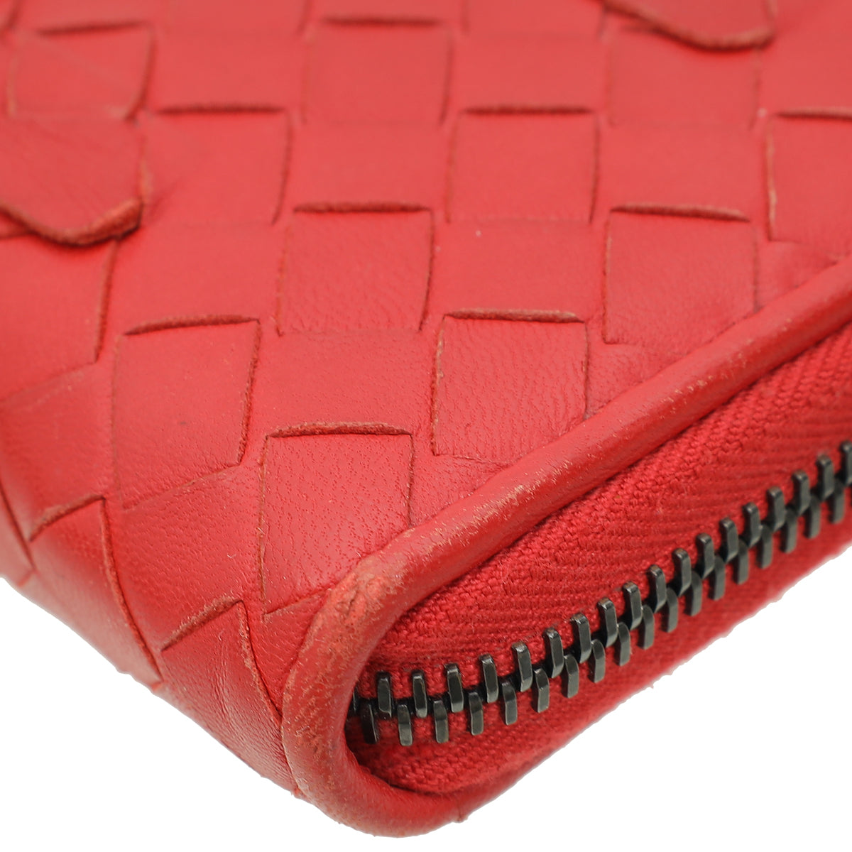 Bottega Veneta Red Intrecciato Zip Around Wallet