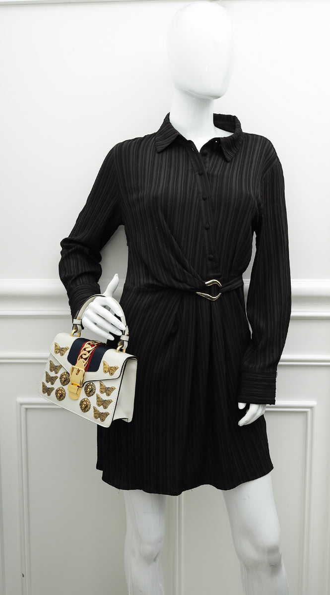 Gucci White Animal Studs Mini Sylvie Top Handle Bag