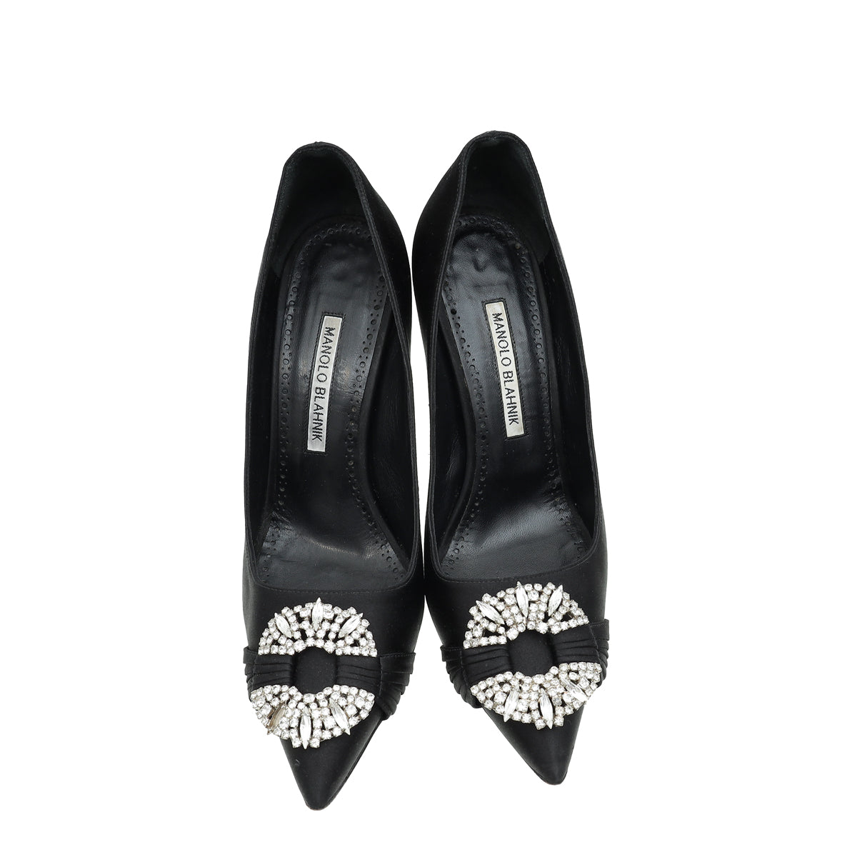 Manolo Blahnik Black Maida 90 Embellished Pump 37.5