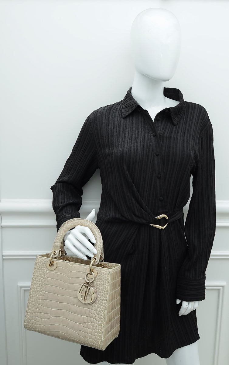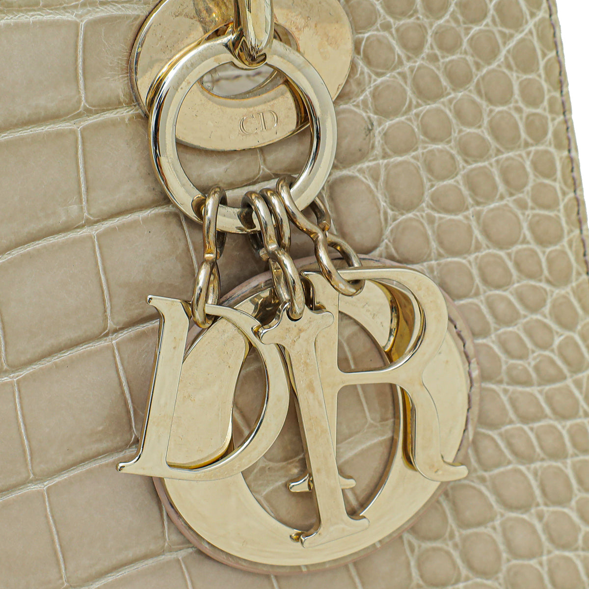 Christian Dior Beige Alligator Lady Dior Medium Bag