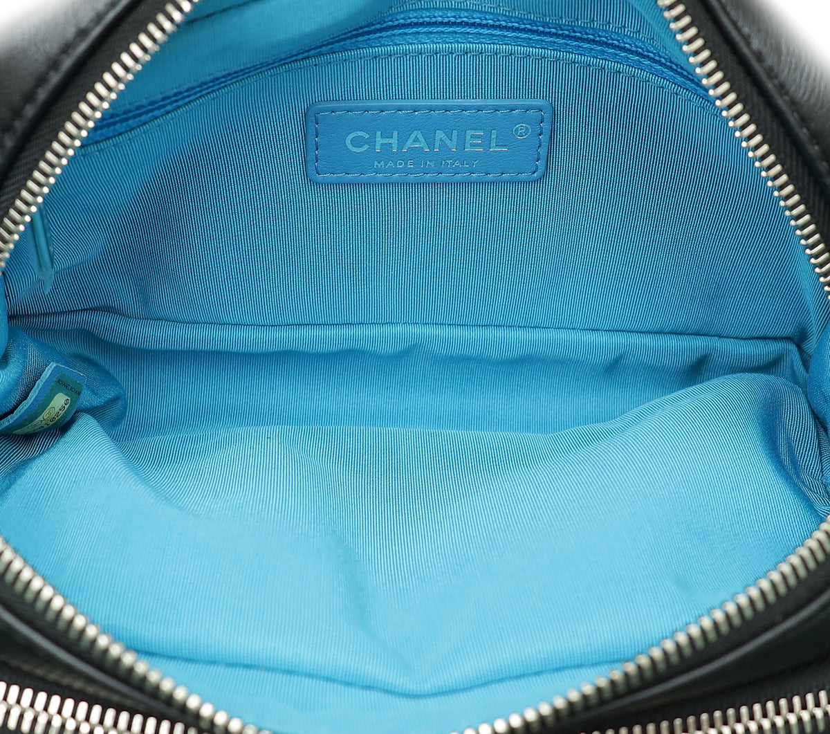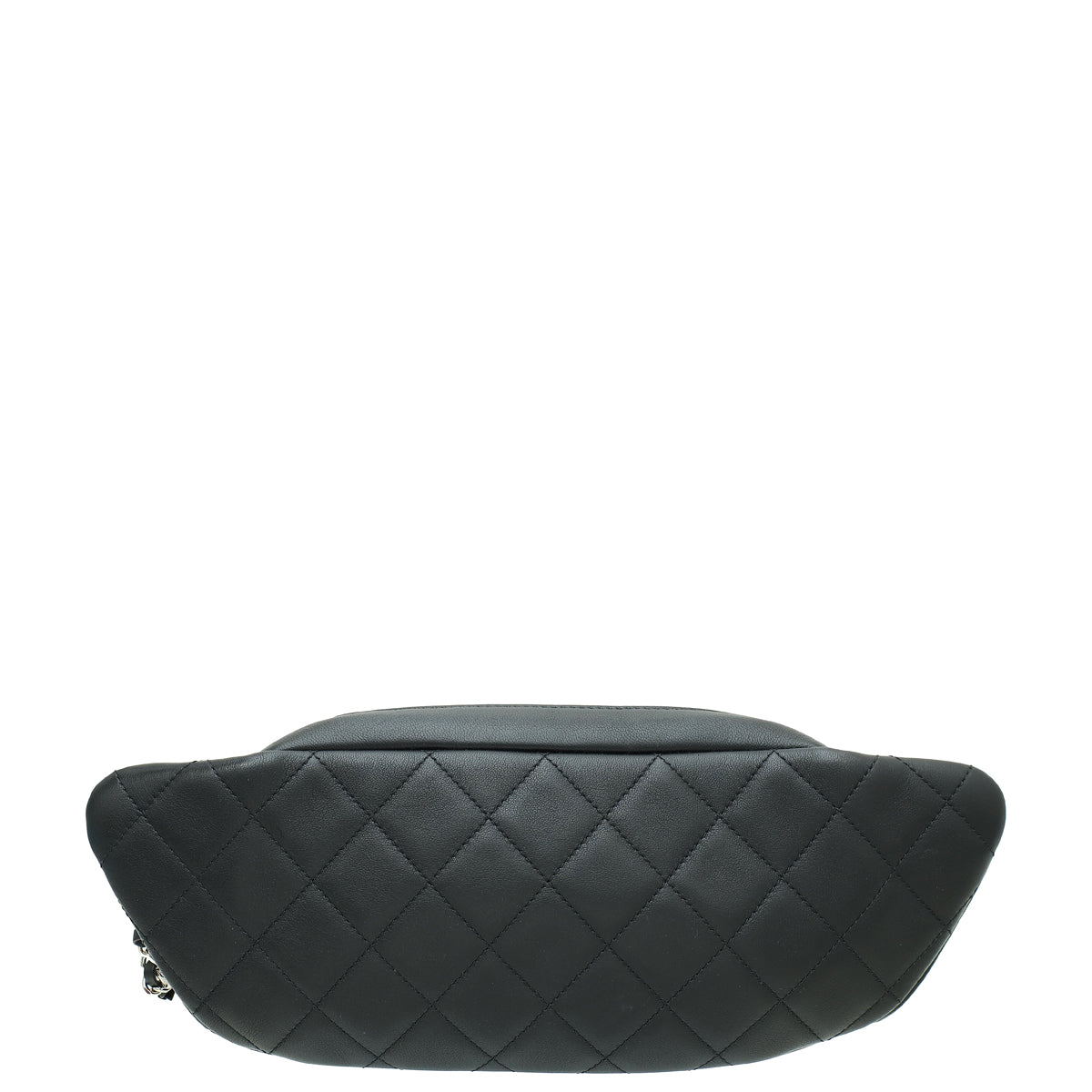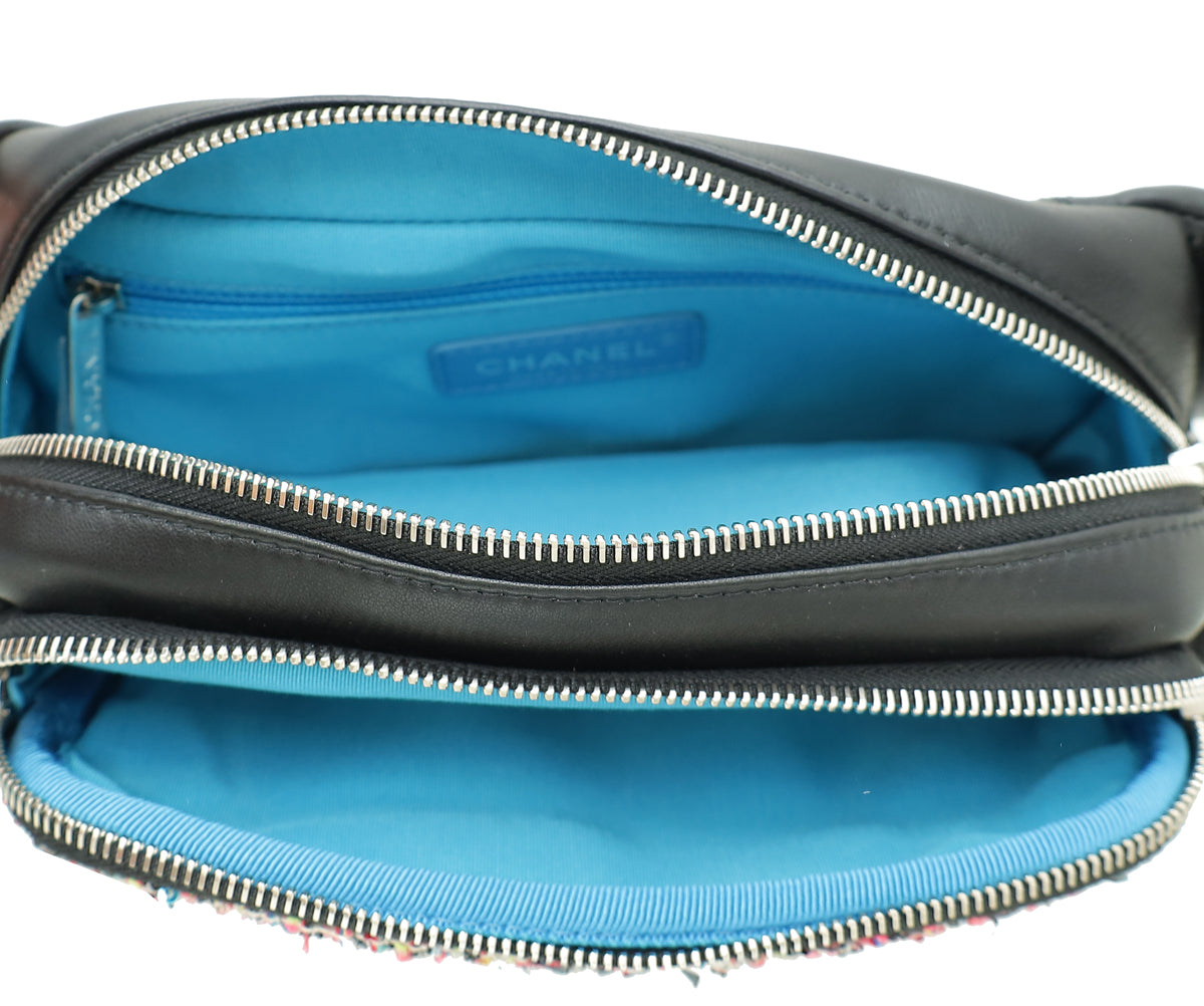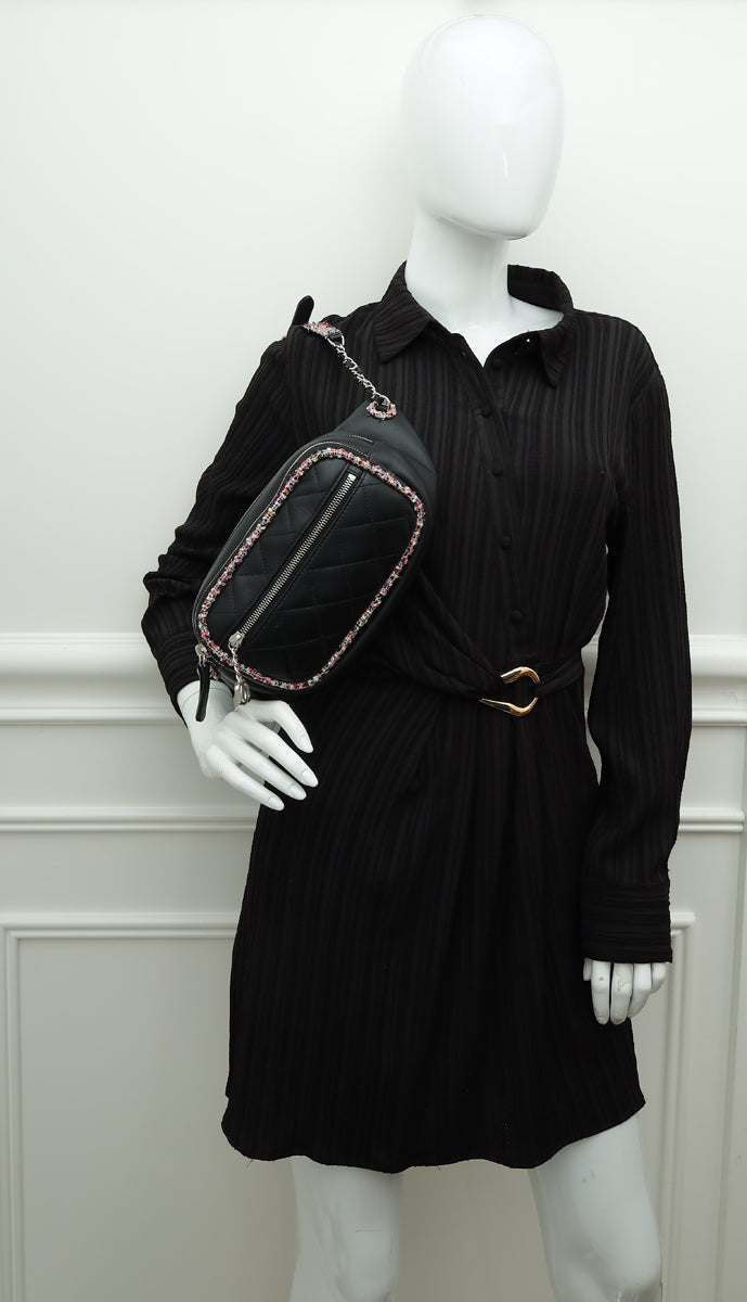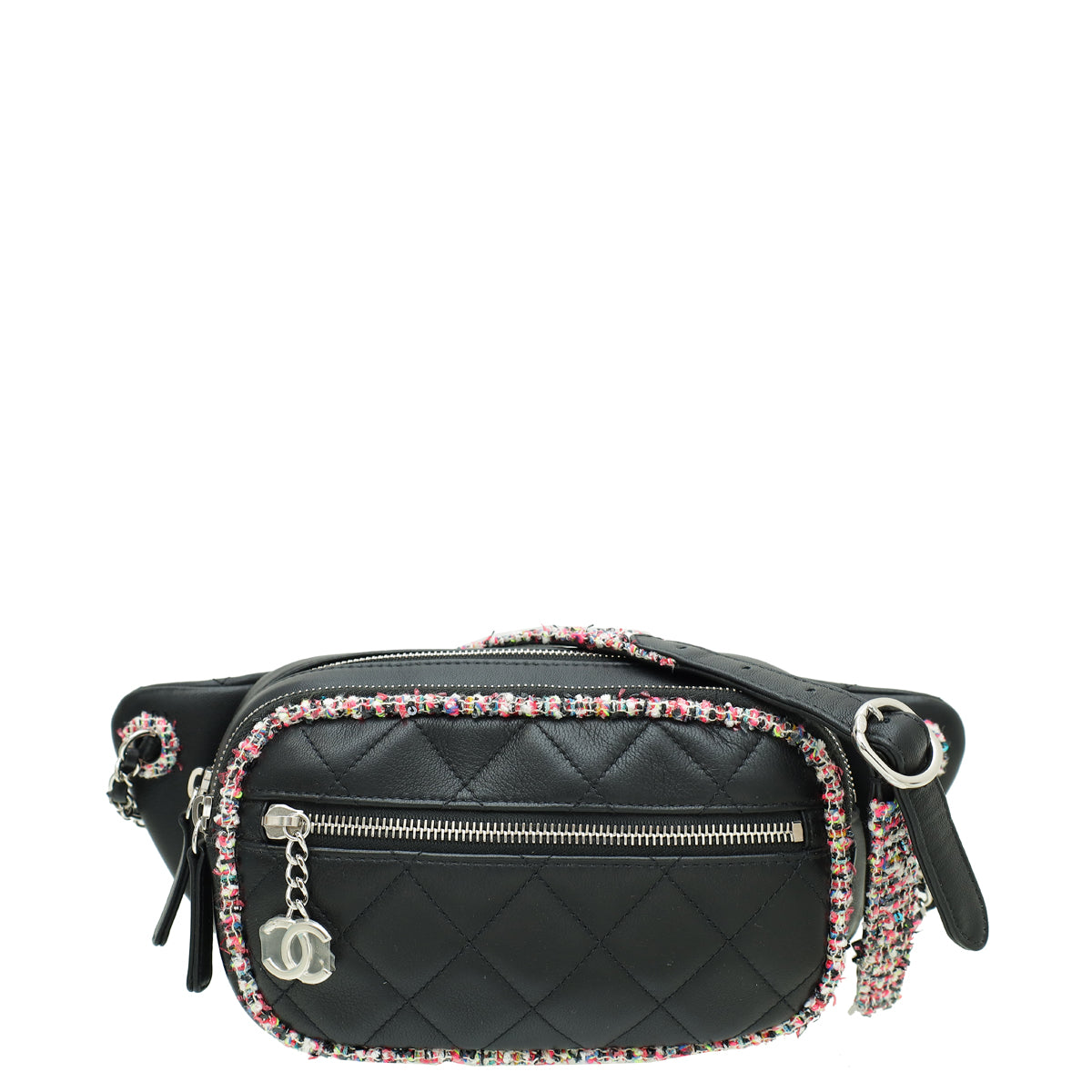 Chanel Black Tweed Quilted Elegant Trim Belt Bag