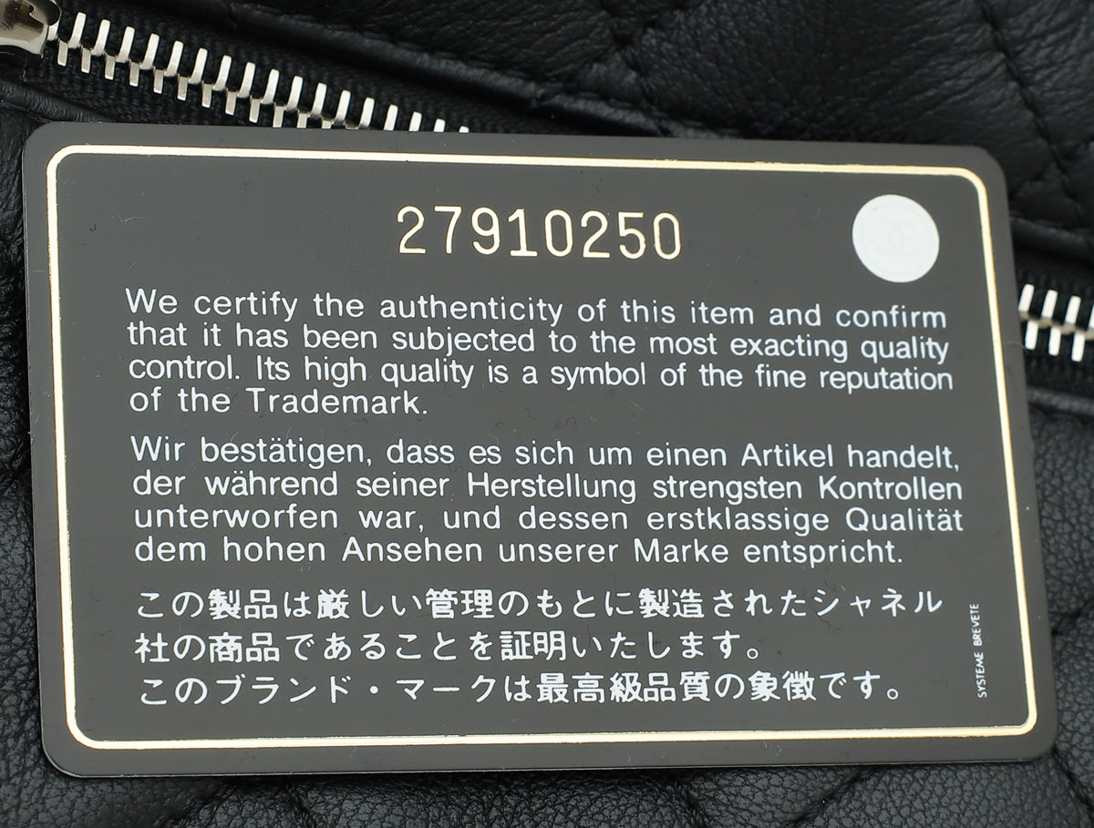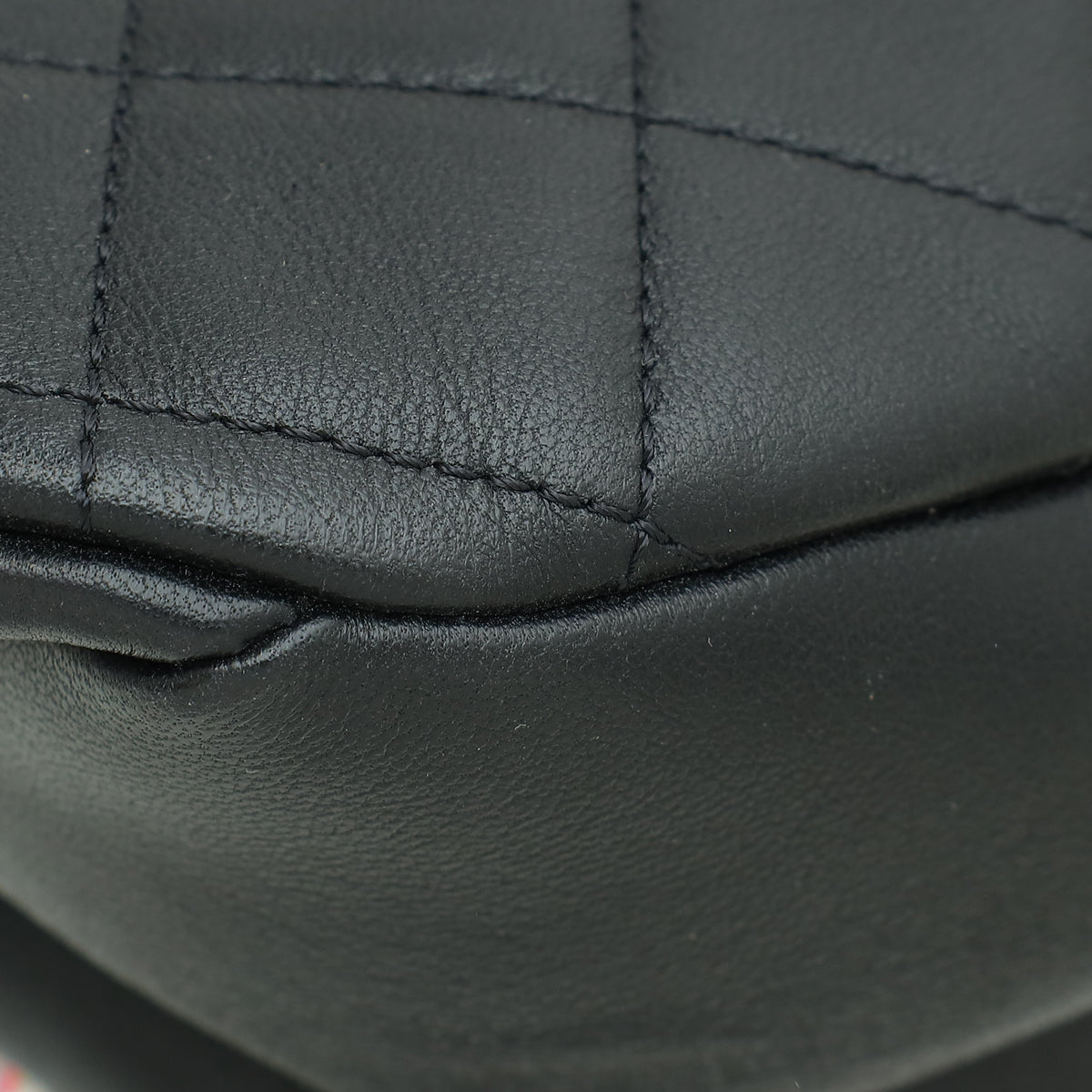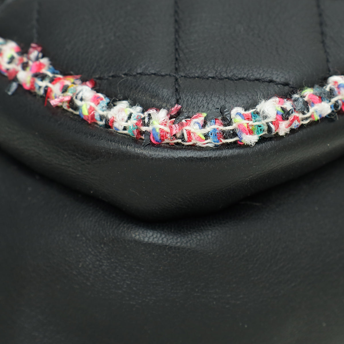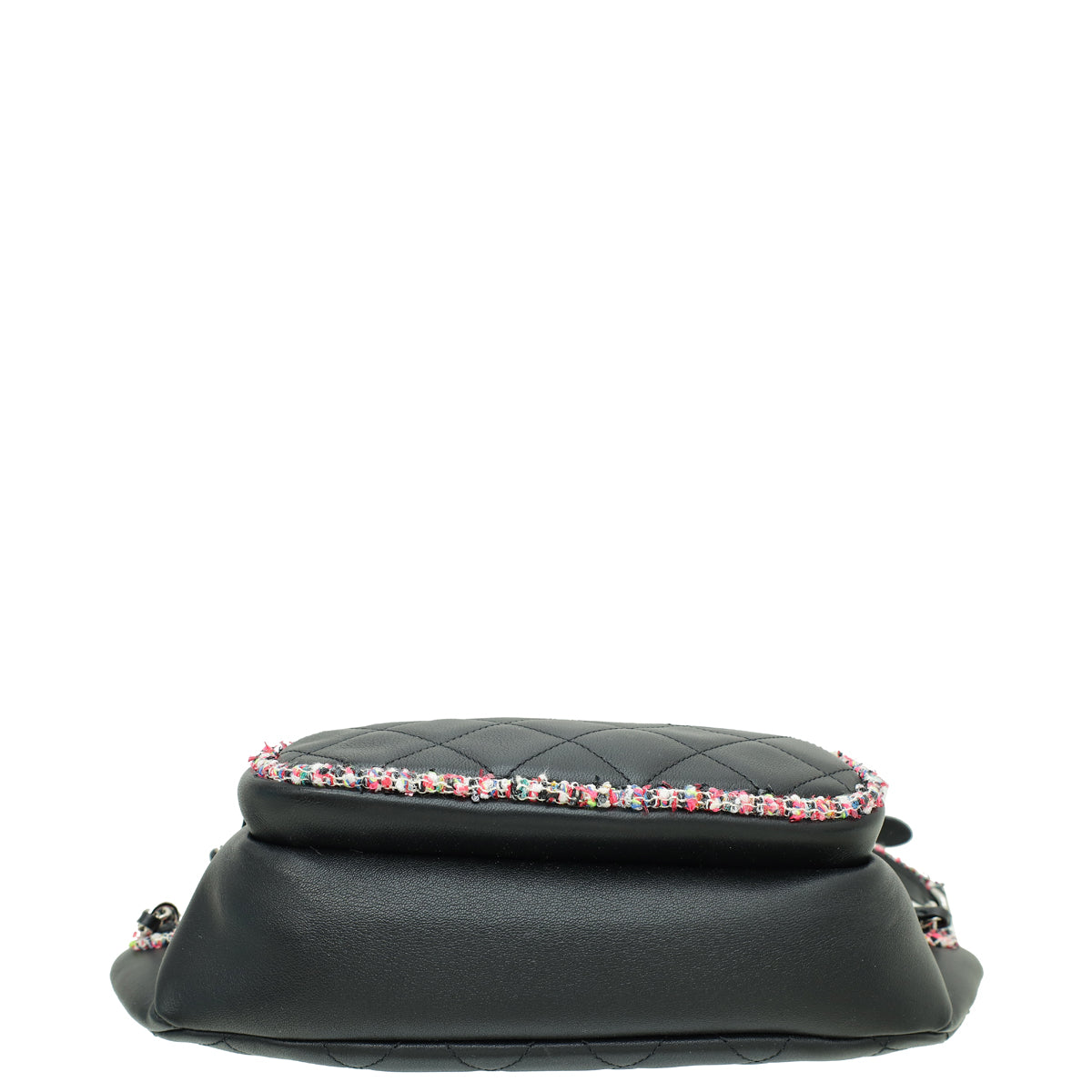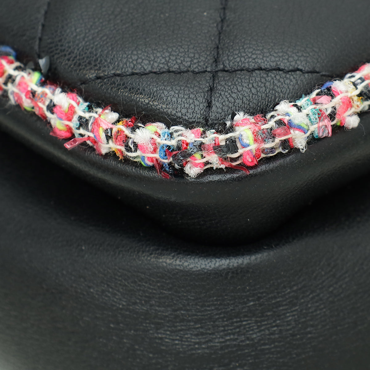 - Material: Black Quilted Lambskin Leather with Pink Multicolor Tweed Trim and Sequins