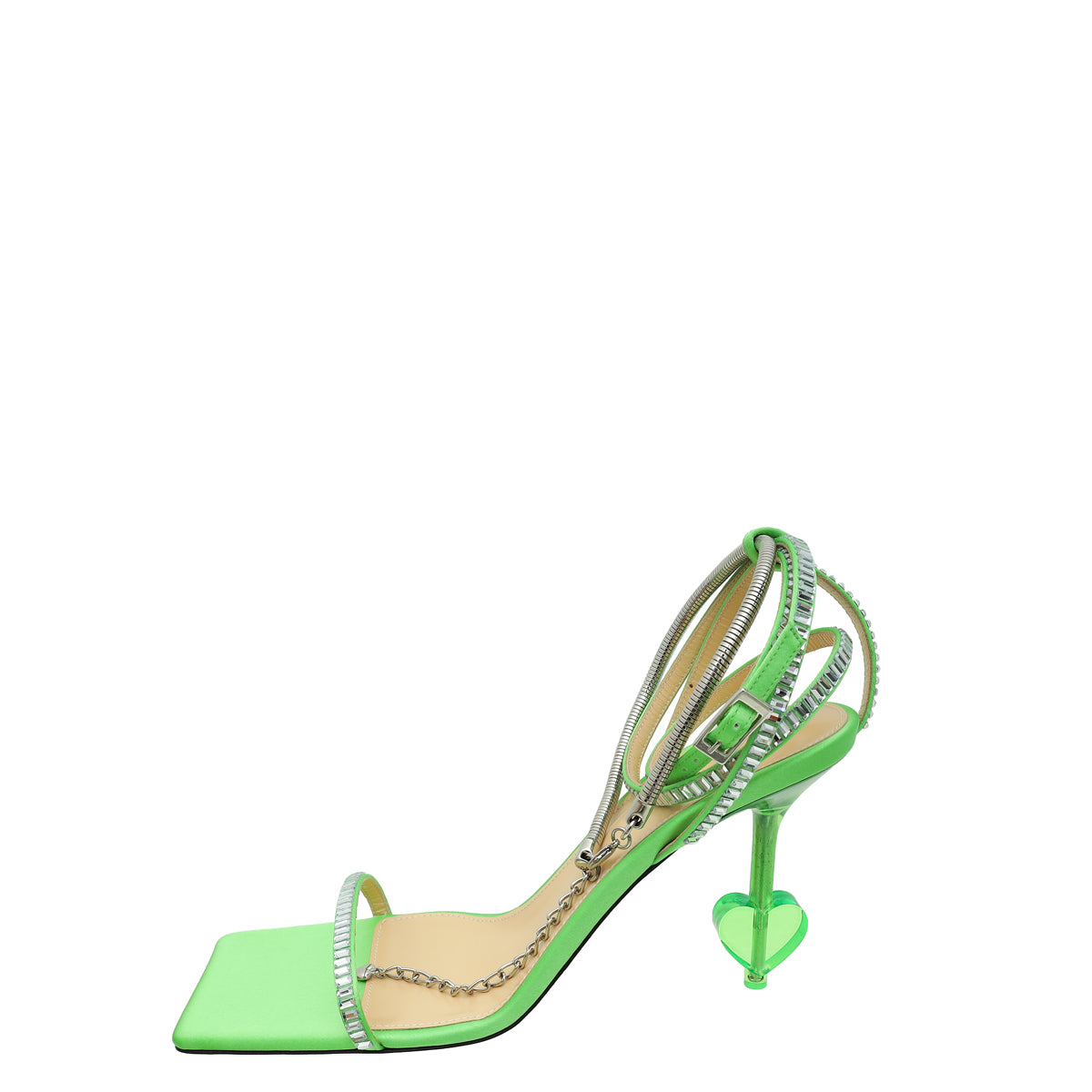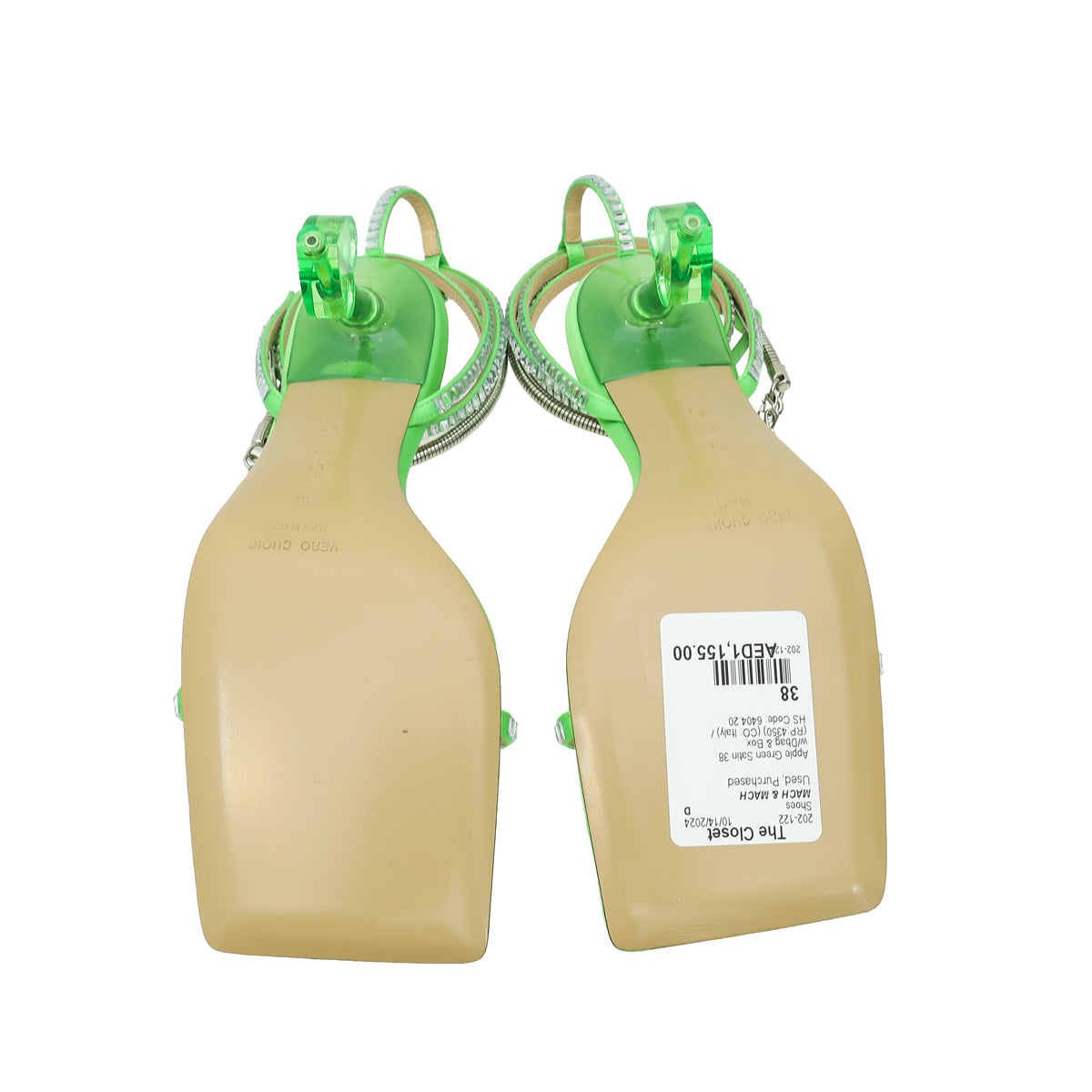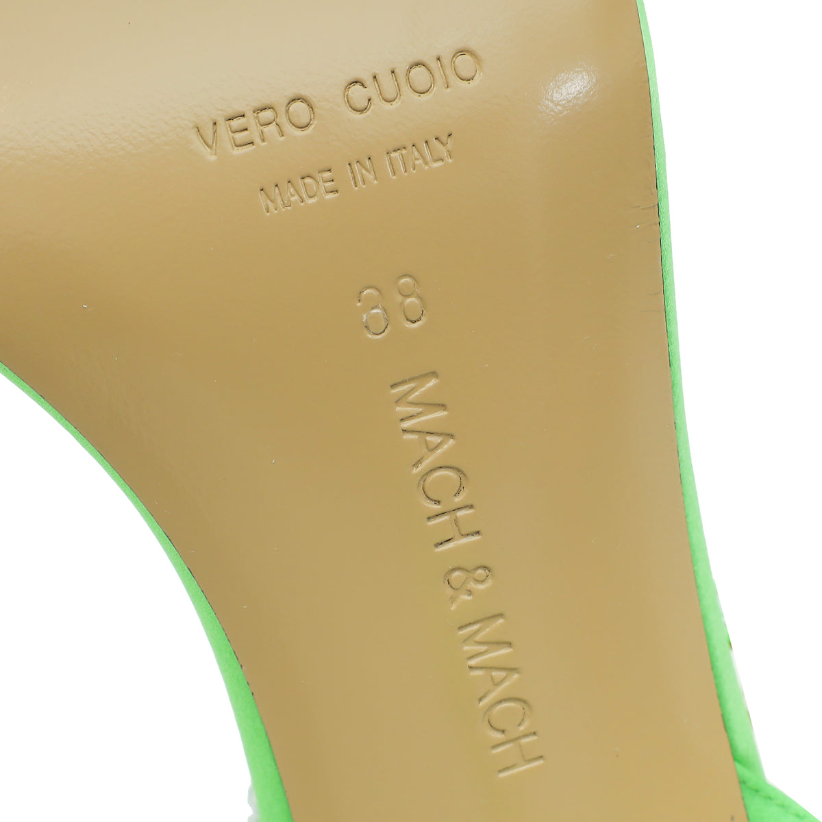 Mach & Mach Apple Green Satin Heart Heeled Crystal Ankle Strap 38