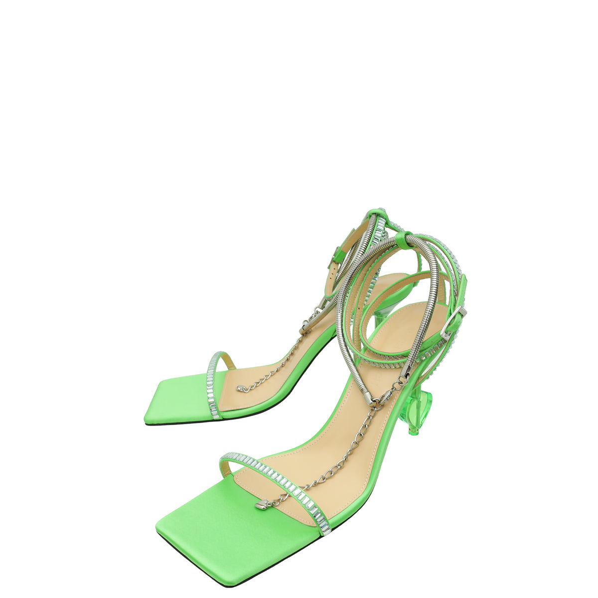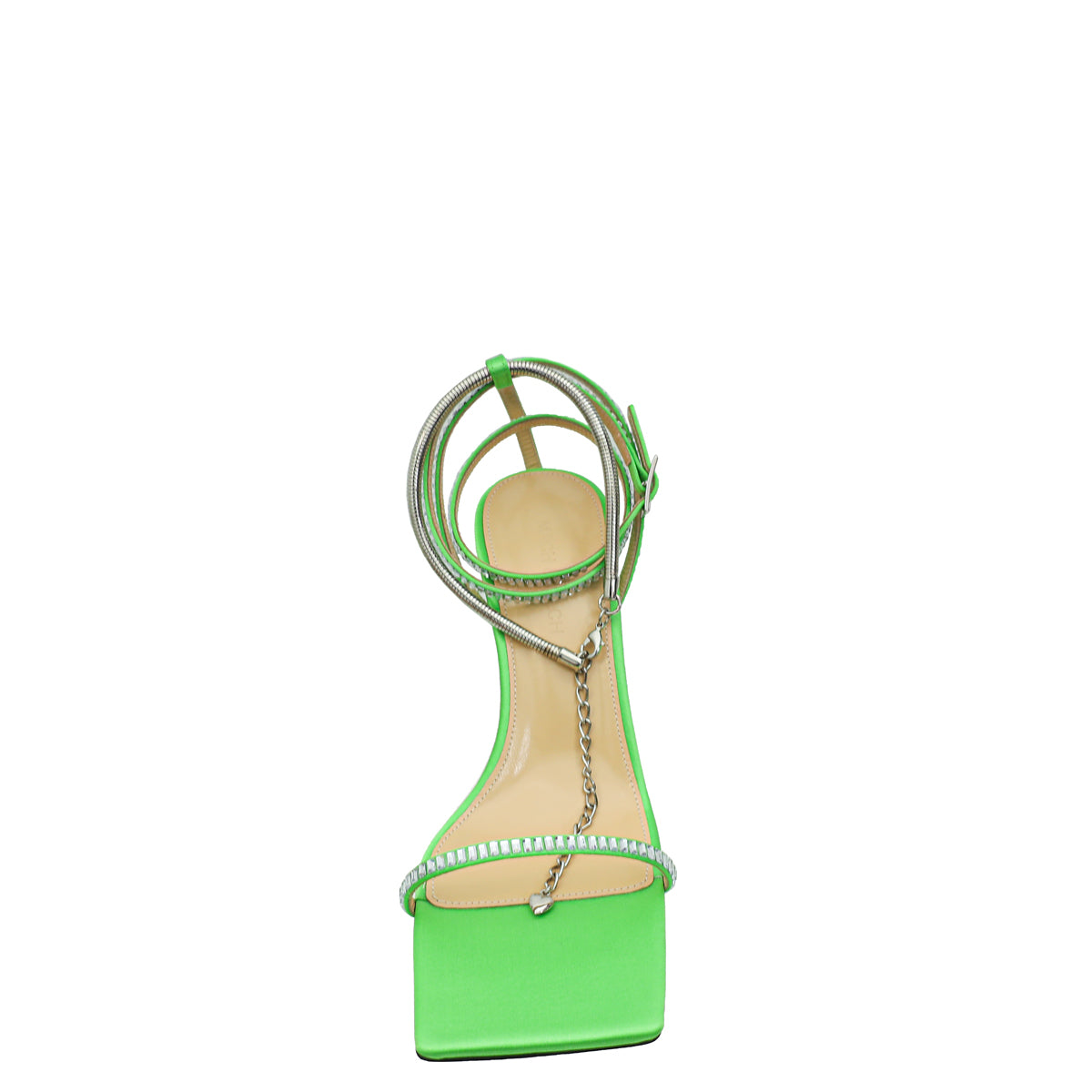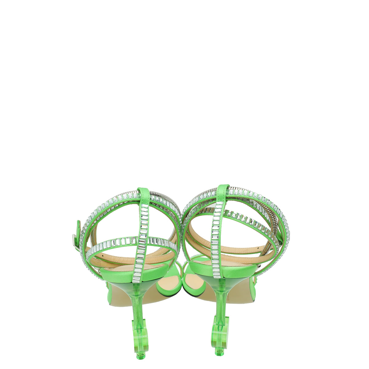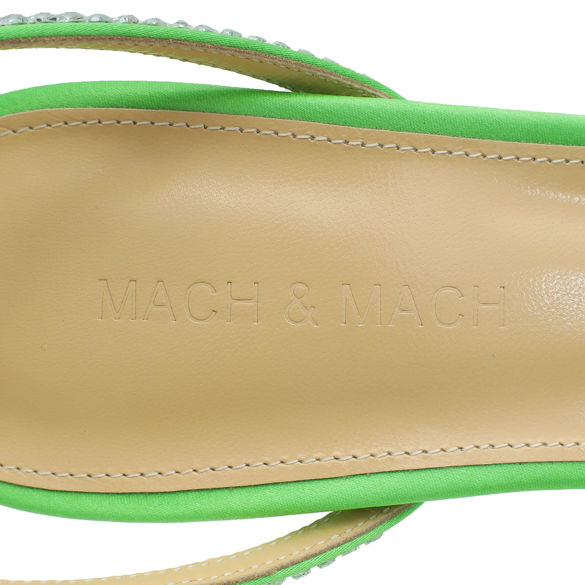 Mach & Mach Apple Green Satin Heart Heeled Crystal Ankle Strap 38