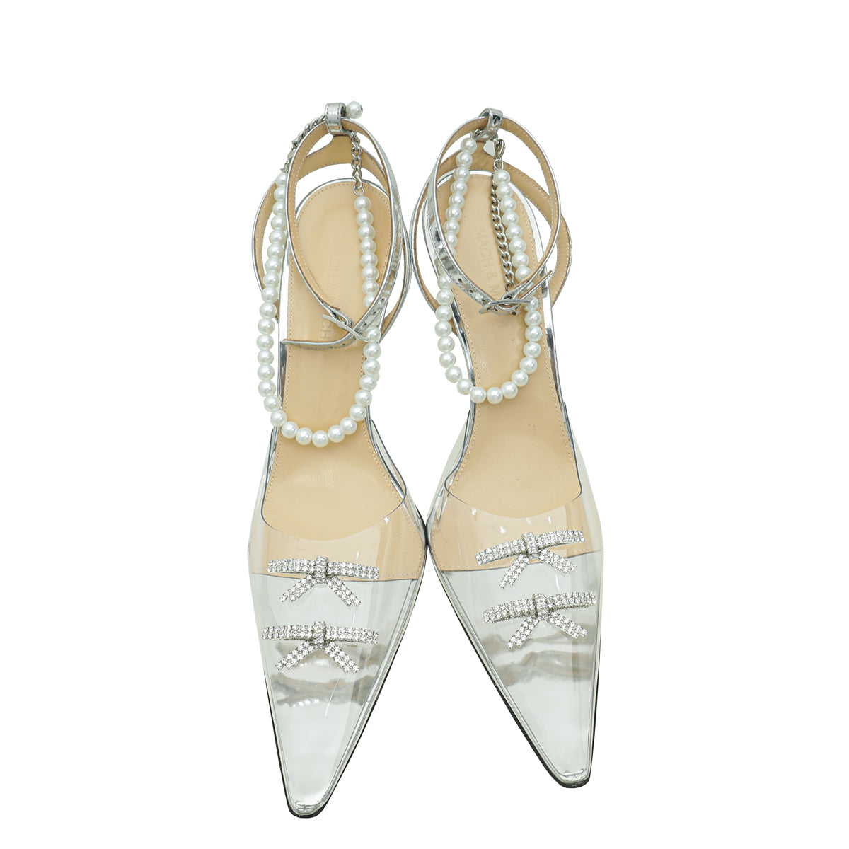 Mach & Mach Silver Crystal Bow Embellished Ankle Strap Pumps 40